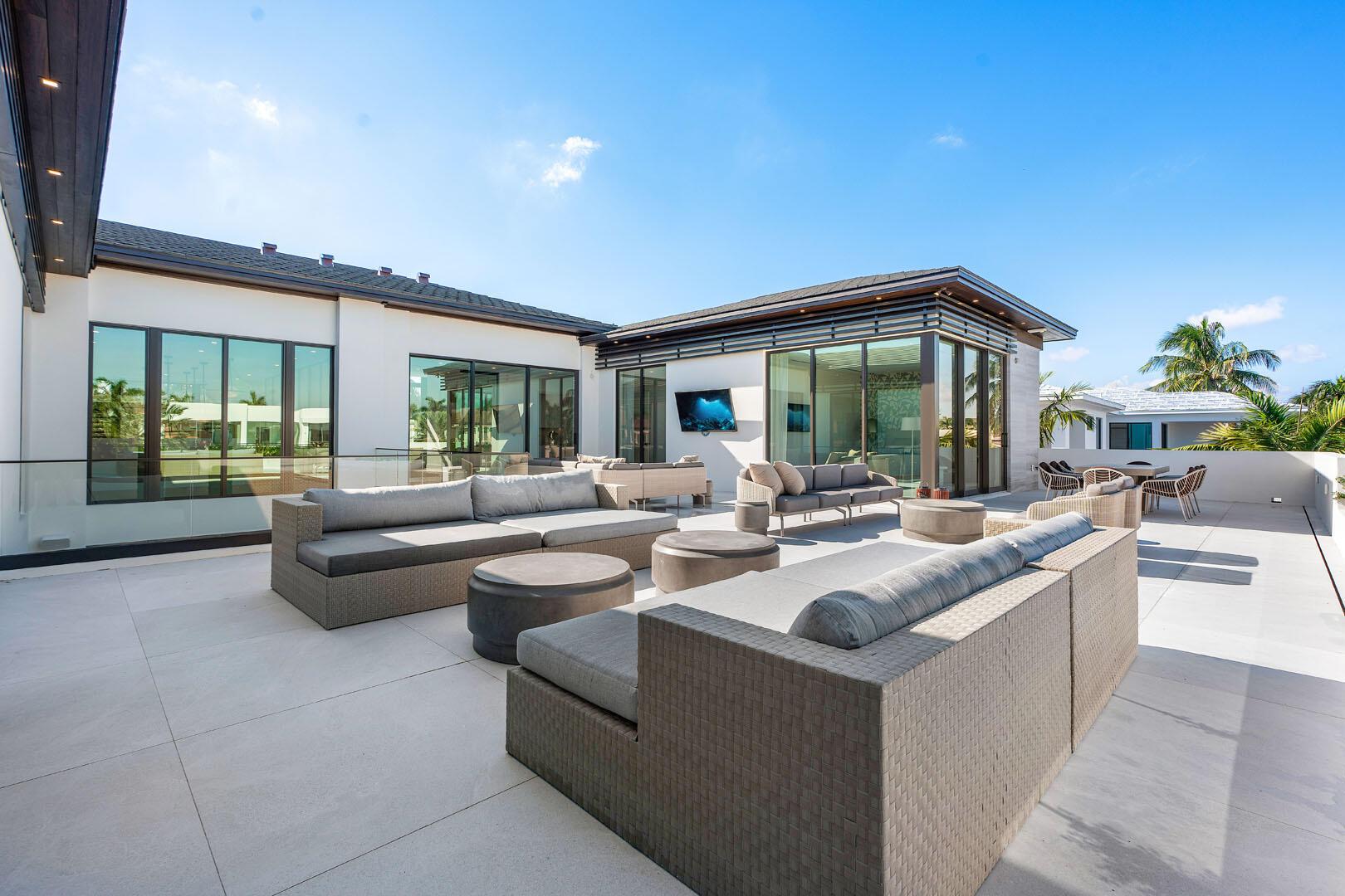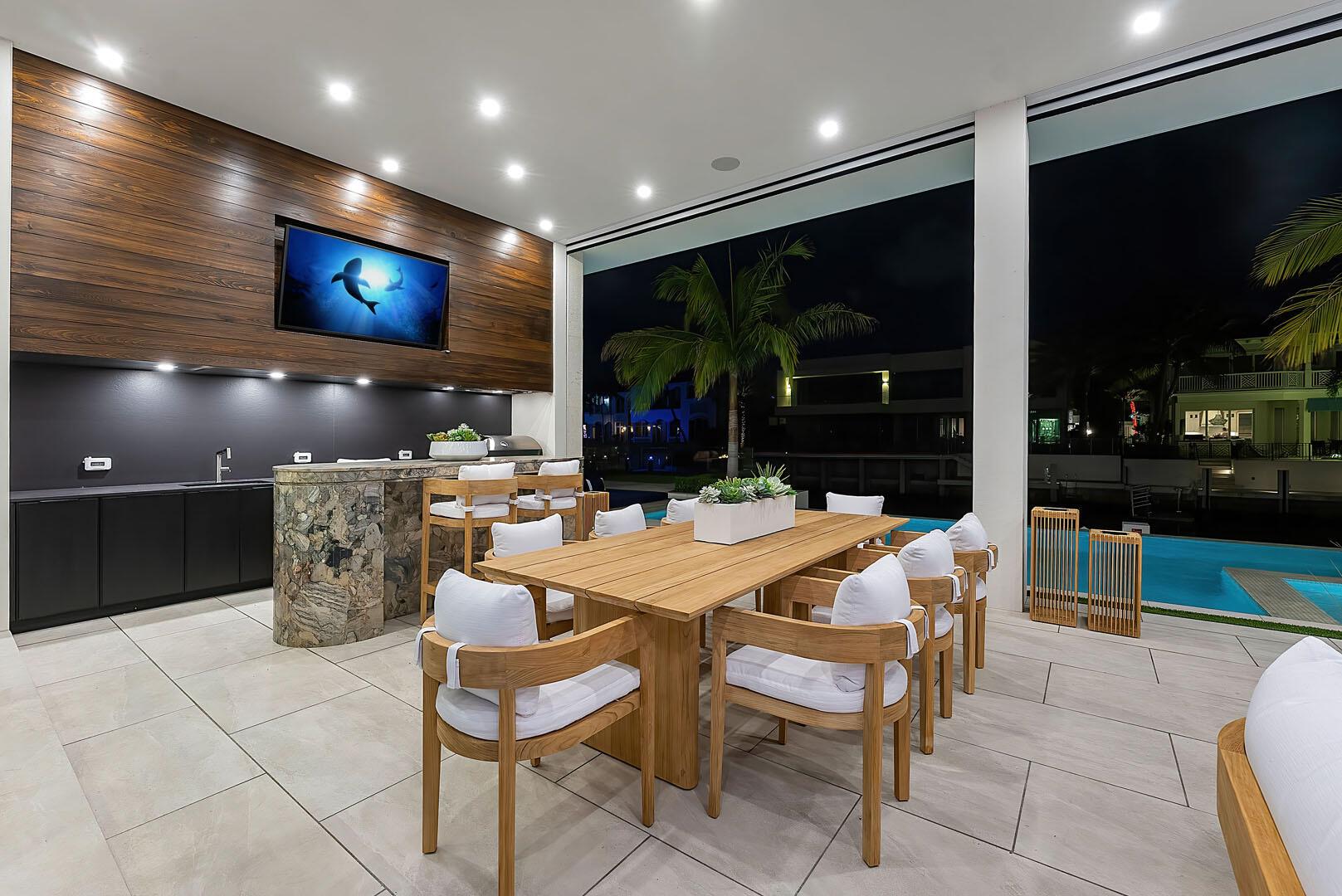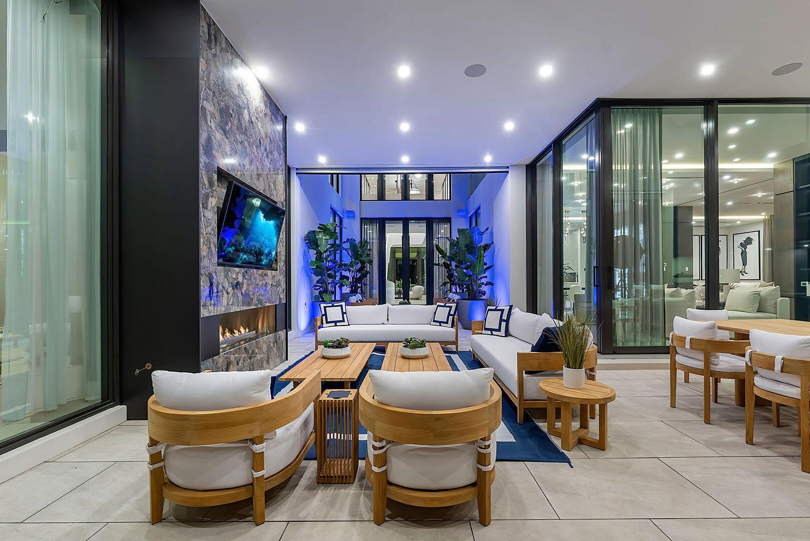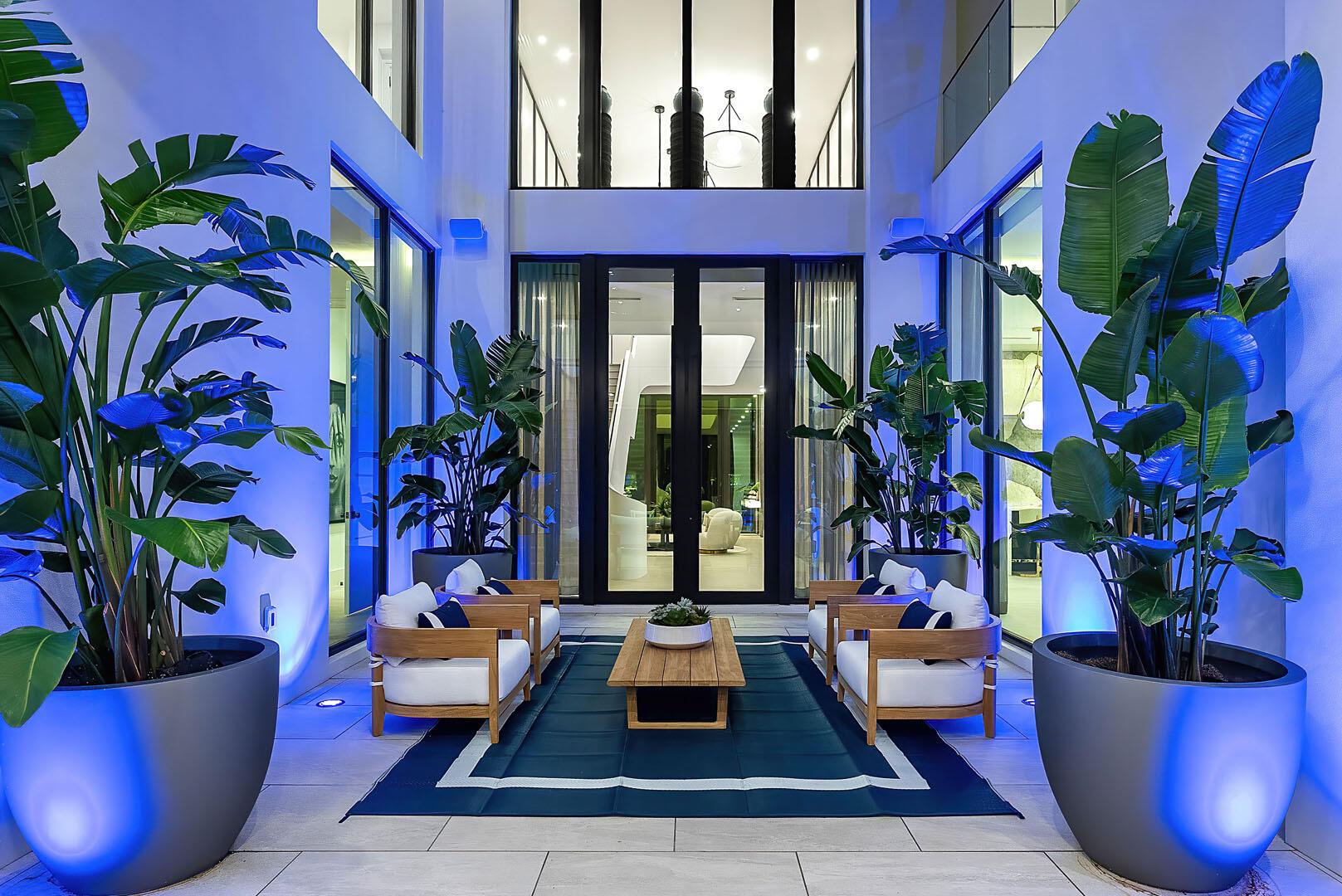 Nestled along 101 feet of the prestigious Butterfly Palm Waterway, this newly completed ultra-luxury contemporary estate developed by Matthew Epstein of Primark Partners sets a new standard that epitomizes waterfront elegance. Architecture by Affiniti Architects with interiors by Michael Gray Interiors, this seven-bedroom residence seamlessly blends innovative design with the finest materials and meticulous craftsmanship, offering a refined lifestyle in one of Boca Raton’s most exclusive enclaves.The first-floor primary suite is a serene retreat with indulgent His & Her spa-inspired bathrooms wrapped in Italian travertine and boutique-style closets. The thoughtfully designed interior also includes a chic clubroom with a Quartzite bar, a sophisticated home office, a formal dining