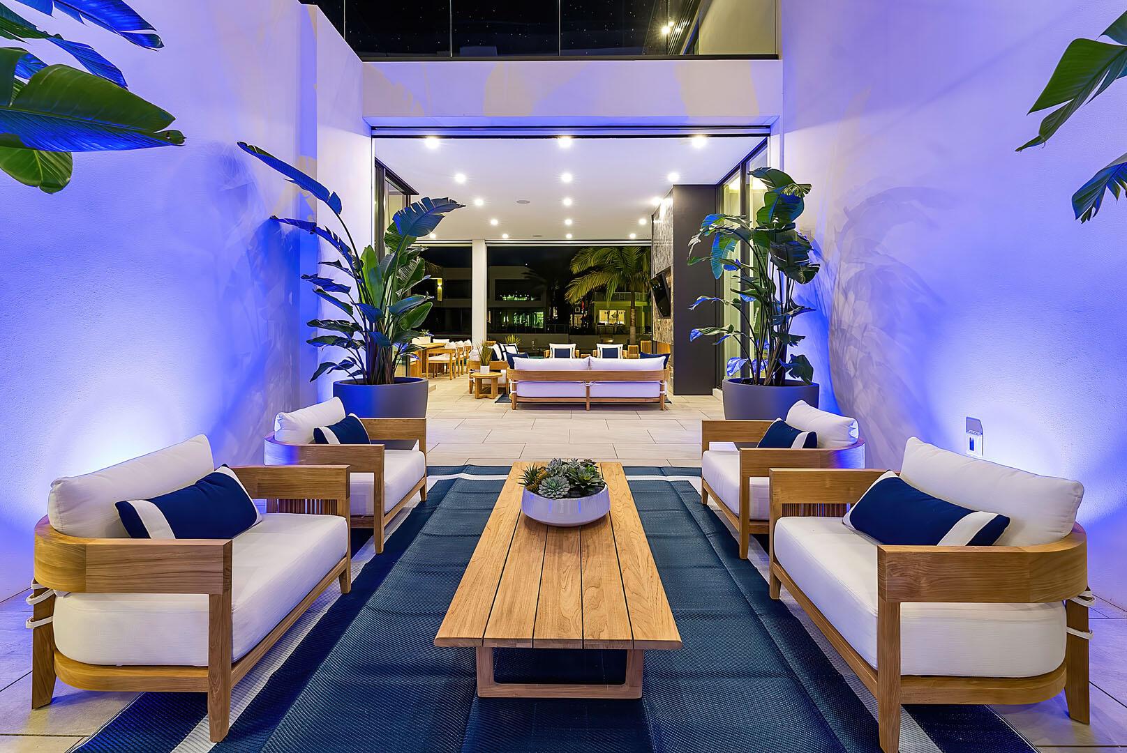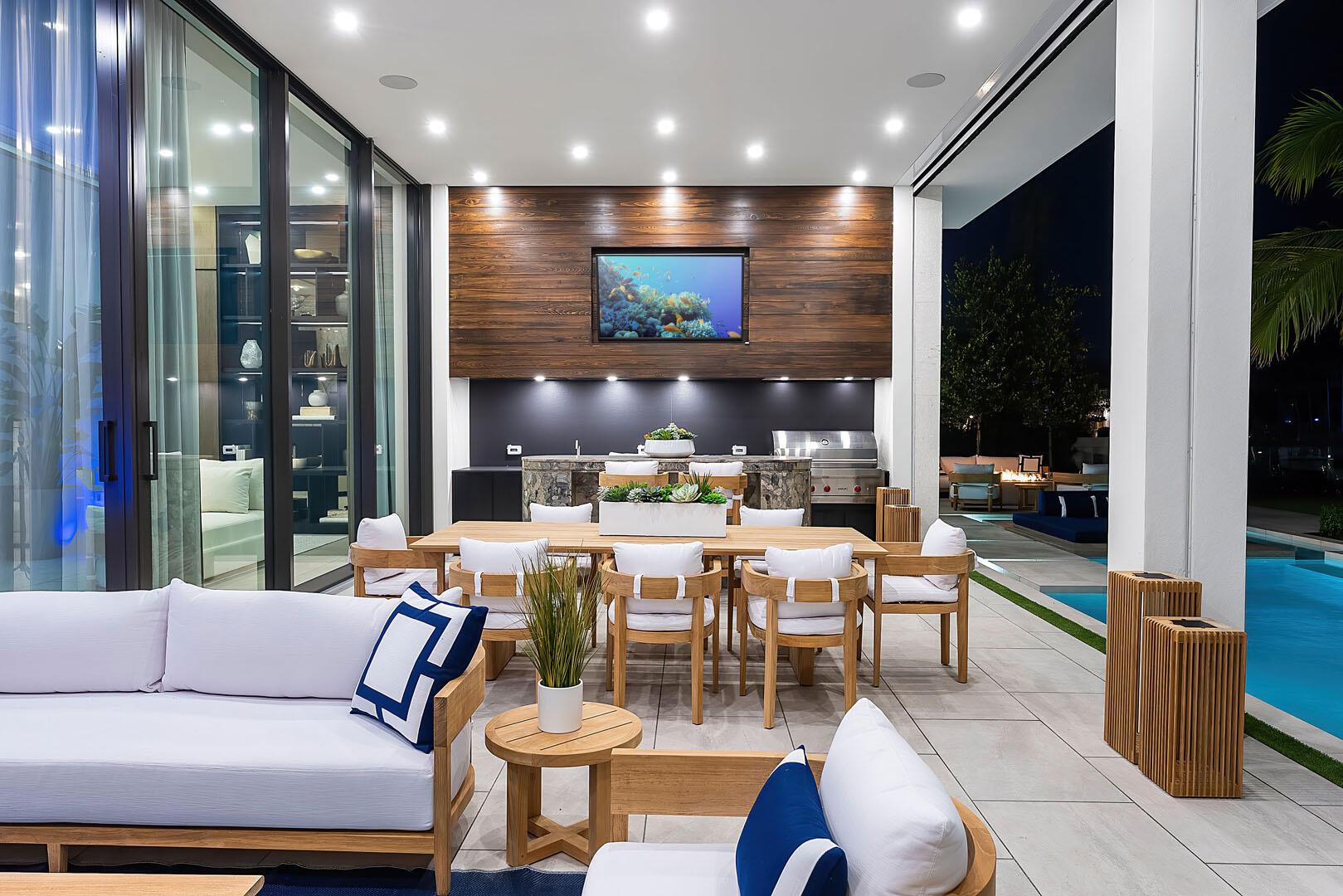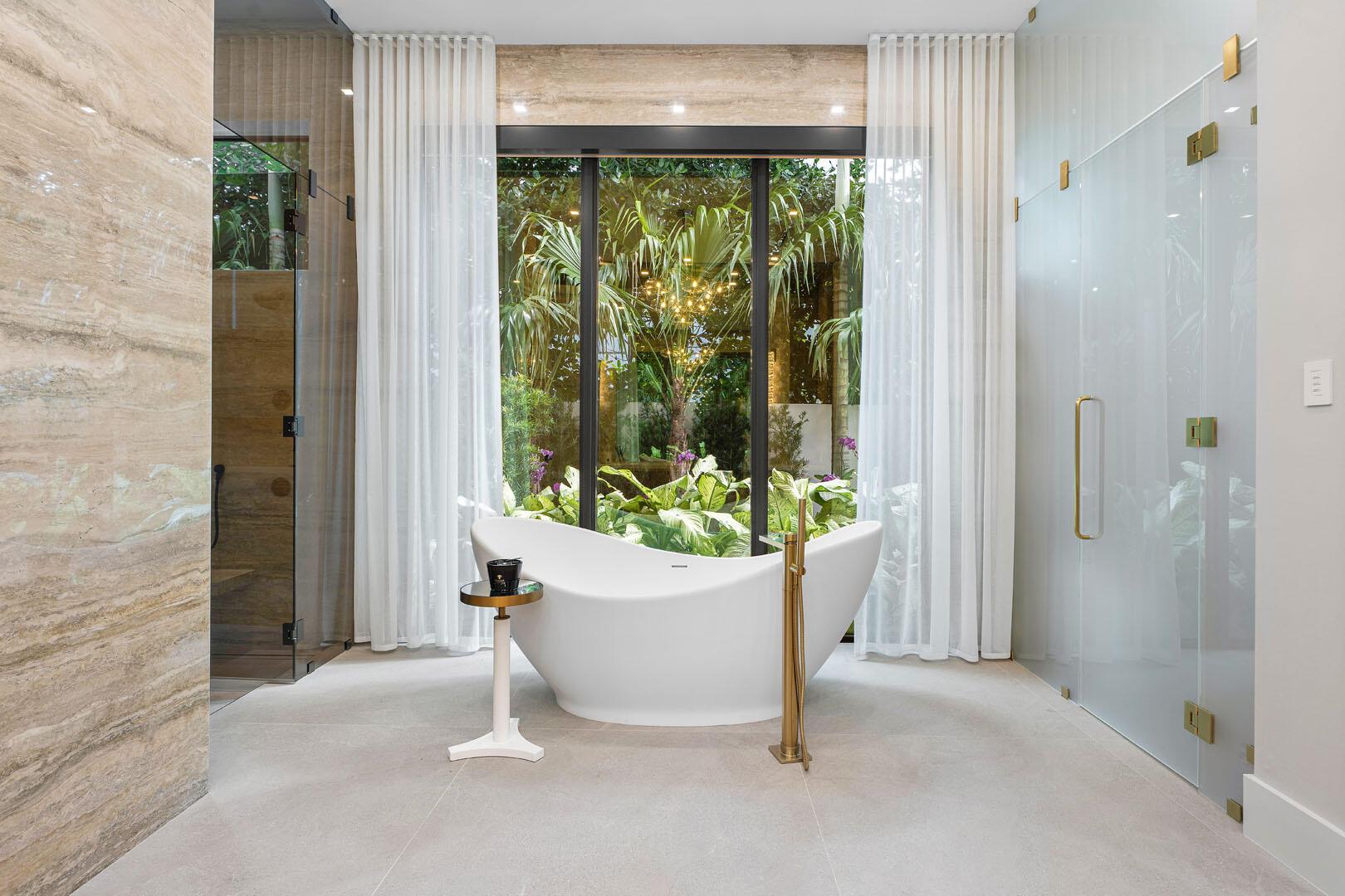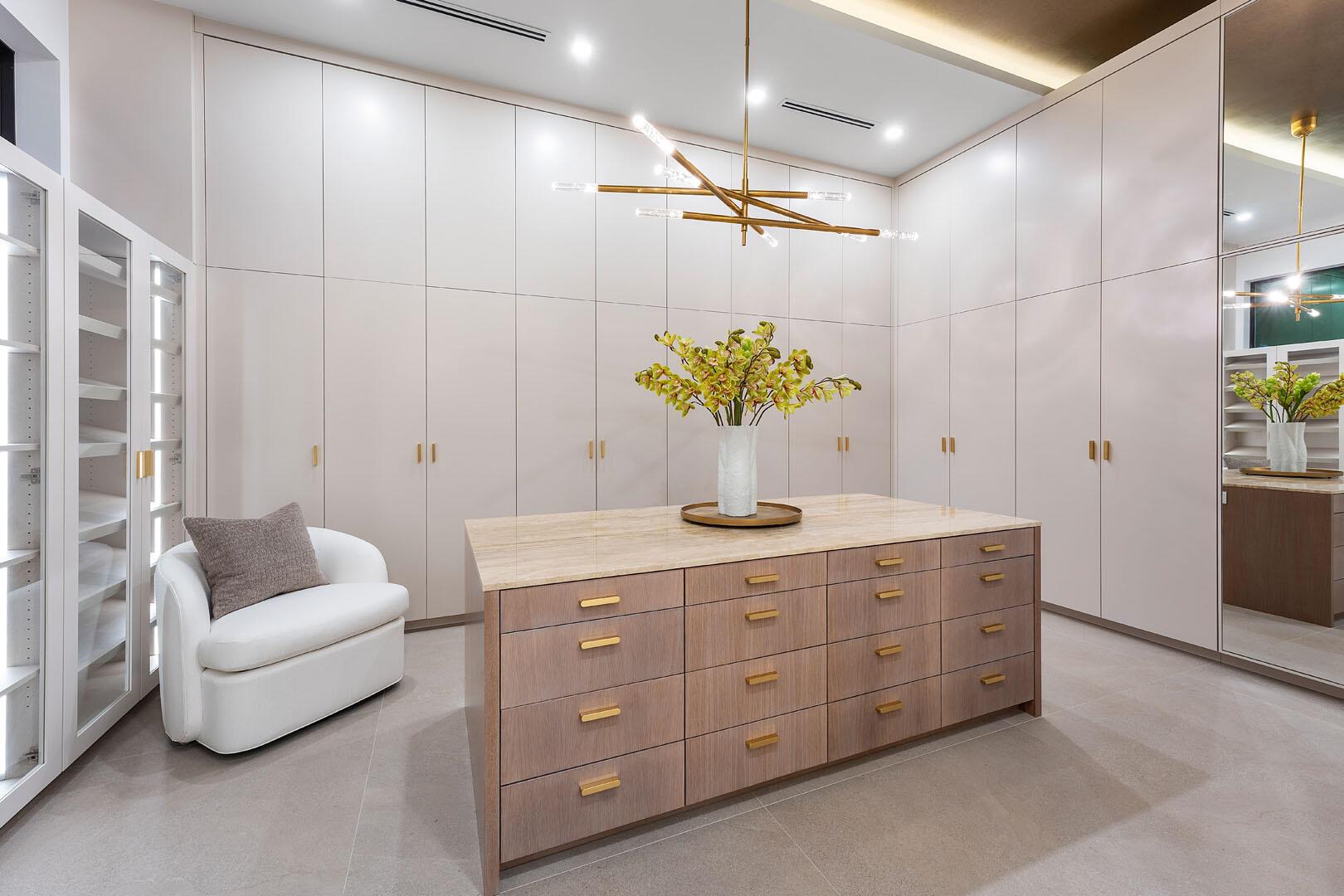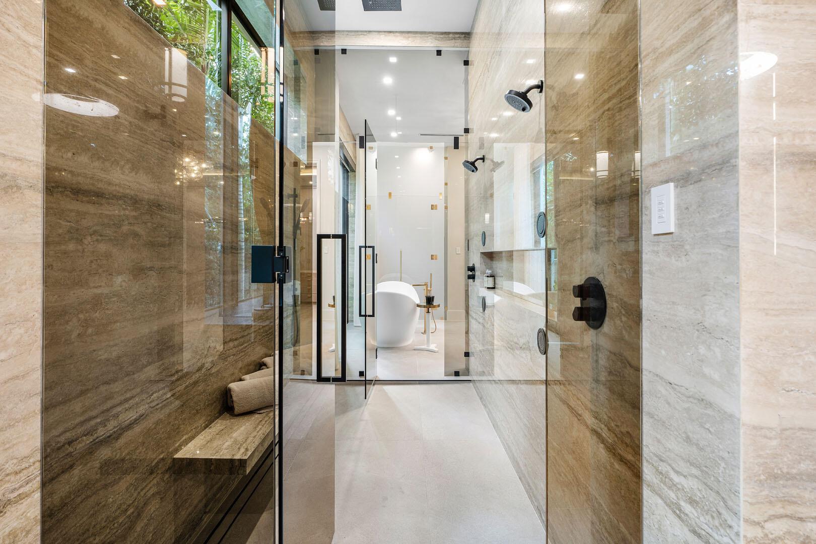 Nestled along 101 feet of the prestigious Butterfly Palm Waterway, this newly completed ultra-luxury contemporary estate developed by Matthew Epstein of Primark Partners sets a new standard that epitomizes waterfront elegance. Architecture by Affiniti Architects with interiors by Michael Gray Interiors, this seven-bedroom residence seamlessly blends innovative design with the finest materials and meticulous craftsmanship, offering a refined lifestyle in one of Boca Raton’s most exclusive enclaves.The first-floor primary suite is a serene retreat with indulgent His & Her spa-inspired bathrooms wrapped in Italian travertine and boutique-style closets. The thoughtfully designed interior also includes a chic clubroom with a Quartzite bar, a sophisticated home office, a formal dining