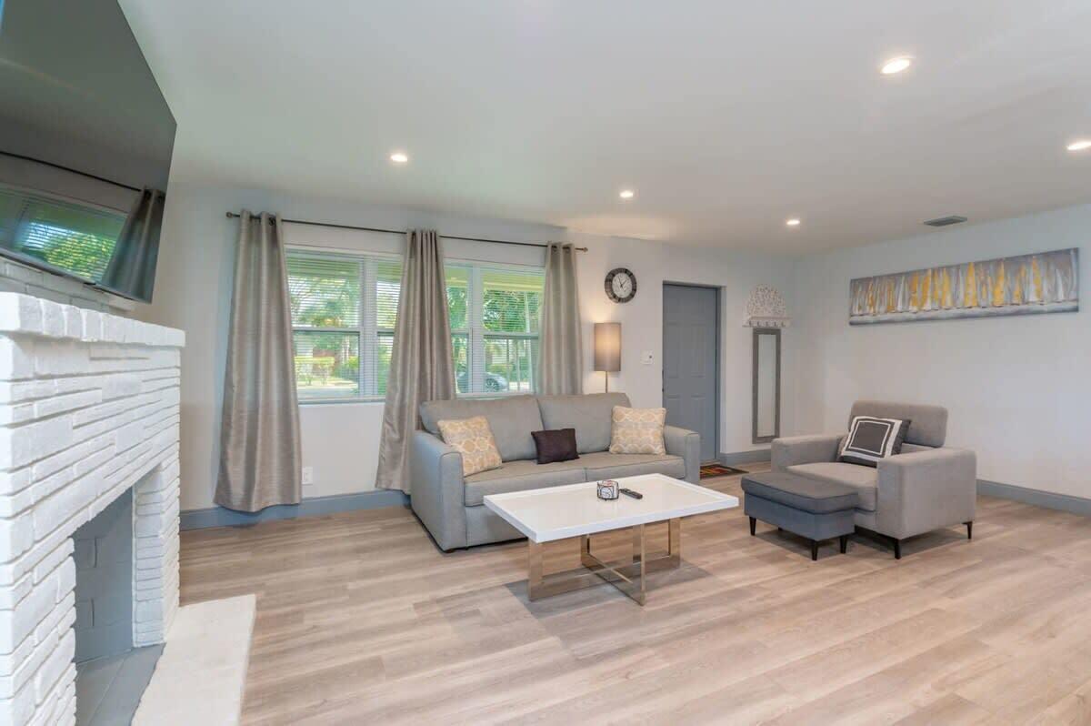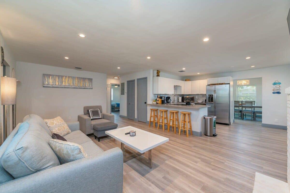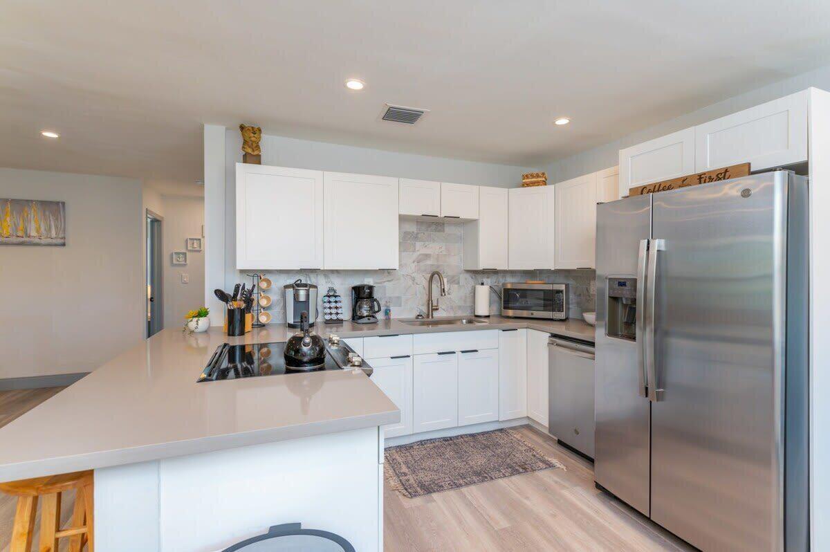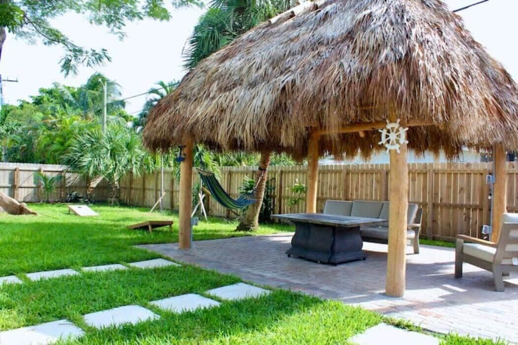 Discover the epitome of coastal living with this exceptional 2-bedroom, 2-bathroom home, nestled in the highly sought-after community of Harbour Village. Perfectly designed for both comfort and convenience, this residence features a fully fenced-in yard, offering ultimate privacy for outdoor living and entertainment. A charming tiki hut adds a touch of tropical elegance, creating an inviting space to unwind or host guests.Inside, you’ll find an open floor plan with a modern kitchen showcasing stainless steel appliances, quartz countertops, and a stylish tile backsplash. Water-resistant flooring runs throughout the home, adding both practicality and sophistication.Situated just a leisurely walk or bike ride from the Pompano Beach Pier, this home provides unparalleled access to the