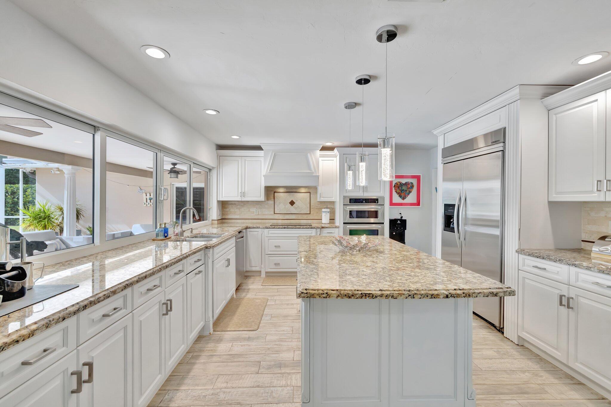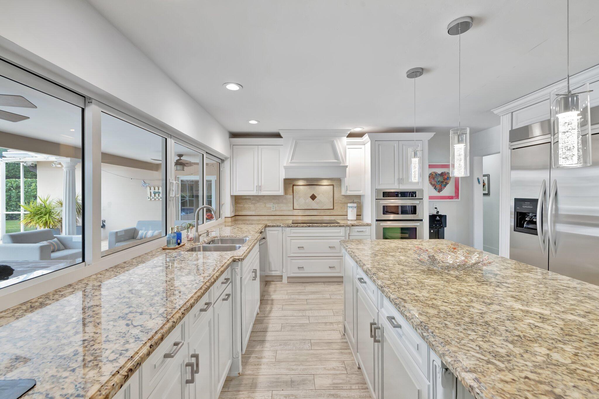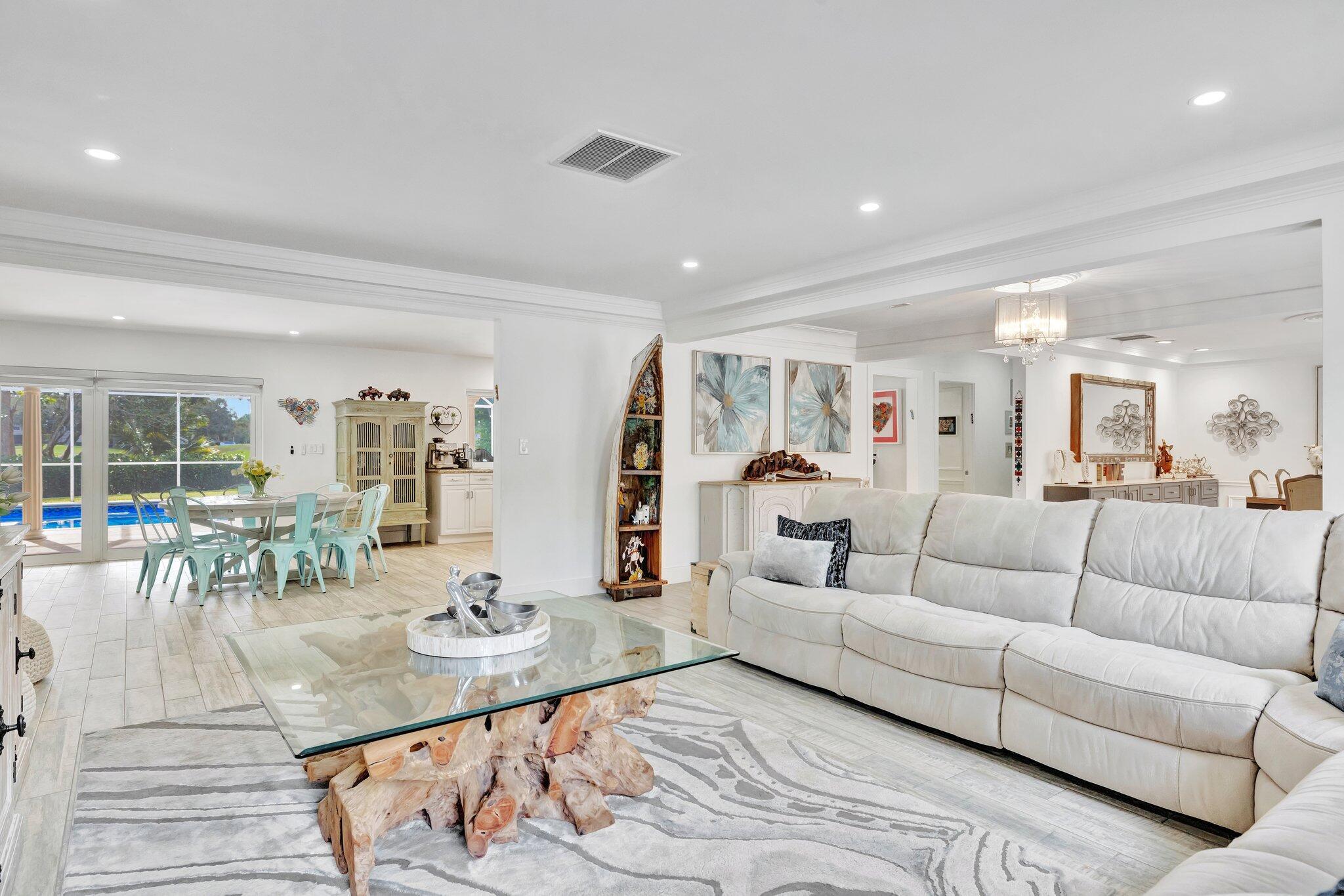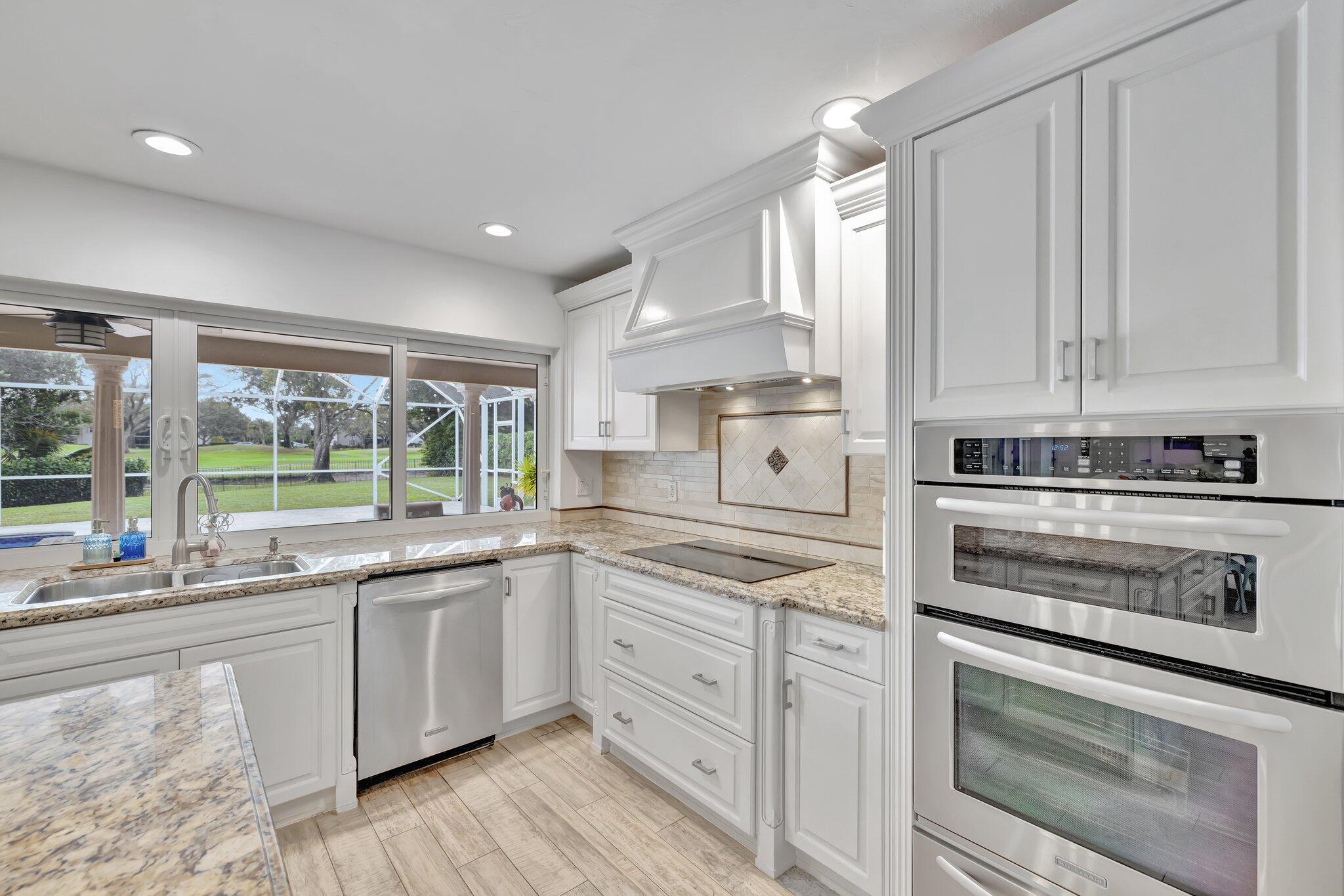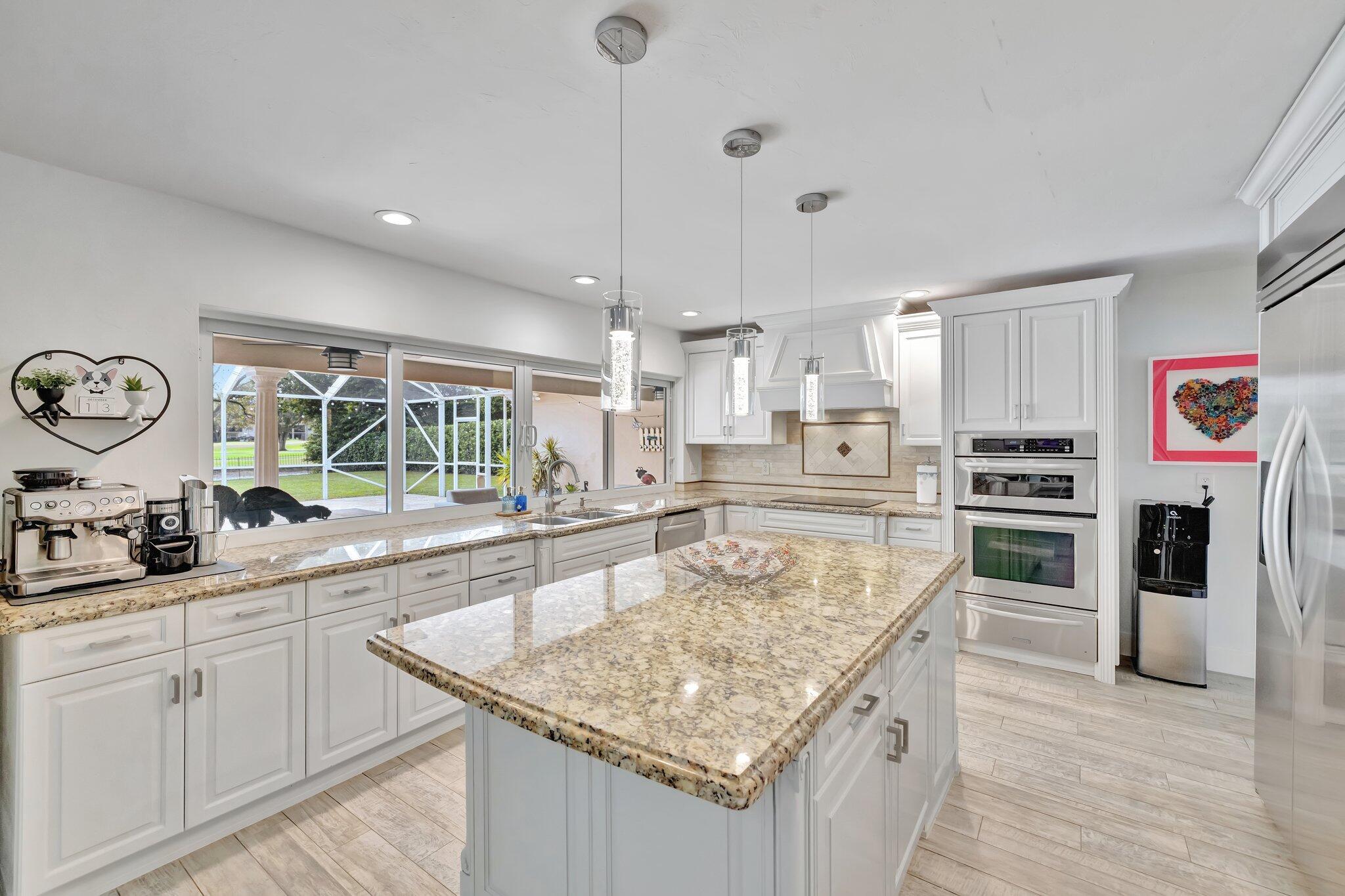 The perfect blend of elegance & modern living in this exquisite 4 bed,3 bath home, complete w/ bonus sunroom, offers unparalleled lake & golf course views. From the moment you enter, you’ll be captivated by the natural light that floods the oversized dining room, formal living room & family room, all accented by crown molding, downlights, & new tile flooring. The oversized kitchen featuring granite countertops, stainless steel appliances, & custom built-ins, perfectly blend function & style. Every room boasts thoughtful upgrades & an ideal floorplan ensures effortless movement between indoor & outdoor spaces, making it perfect for entertaining. This home is as practical as it is stunning, w/hurricane impact windows & doors, new plumbing, new electric panels, foam attic insulation & more!