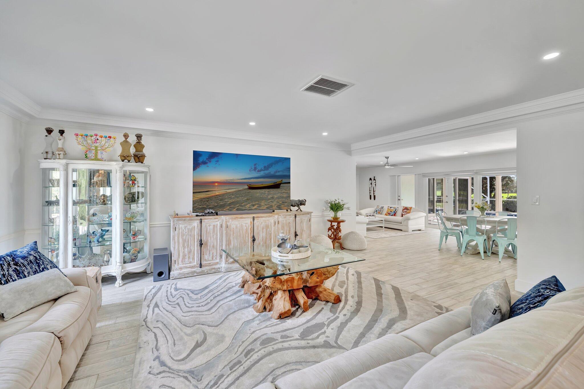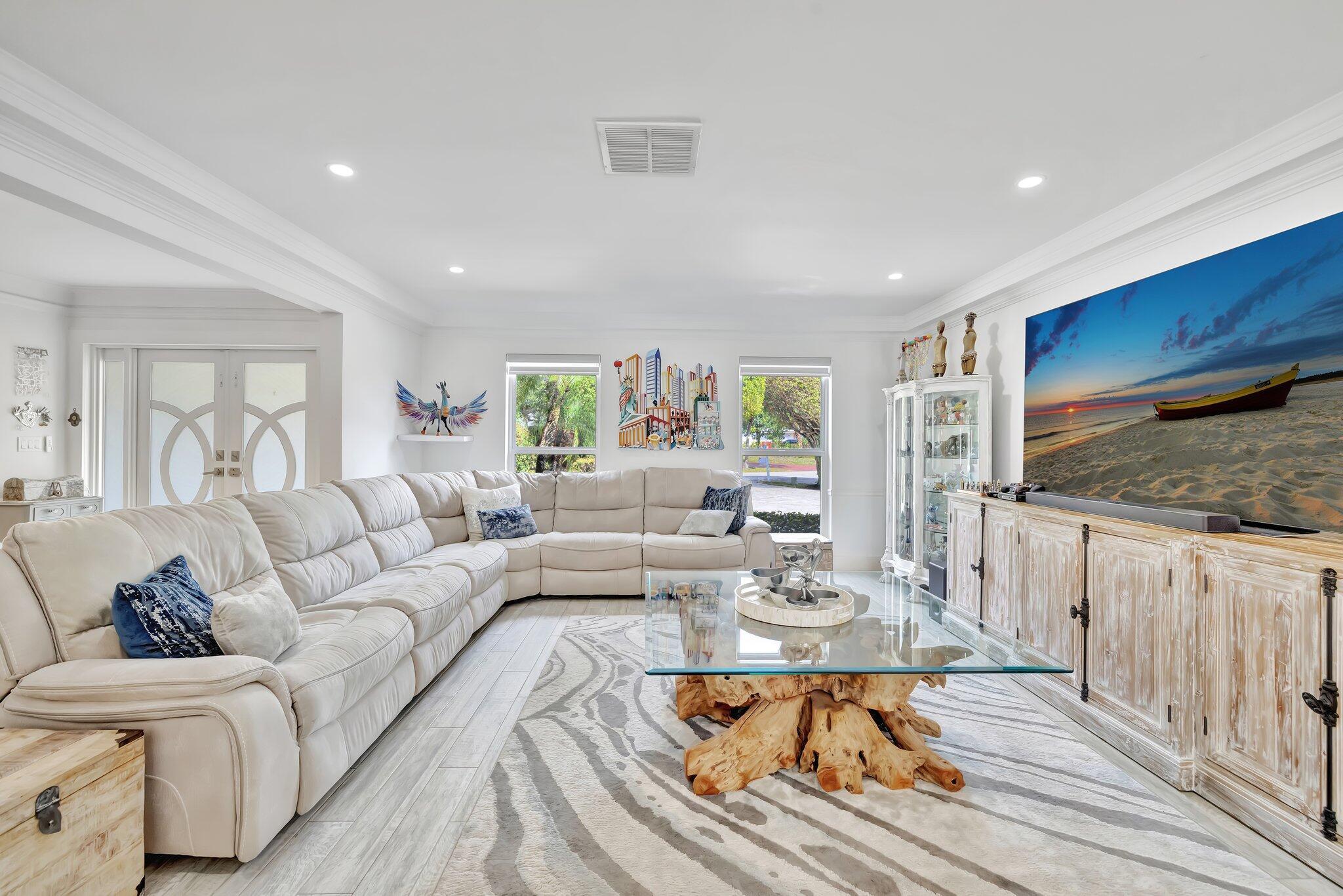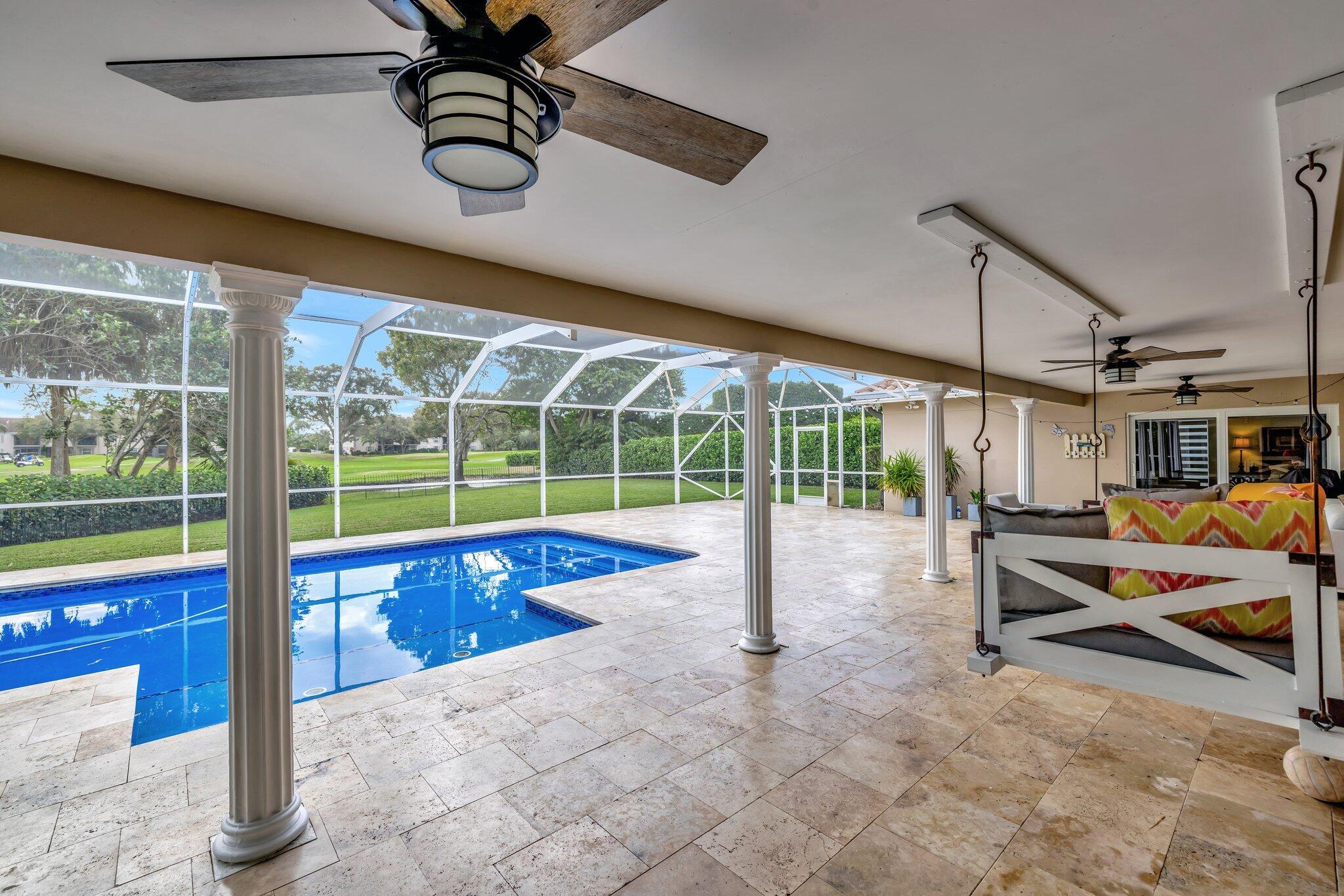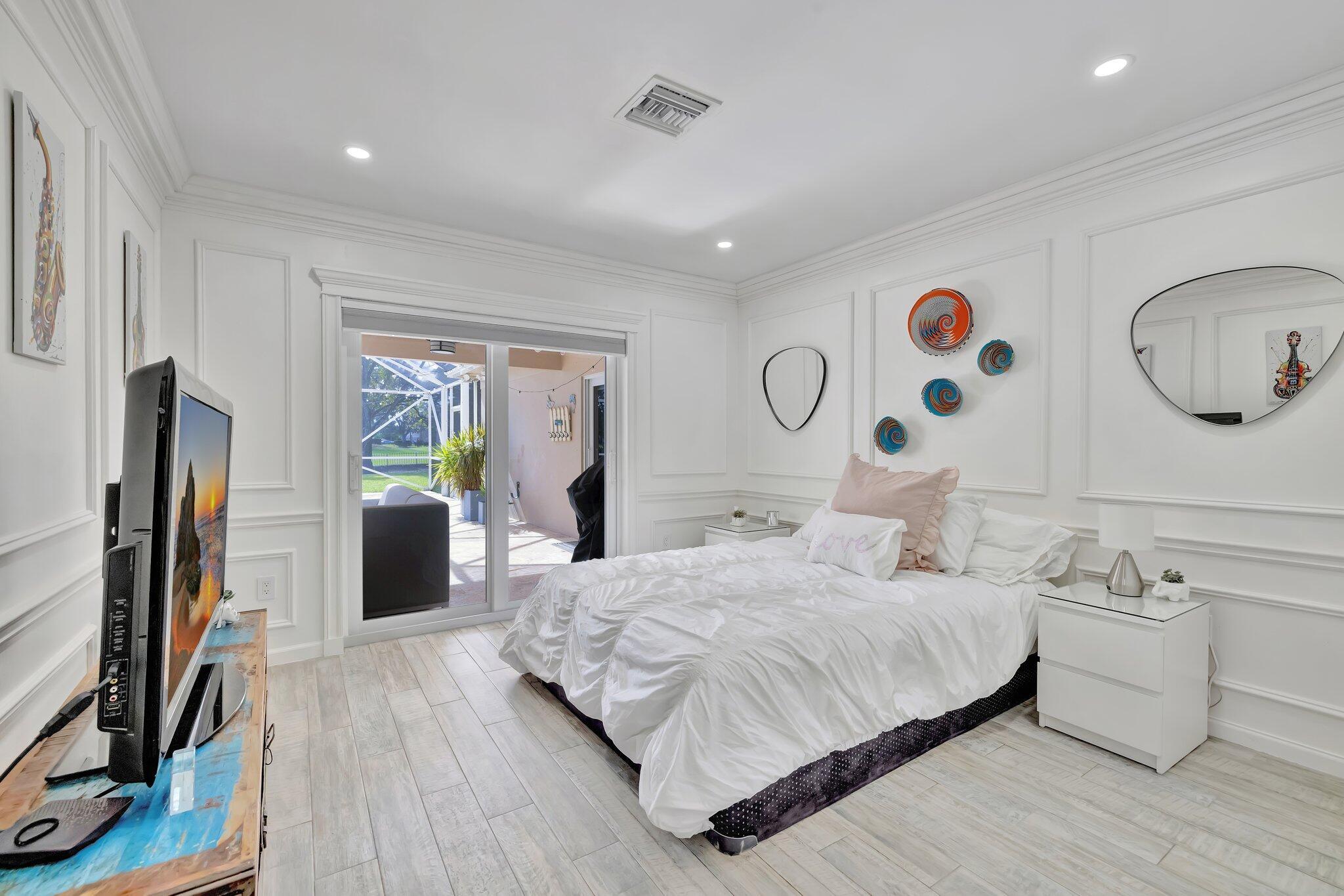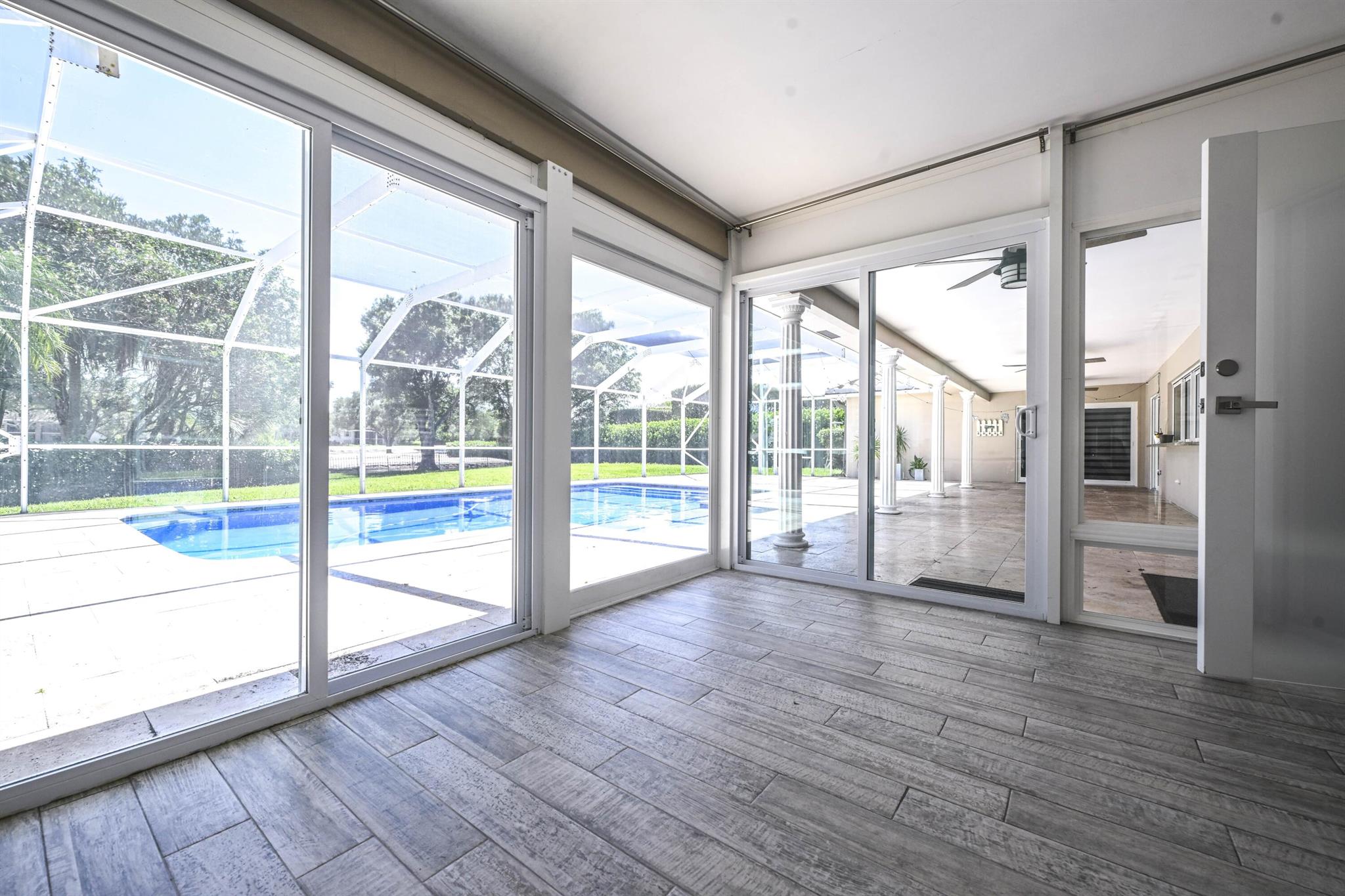 The perfect blend of elegance & modern living in this exquisite 4 bed,3 bath home, complete w/ bonus sunroom, offers unparalleled lake & golf course views. From the moment you enter, you’ll be captivated by the natural light that floods the oversized dining room, formal living room & family room, all accented by crown molding, downlights, & new tile flooring. The oversized kitchen featuring granite countertops, stainless steel appliances, & custom built-ins, perfectly blend function & style. Every room boasts thoughtful upgrades & an ideal floorplan ensures effortless movement between indoor & outdoor spaces, making it perfect for entertaining. This home is as practical as it is stunning, w/hurricane impact windows & doors, new plumbing, new electric panels, foam attic insulation & more!