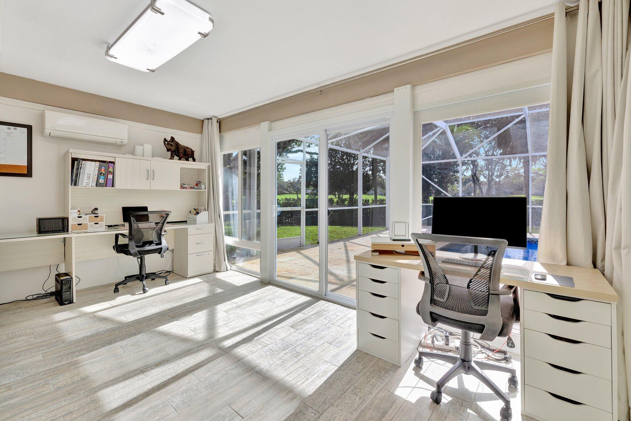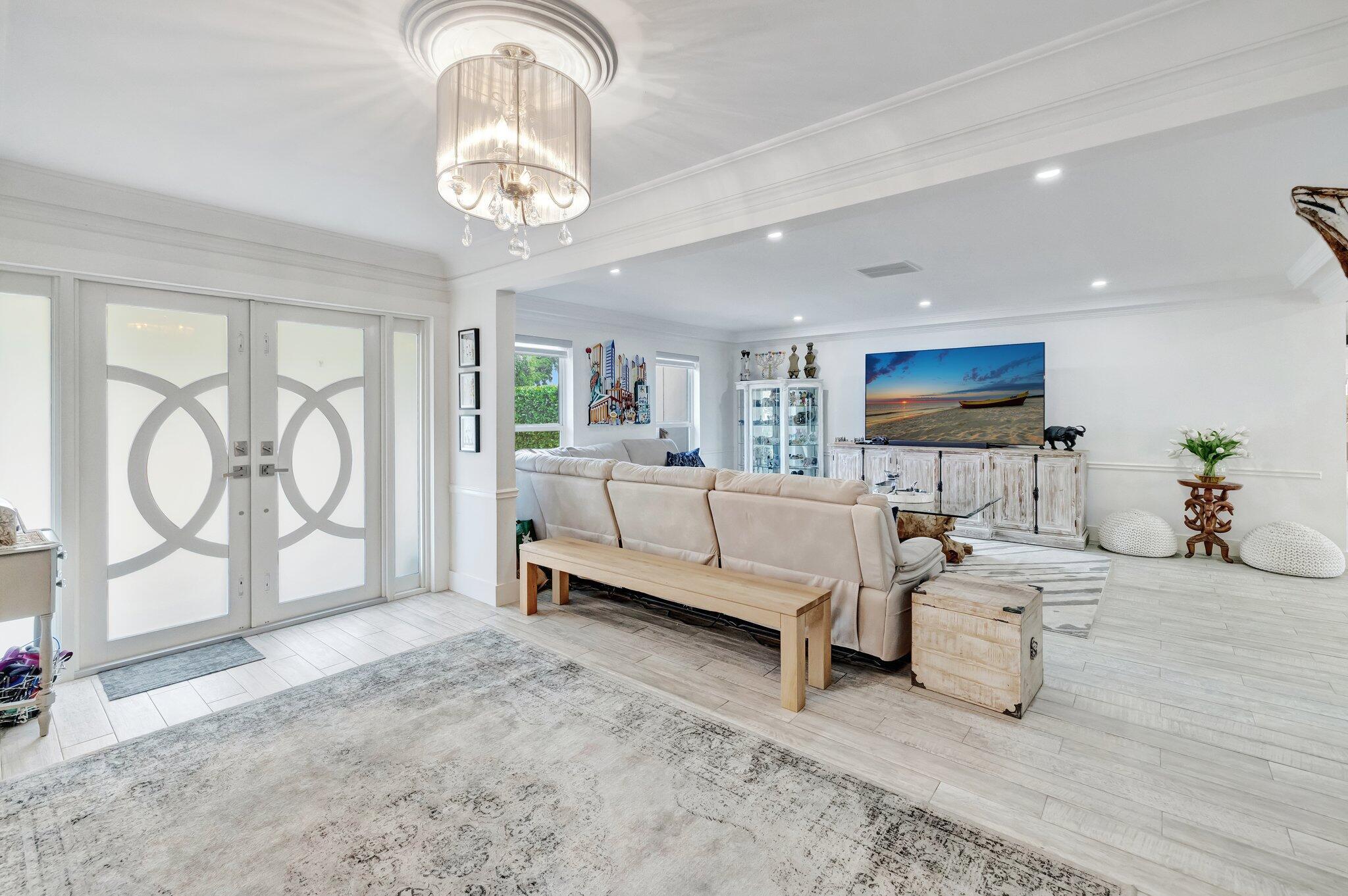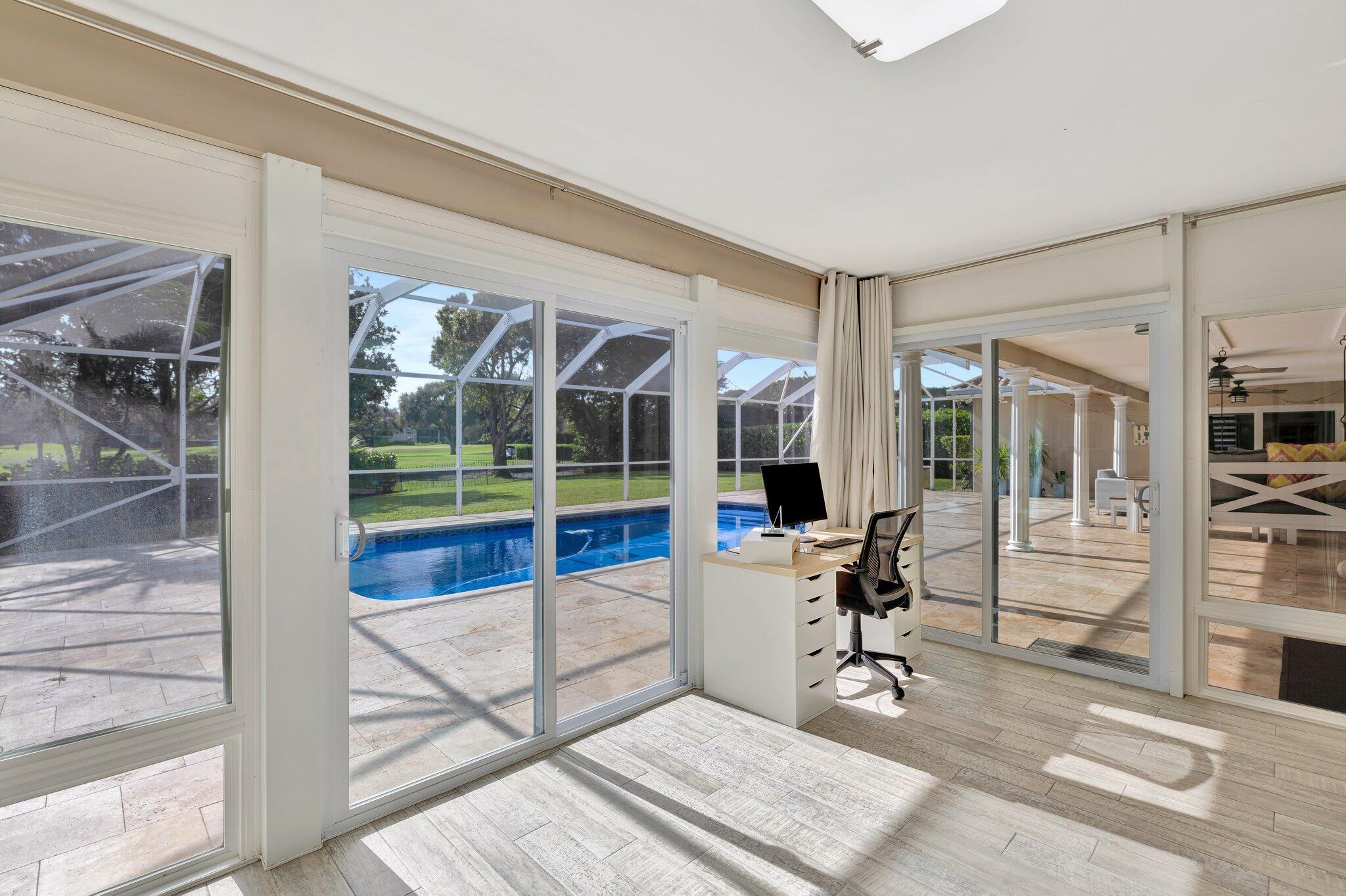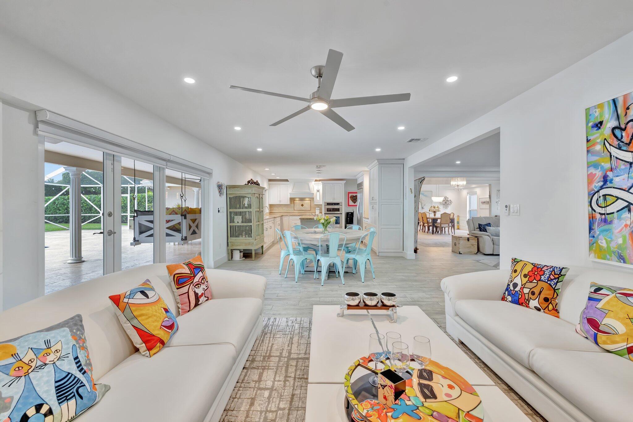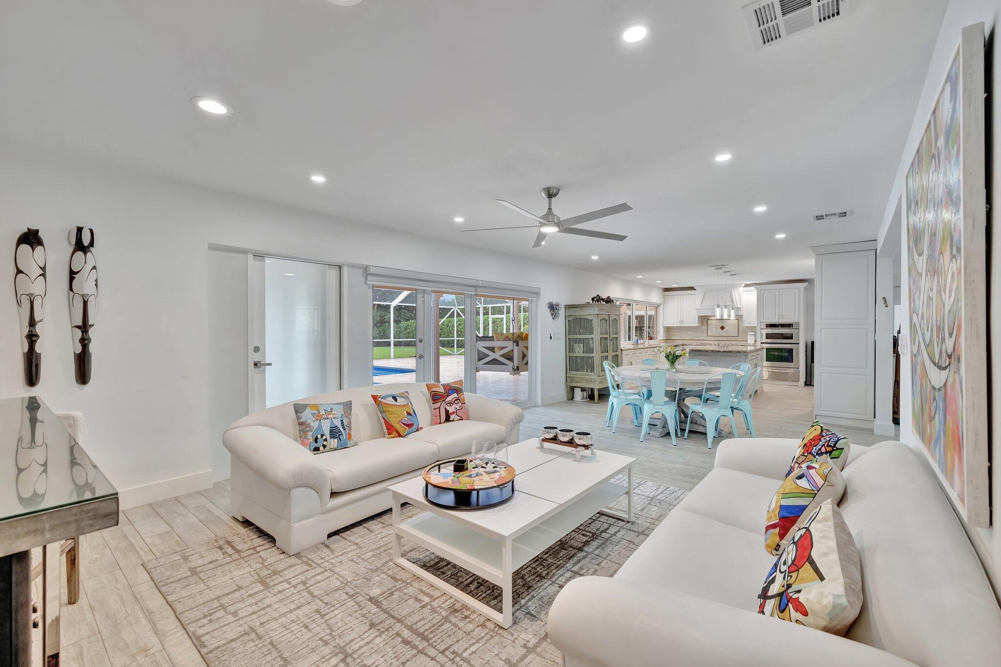 The perfect blend of elegance & modern living in this exquisite 4 bed,3 bath home, complete w/ bonus sunroom, offers unparalleled lake & golf course views. From the moment you enter, you’ll be captivated by the natural light that floods the oversized dining room, formal living room & family room, all accented by crown molding, downlights, & new tile flooring. The oversized kitchen featuring granite countertops, stainless steel appliances, & custom built-ins, perfectly blend function & style. Every room boasts thoughtful upgrades & an ideal floorplan ensures effortless movement between indoor & outdoor spaces, making it perfect for entertaining. This home is as practical as it is stunning, w/hurricane impact windows & doors, new plumbing, new electric panels, foam attic insulation & more!