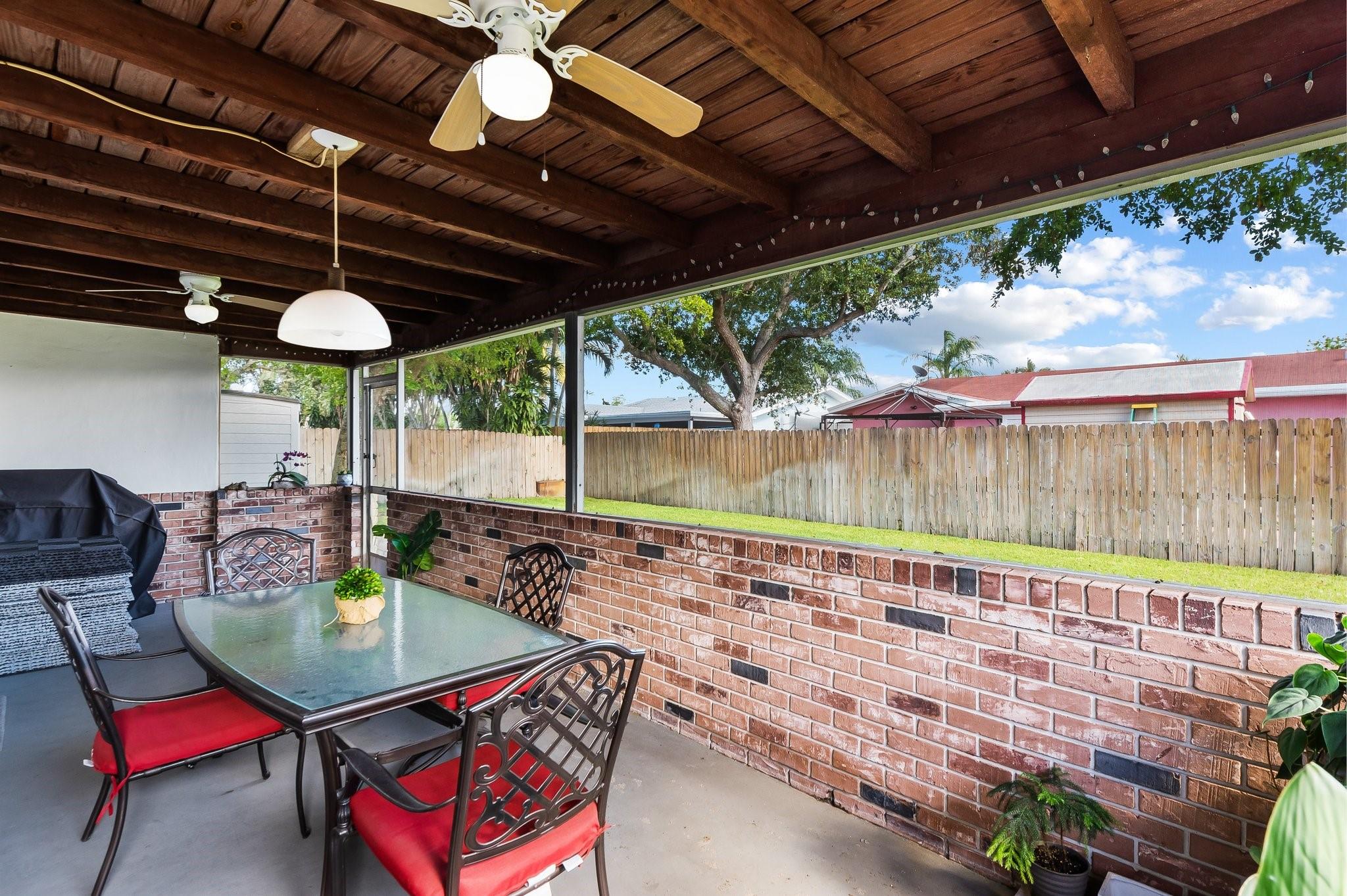 Well maintained light and bright home in desirable Palm Aire Village area in Fort Lauderdale. Spacious and flowing floor plan with large rooms, dining area and covered screened porch for additional outside enjoyment. Open eat in kitchen with white cabinets, double sink, stainless steel appliances and food pantry. Oversized 20×14 attached garage with remote opener for car and storage. Double car driveway! Beautiful green fenced back yard for outdoor entertaining. Well water sprinkler system for low cost irrigation. Side yard parking slab for boat or RV (see pics). Great curb appeal- No HOA.