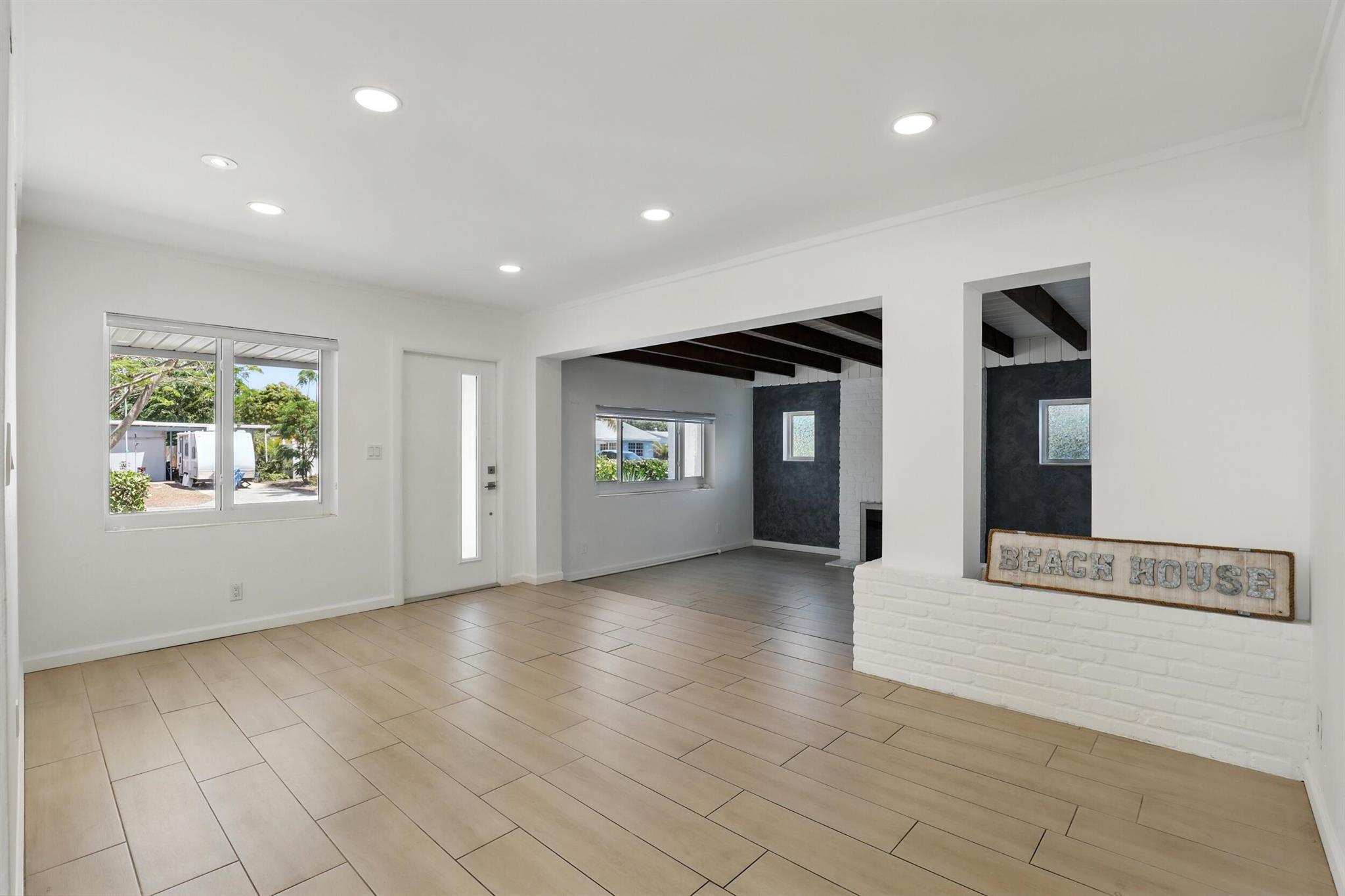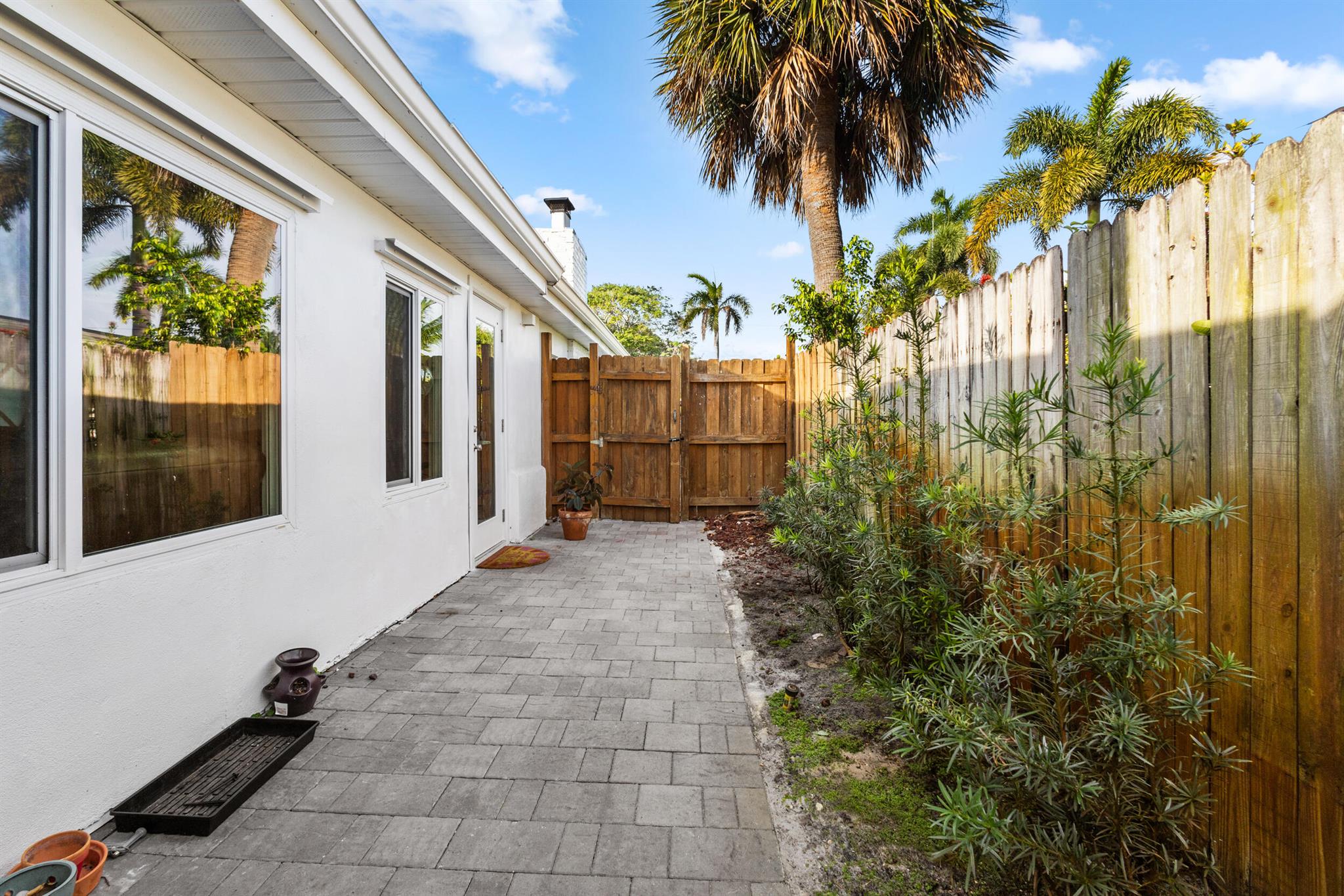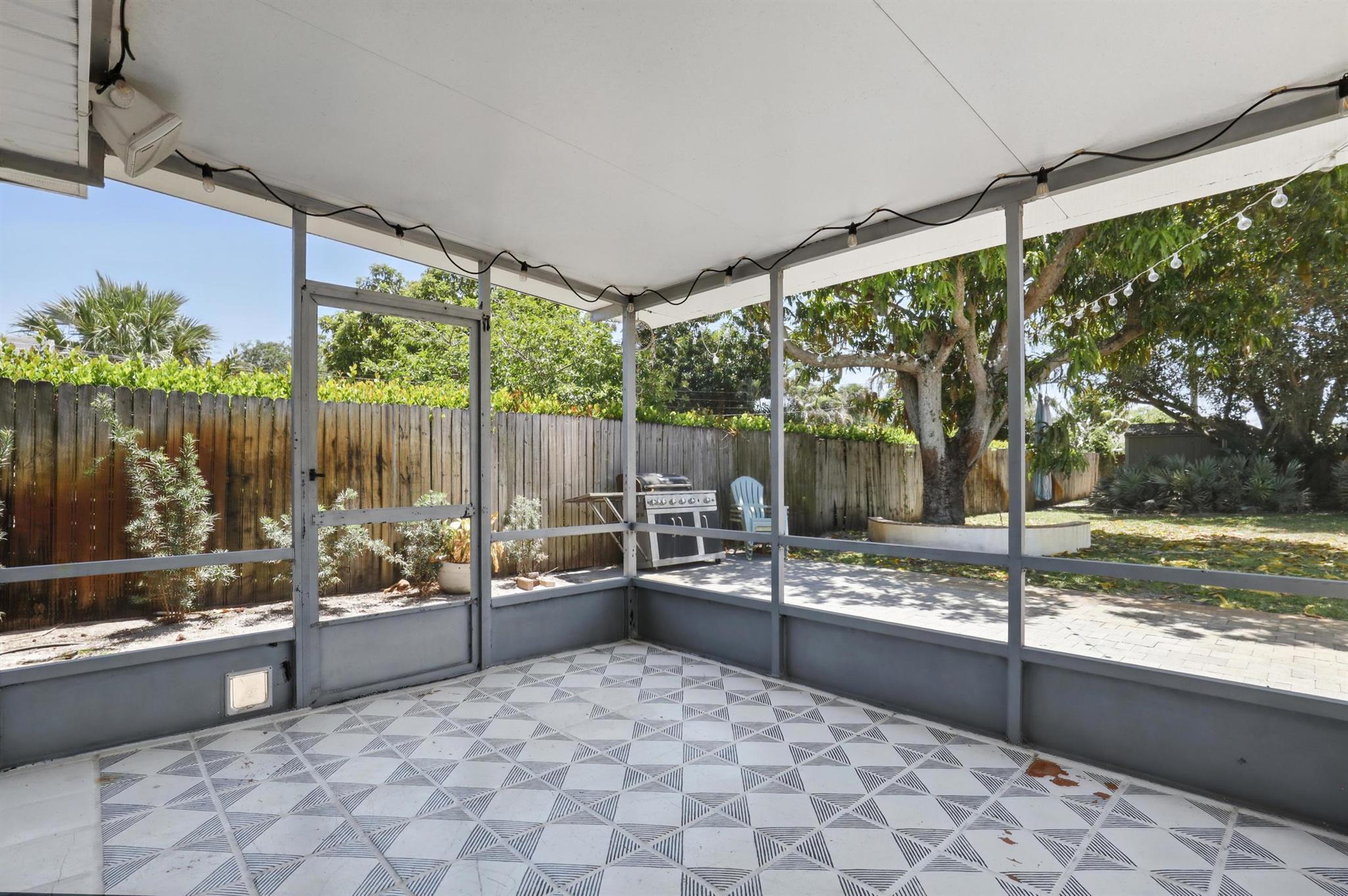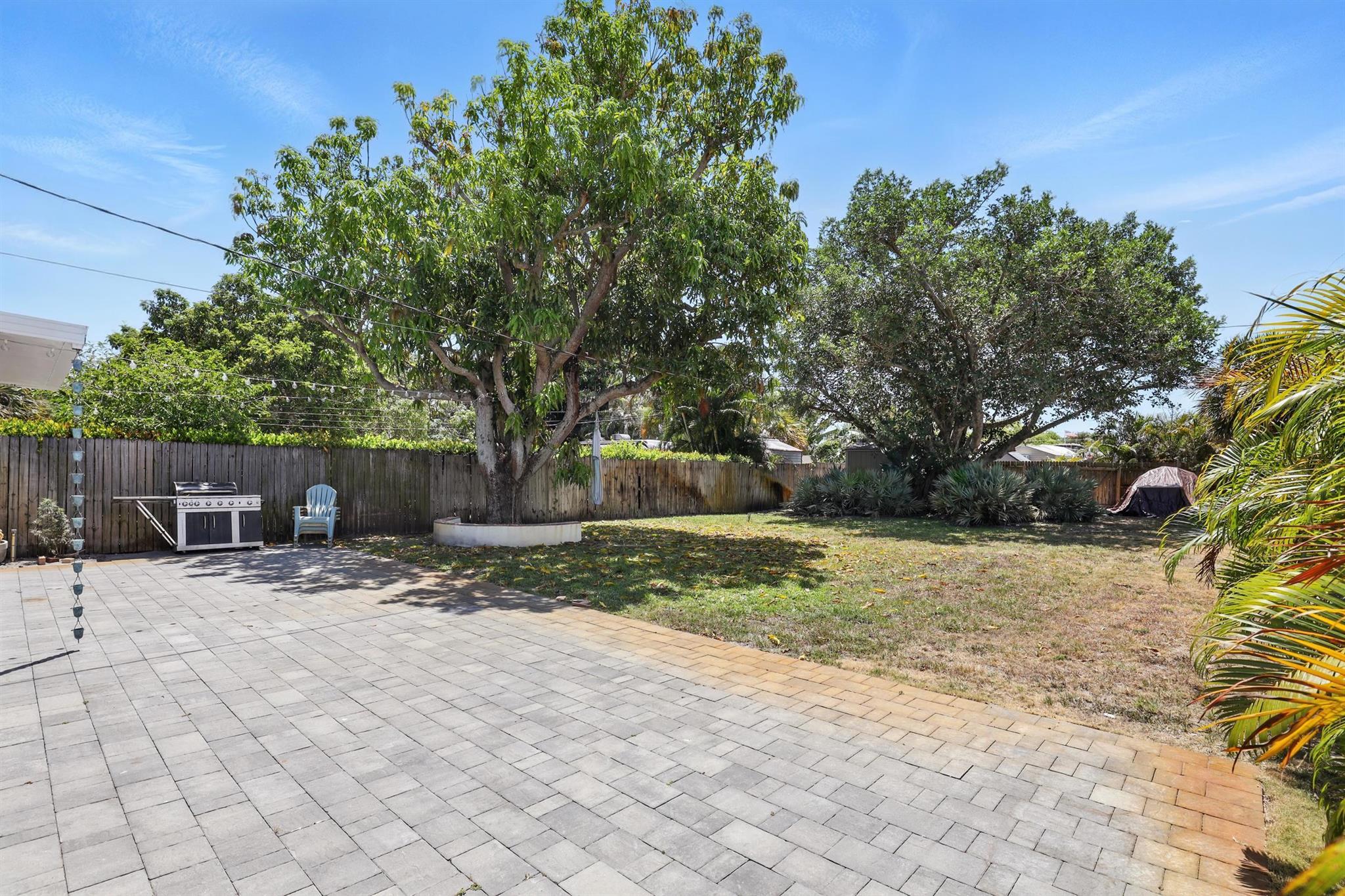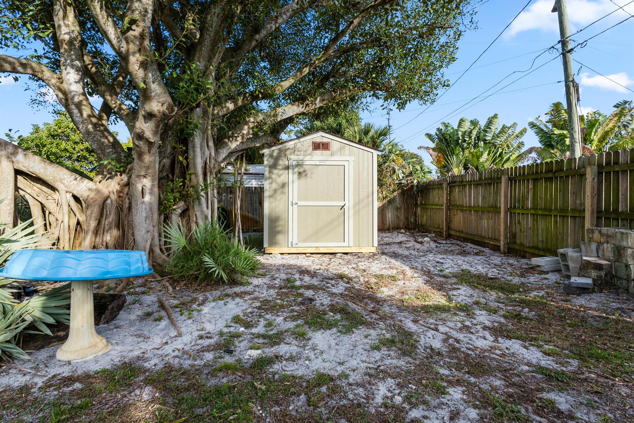 Charming fully updated 3BR CBS home on a quiet Lake Worth Beach cul-de-sac. Built in 1954, this well-maintained property blends classic character with modern upgrades. A custom designer impact front door opens to a bright, open layout with updated flooring, lighting, and a cozy living room featuring a real wood-burning fireplace. The eat-in kitchen offers granite countertops, stainless steel appliances, and a tankless water heater for added efficiency. Enjoy the spacious 12×22 family room, enlarged primary closet, and a beautifully renovated bathroom. Impact windows throughout for safety and energy savings. Outside, a large covered patio overlooks a huge fenced backyard with plenty of room to add a pool, garden, or play football with your dog. New shed, upgraded sprinkler system.