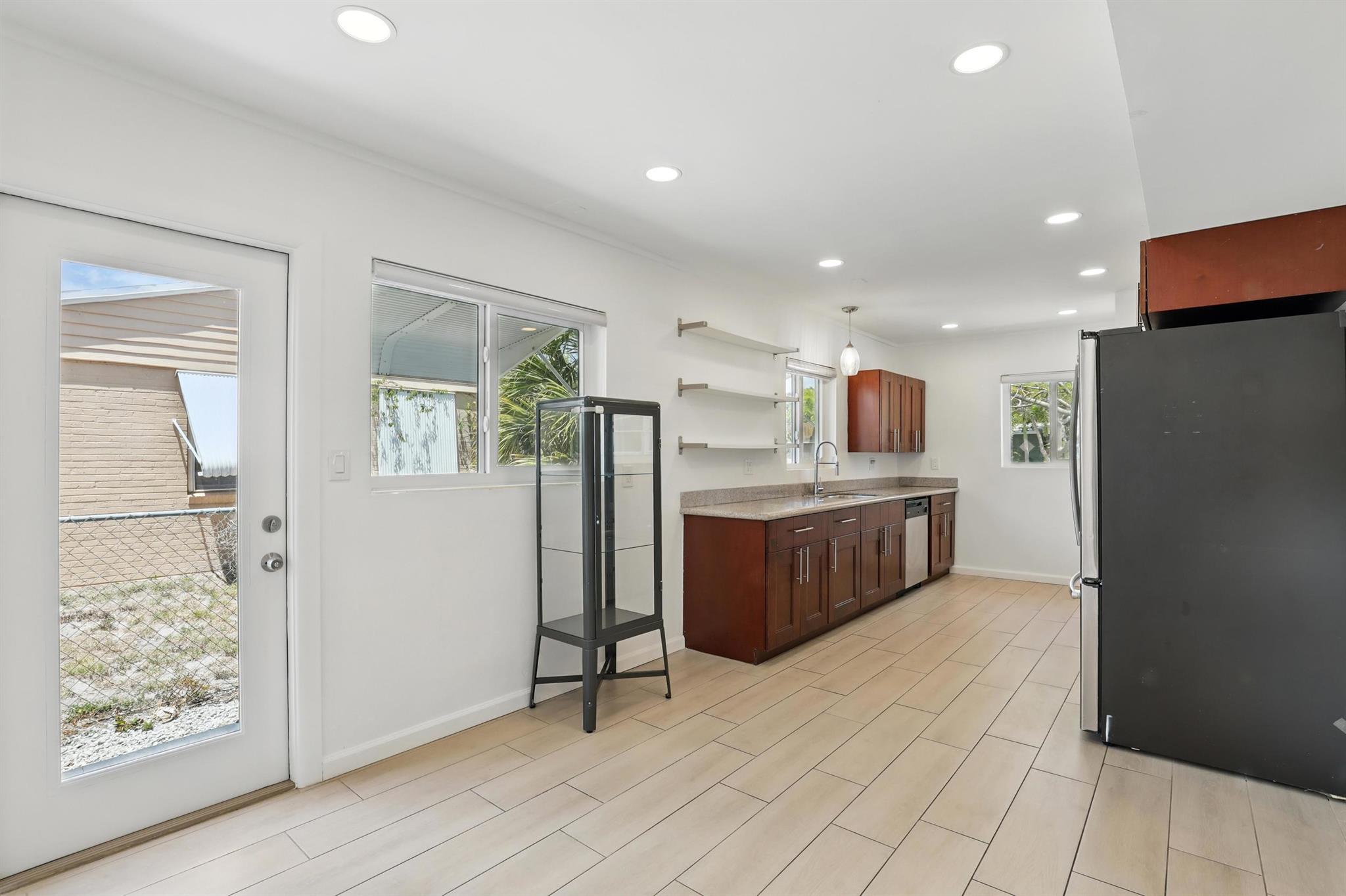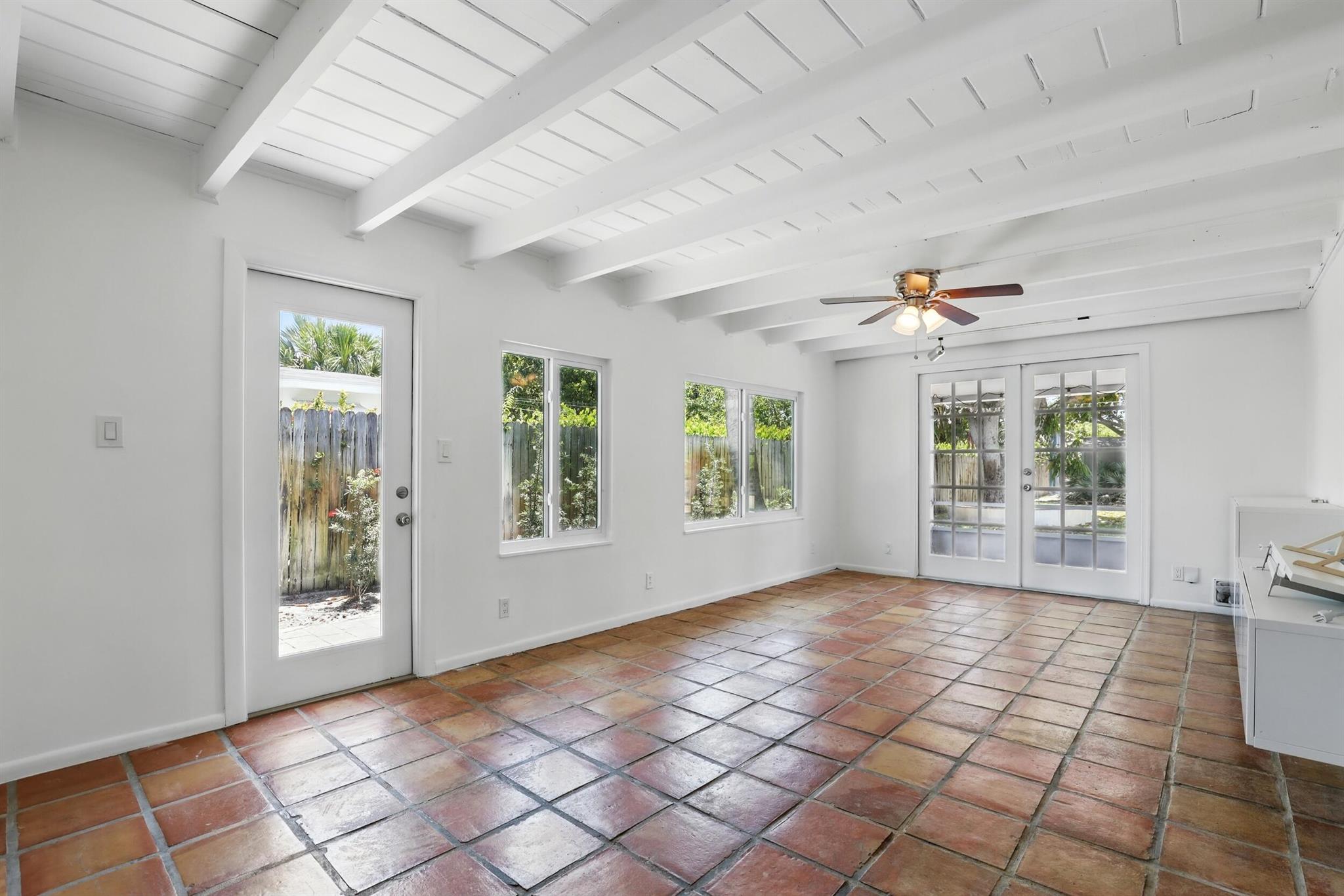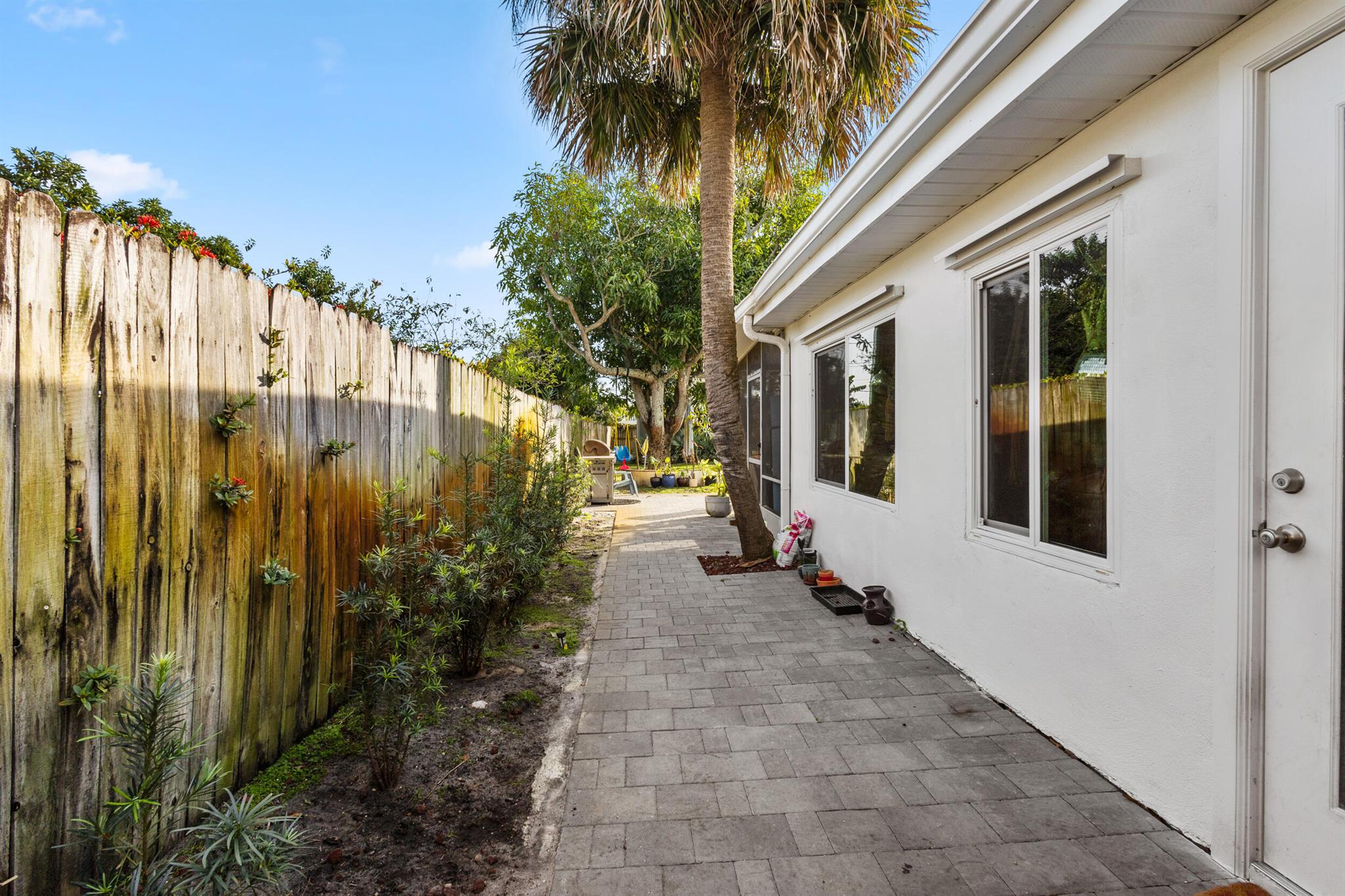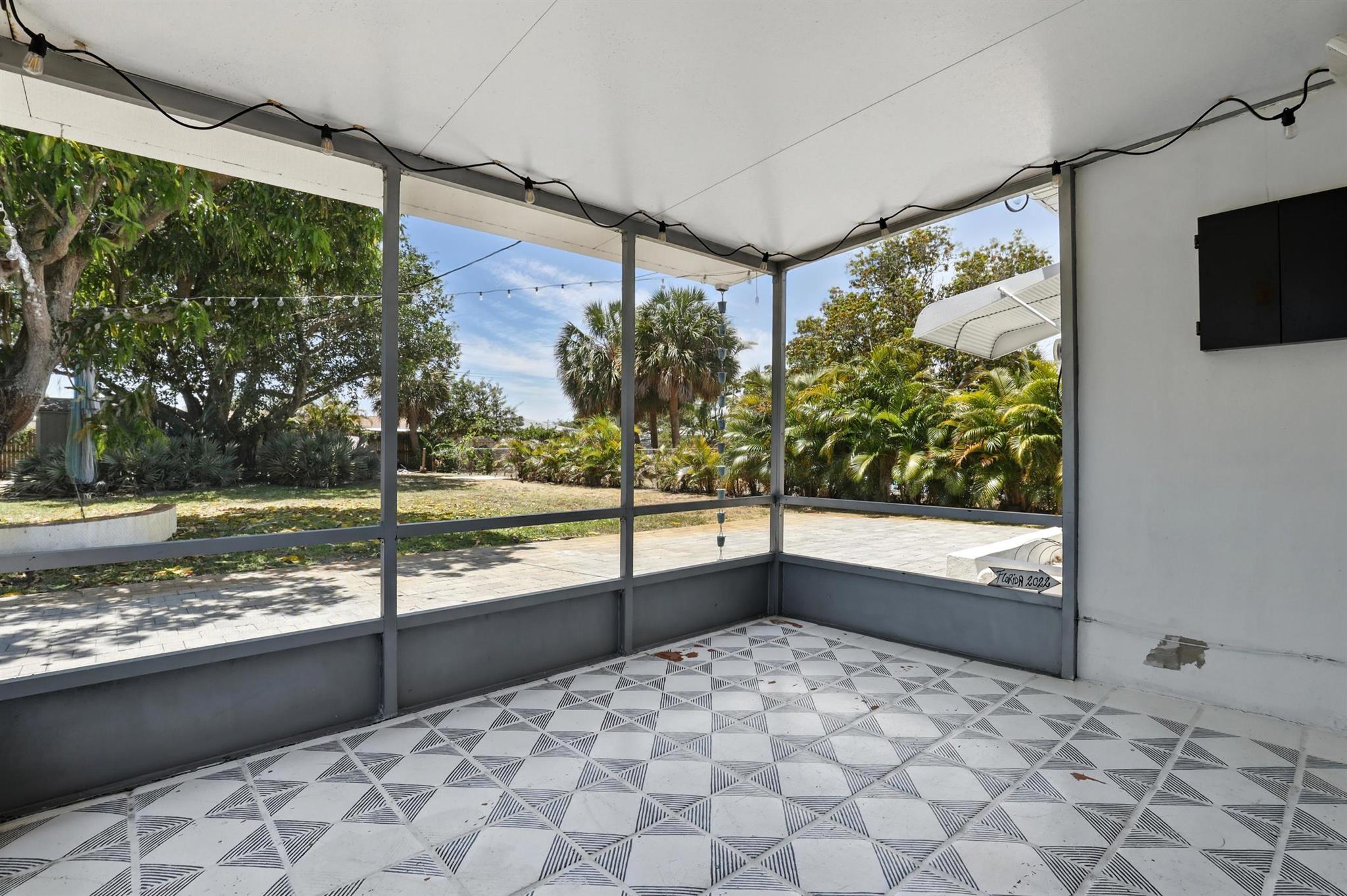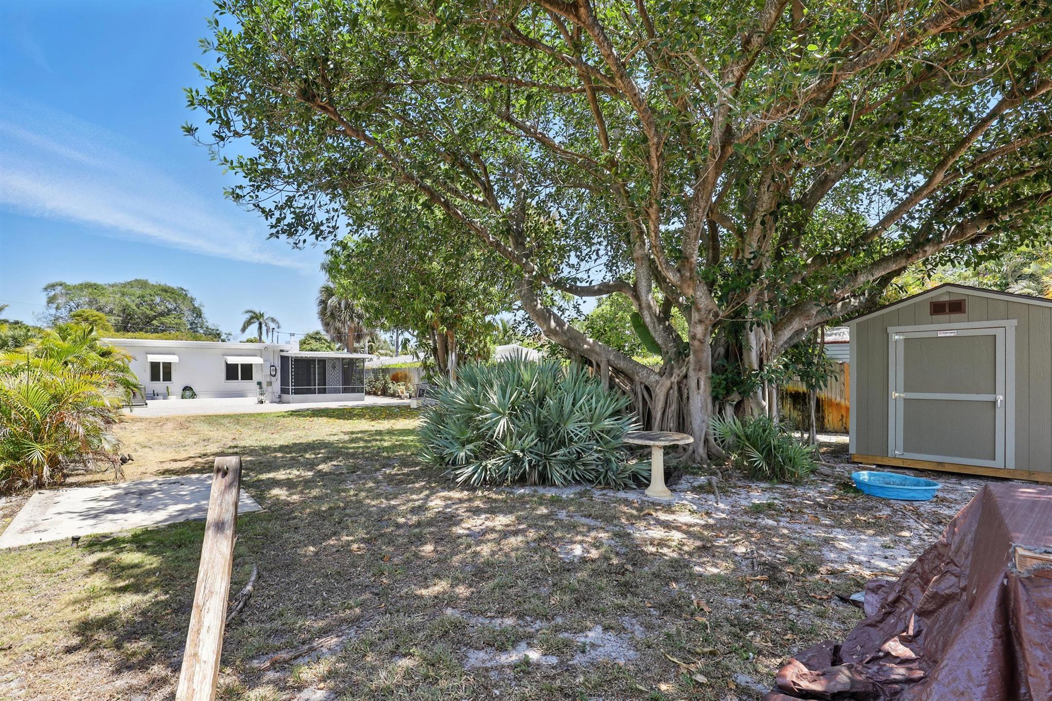 Charming fully updated 3BR CBS home on a quiet Lake Worth Beach cul-de-sac. Built in 1954, this well-maintained property blends classic character with modern upgrades. A custom designer impact front door opens to a bright, open layout with updated flooring, lighting, and a cozy living room featuring a real wood-burning fireplace. The eat-in kitchen offers granite countertops, stainless steel appliances, and a tankless water heater for added efficiency. Enjoy the spacious 12×22 family room, enlarged primary closet, and a beautifully renovated bathroom. Impact windows throughout for safety and energy savings. Outside, a large covered patio overlooks a huge fenced backyard with plenty of room to add a pool, garden, or play football with your dog. New shed, upgraded sprinkler system.