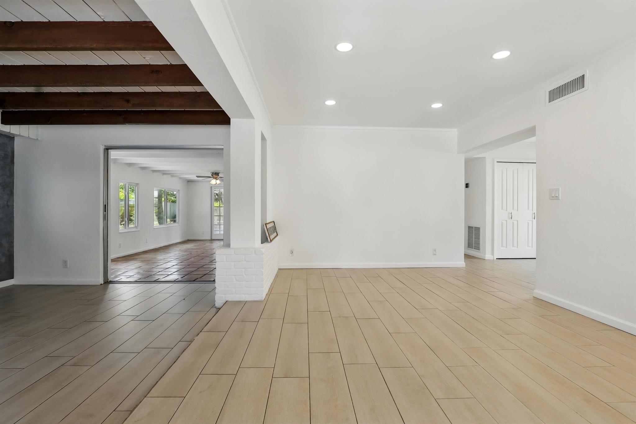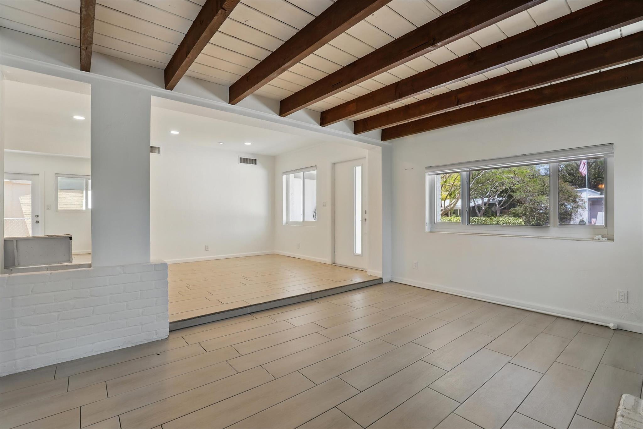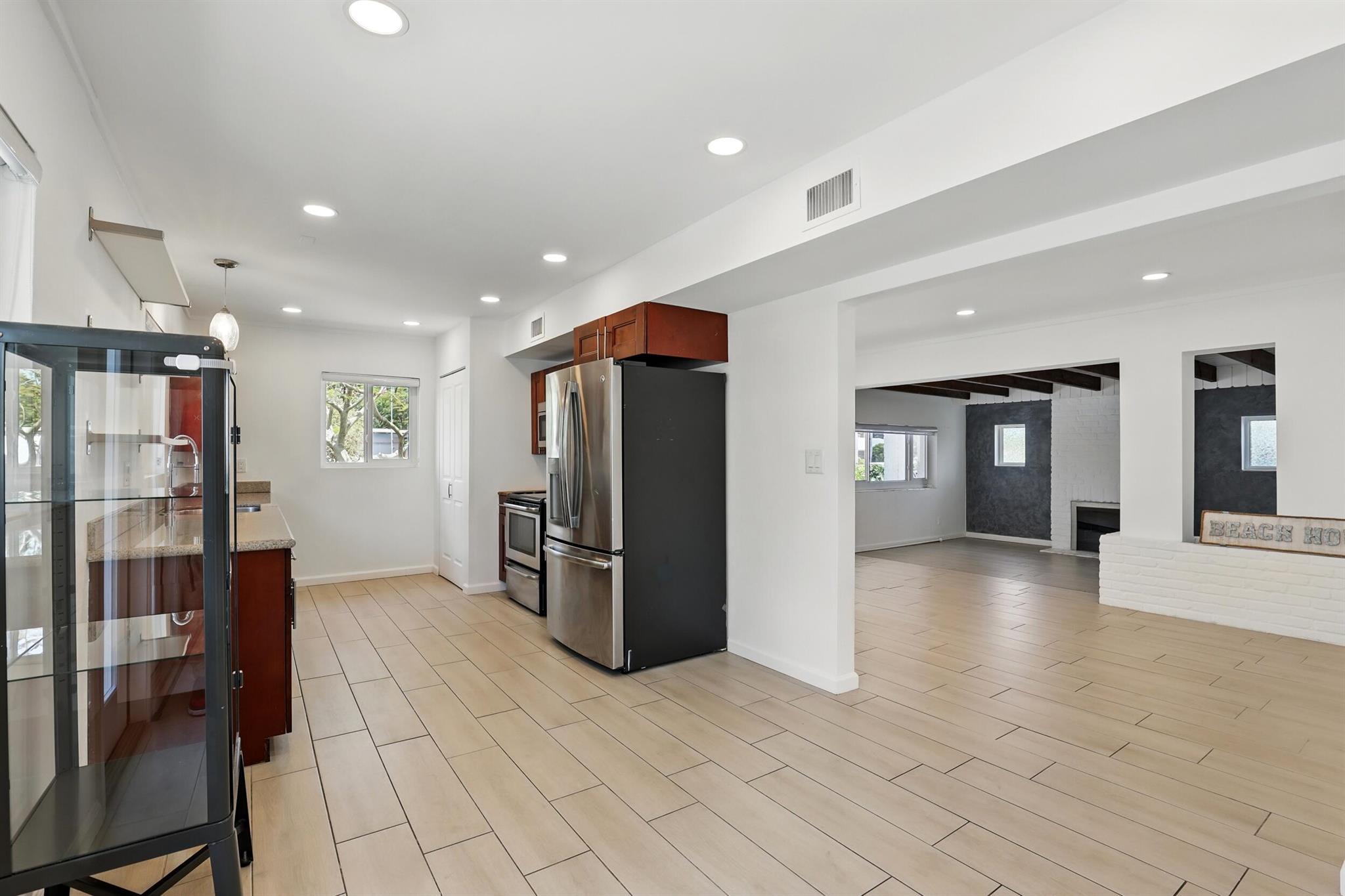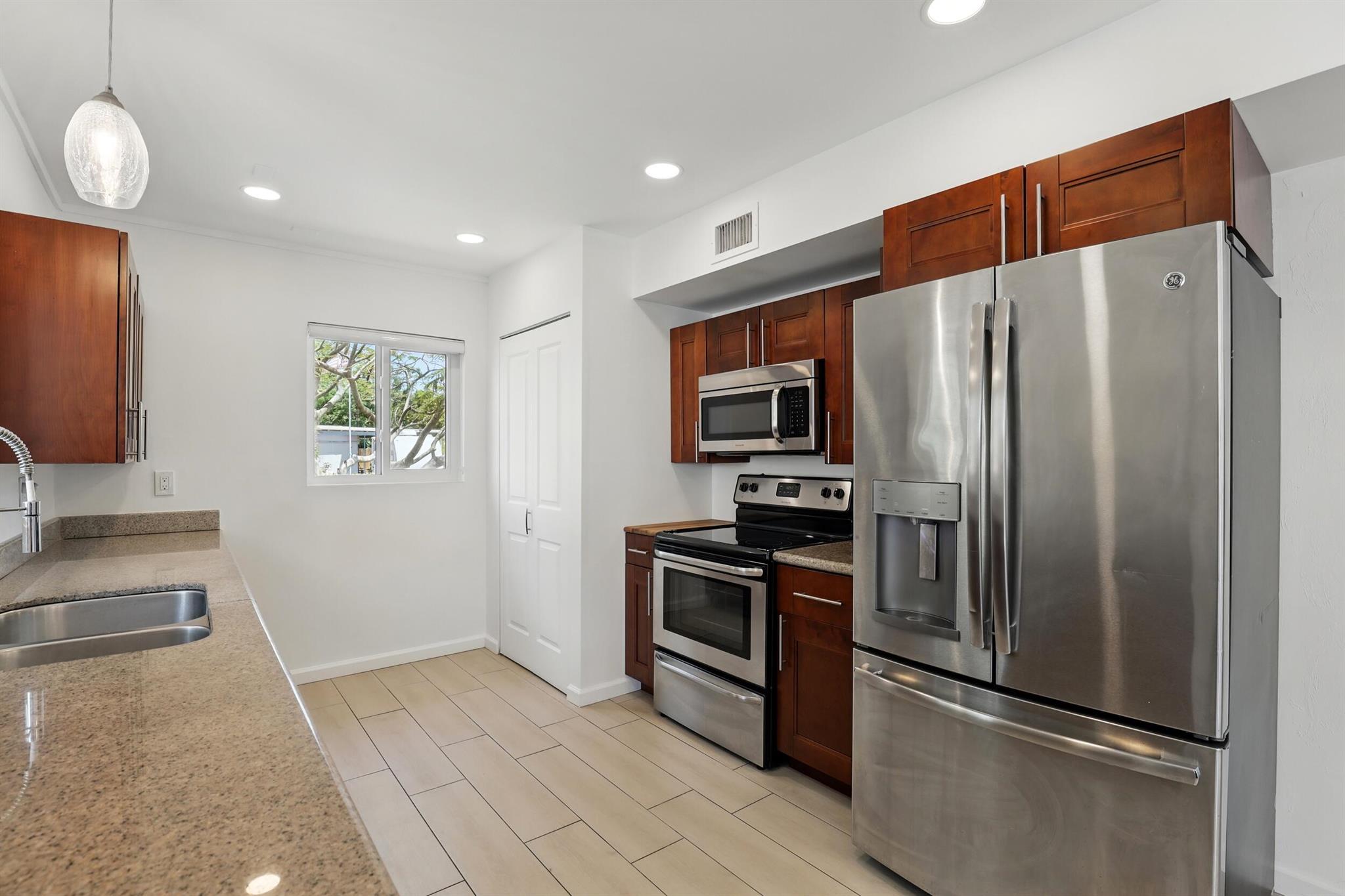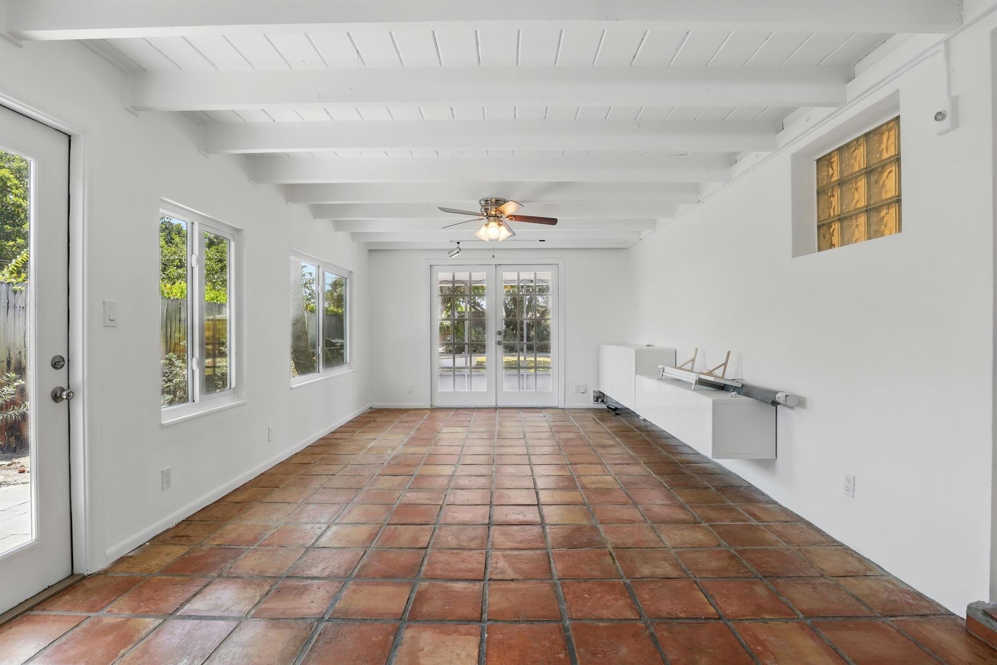 Charming fully updated 3BR CBS home on a quiet Lake Worth Beach cul-de-sac. Built in 1954, this well-maintained property blends classic character with modern upgrades. A custom designer impact front door opens to a bright, open layout with updated flooring, lighting, and a cozy living room featuring a real wood-burning fireplace. The eat-in kitchen offers granite countertops, stainless steel appliances, and a tankless water heater for added efficiency. Enjoy the spacious 12×22 family room, enlarged primary closet, and a beautifully renovated bathroom. Impact windows throughout for safety and energy savings. Outside, a large covered patio overlooks a huge fenced backyard with plenty of room to add a pool, garden, or play football with your dog. New shed, upgraded sprinkler system.