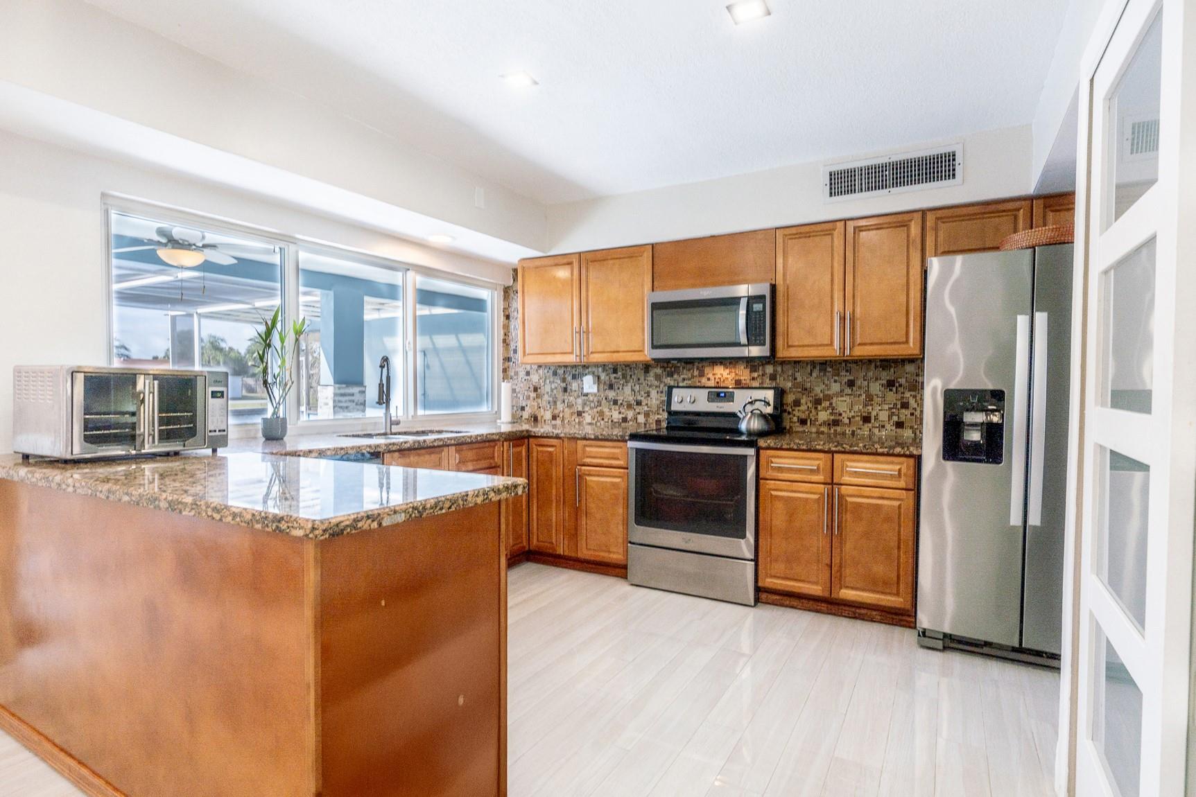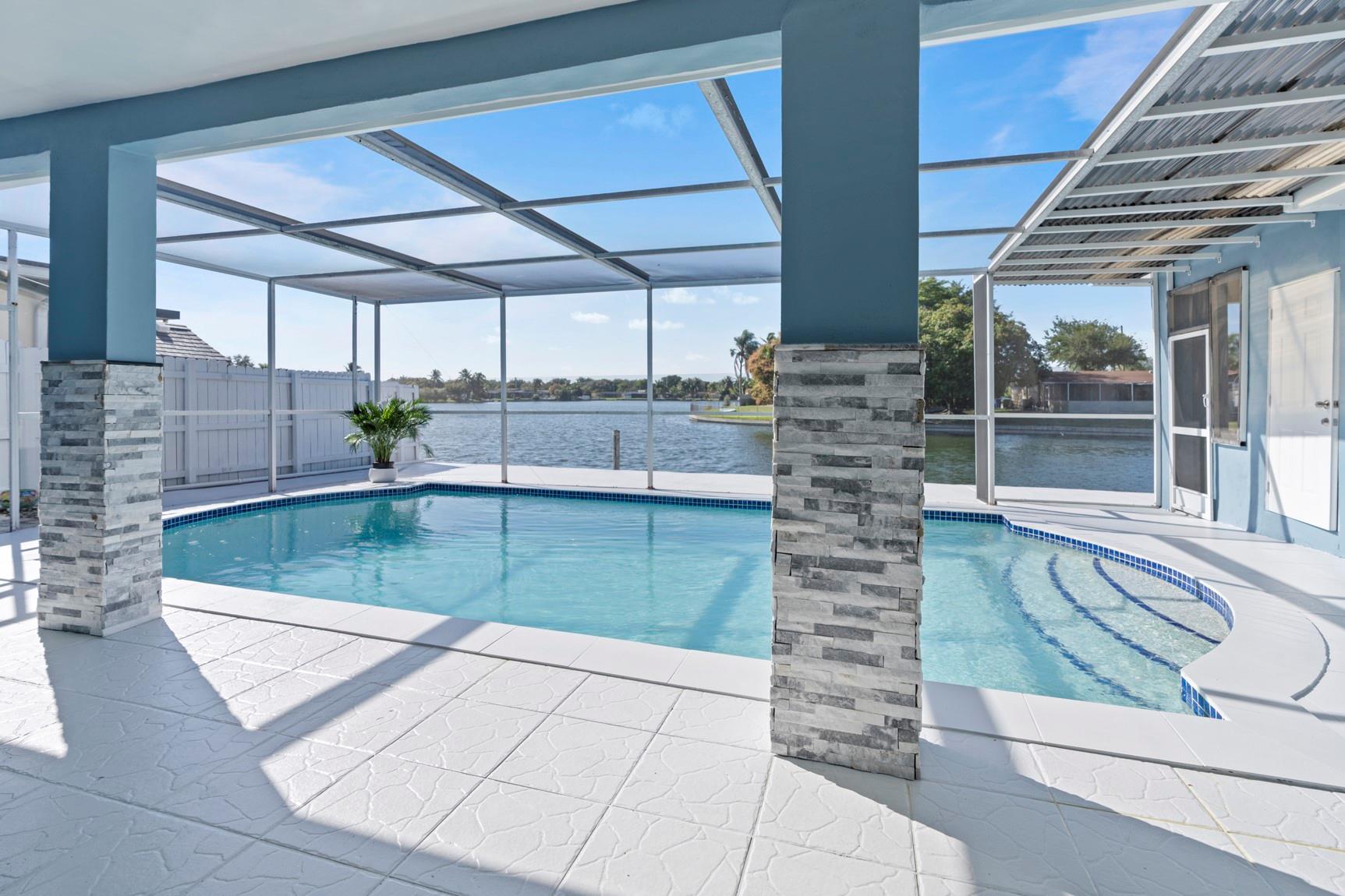 Stunning Waterfront Living! Freshly painted, move-in-ready gem in the coveted Miramar Isles. This elegant residence offers 4 bedrooms and 2 bathrooms. Open-concept layout filled with natural light, featuring a chef’s kitchen with cherry wood cabinets, granite countertops, and stainless steel appliances. Outdoor living is unparalleled with a screened pool area boasting the best lake views in the neighborhood. The outdoor kitchen ready to entertain your guests. Expansive paved driveway. Equipped complete impact windows and doors. Recessed lighting, crown mouldings. Both bathrooms are completely renovated offering double sinks, and the primary ensuite includes a shower. Plumbing and electrical is also updated! Don’t miss this rare opportunity for luxurious waterfront living in Miramar Isles.