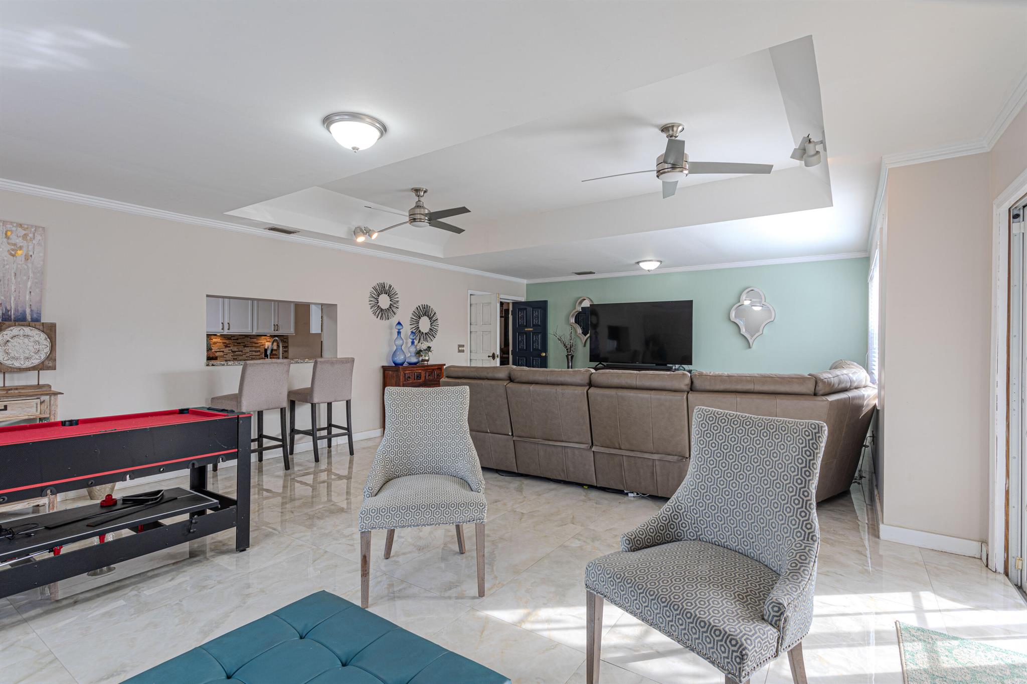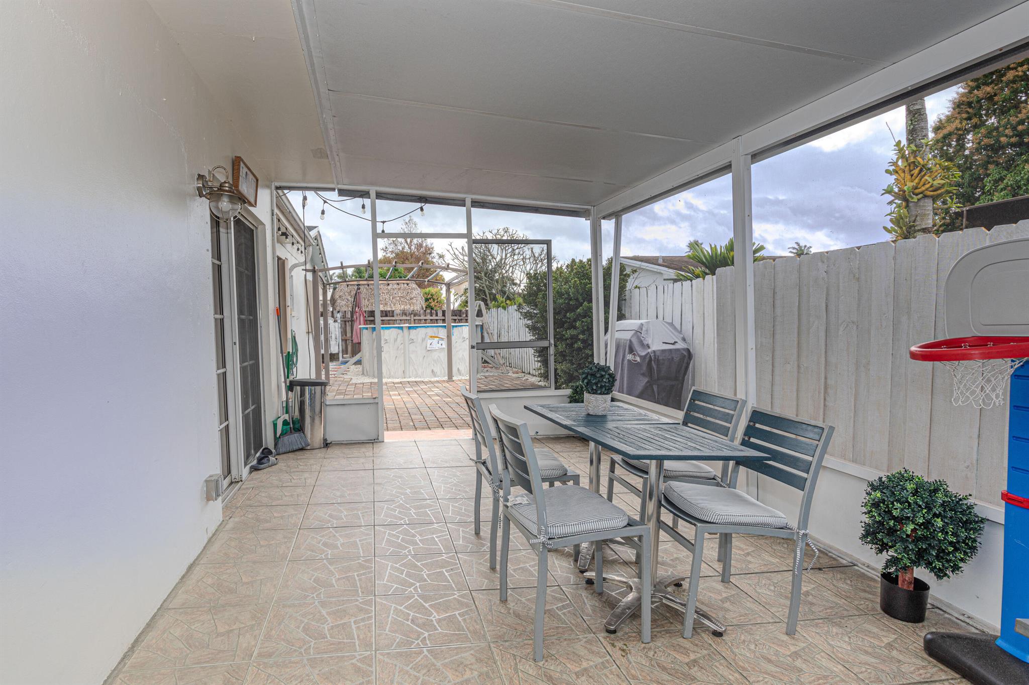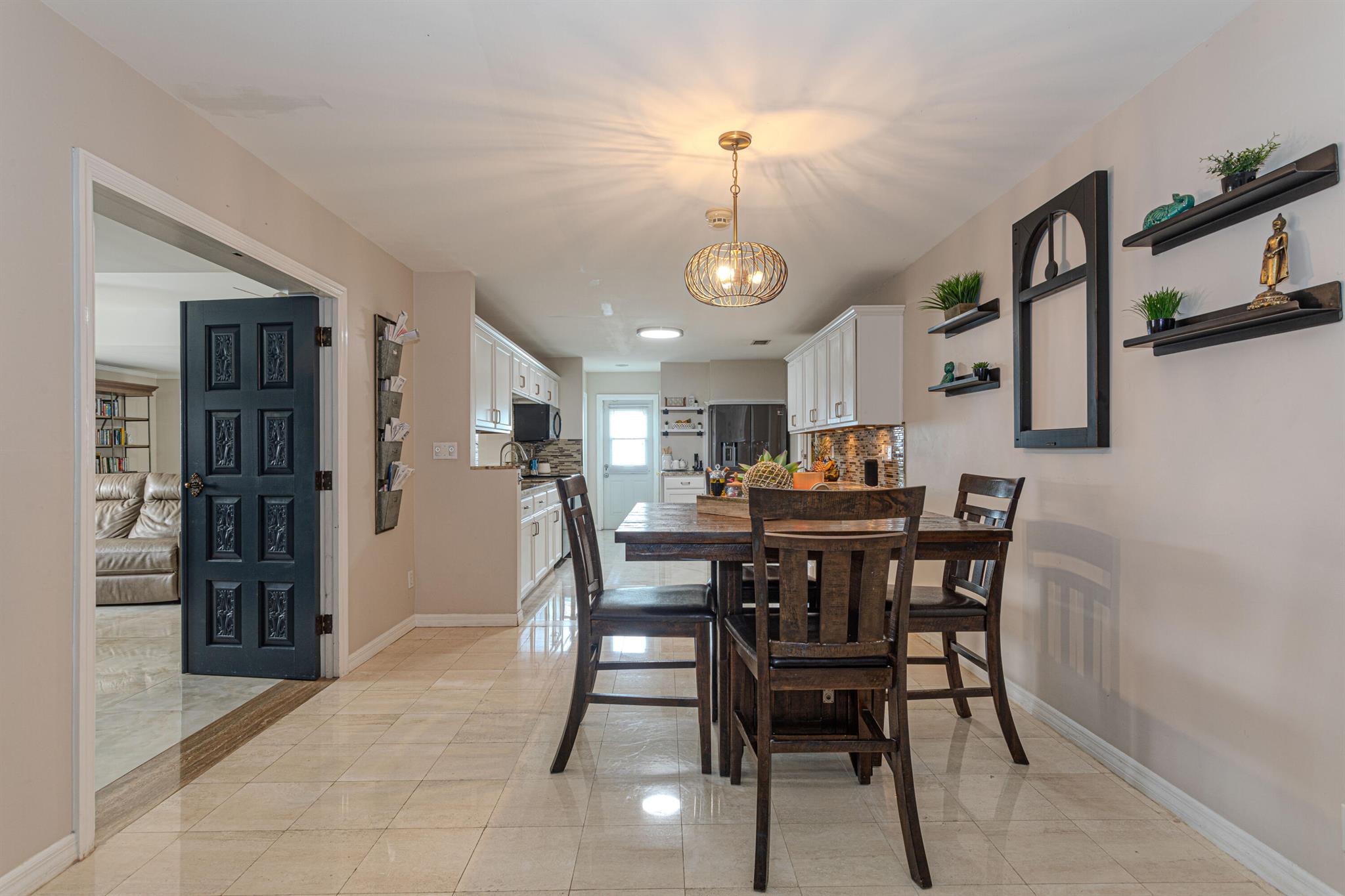 Step into a realm of comfort and sophistication with this stunning 4-bedroom, 2-bathroom pool home, complete with a spacious 2-car garage. Before entering, you’re welcomed by a large open porch, ideal for a sitting area, lounging, or relaxing with your favorite book or beverage. Inside, the open, airy layout features a formal dining area, and an inviting living space adorned with elegant marble flooring, creating a luxurious yet welcoming atmosphere.The heart of the home is the expansive kitchen, designed for culinary inspiration. Pristine stainless-steel appliances, granite countertops, decorative under-cabinet lighting, and refinished cabinetry combine for a sleek and modern aesthetic. Flow effortlessly into the oversized family room–an entertainer’s dream!