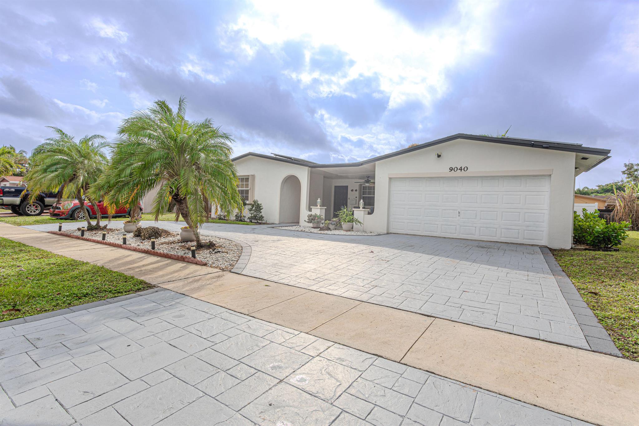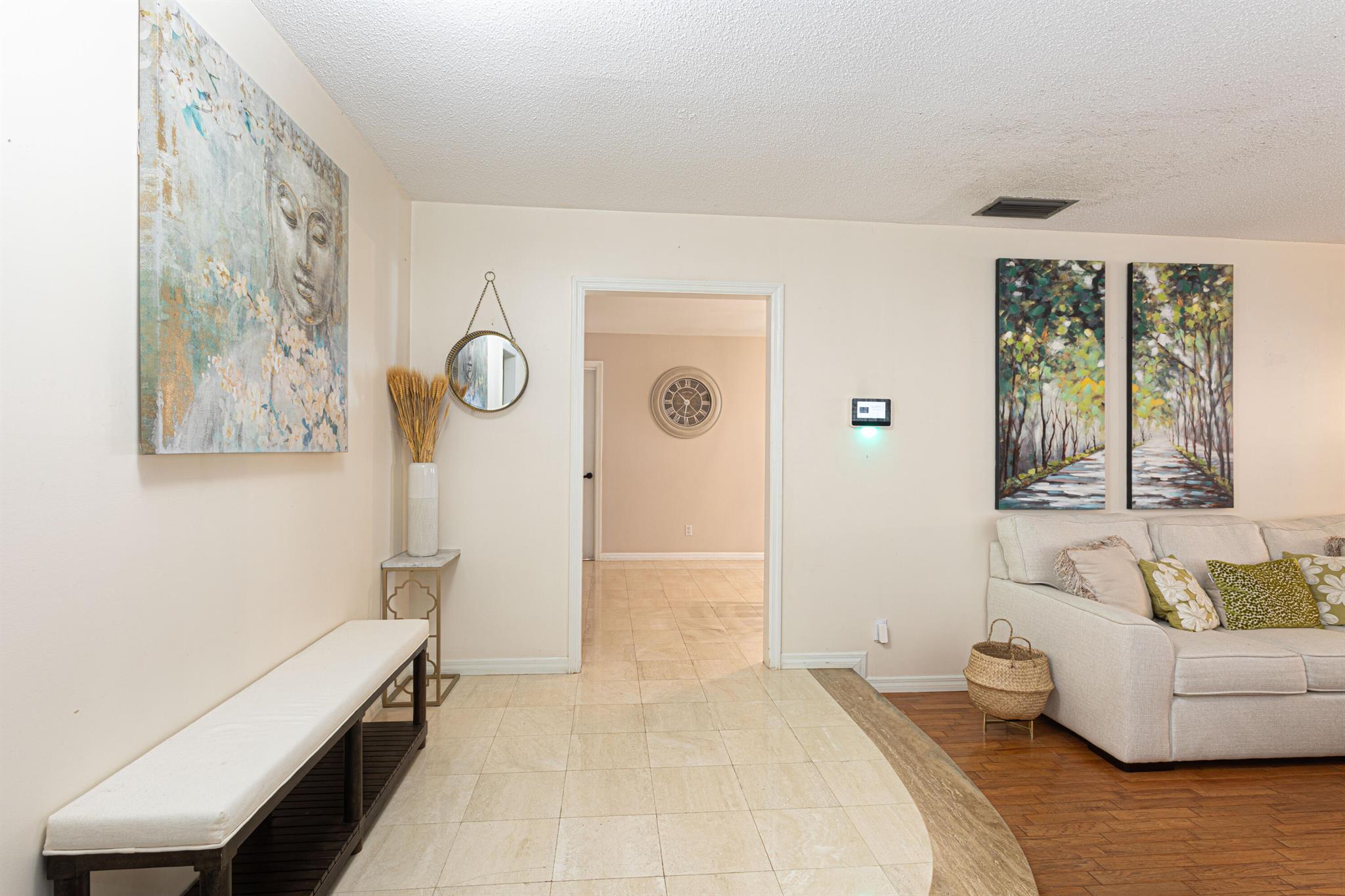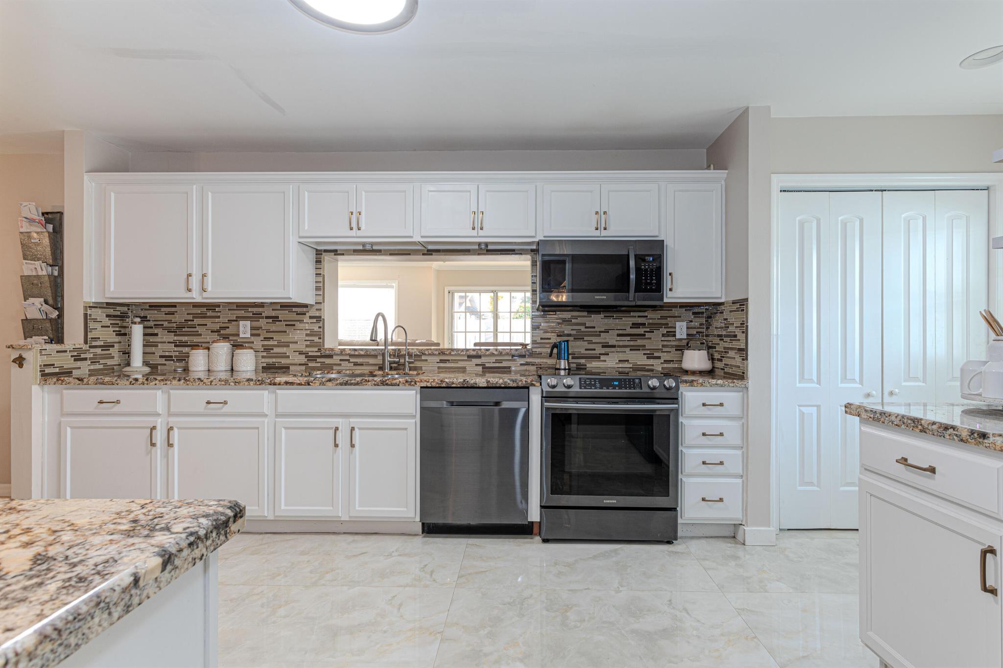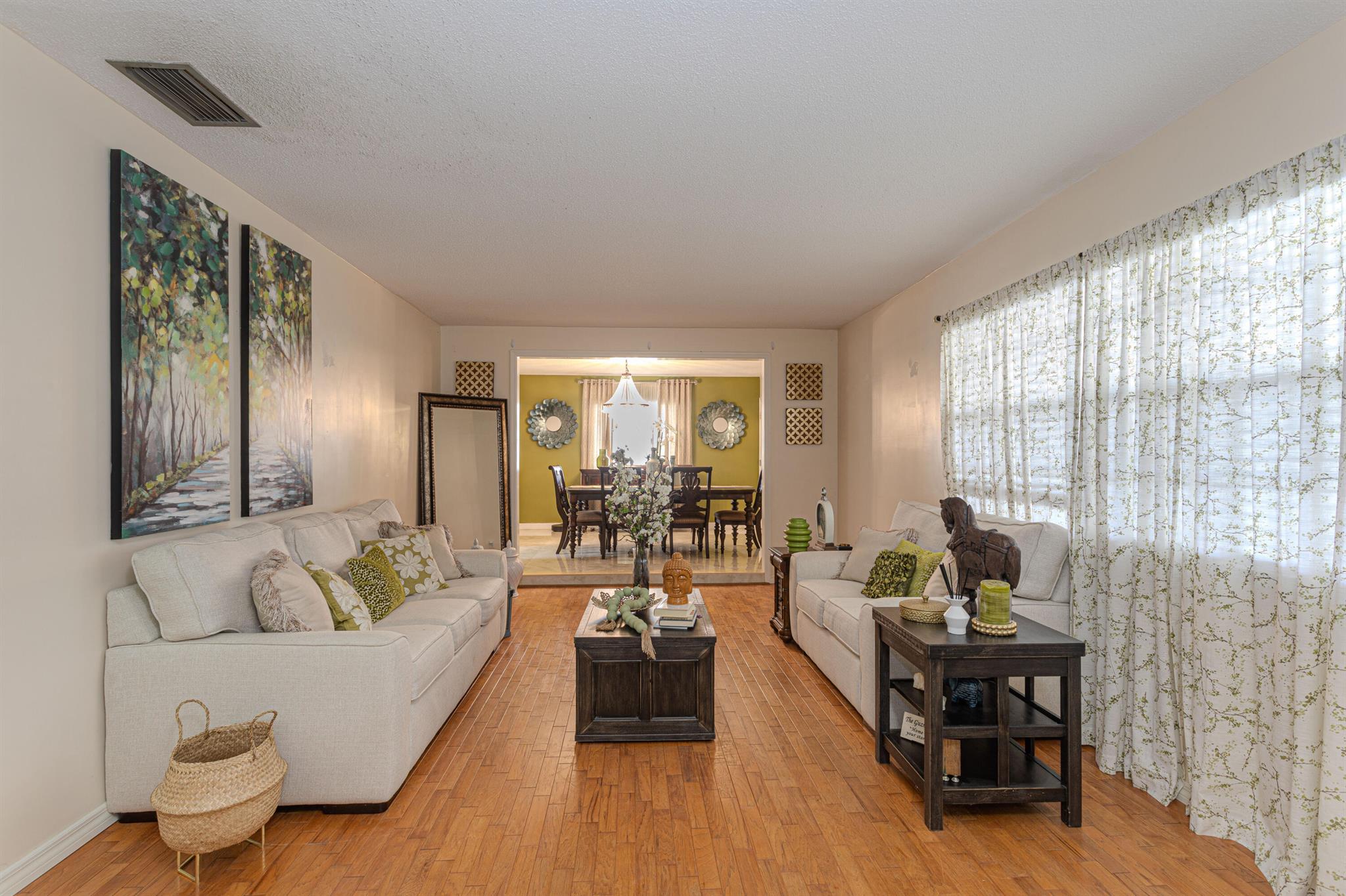 Step into a realm of comfort and sophistication with this stunning 4-bedroom, 2-bathroom pool home, complete with a spacious 2-car garage. Before entering, you’re welcomed by a large open porch, ideal for a sitting area, lounging, or relaxing with your favorite book or beverage. Inside, the open, airy layout features a formal dining area, and an inviting living space adorned with elegant marble flooring, creating a luxurious yet welcoming atmosphere.The heart of the home is the expansive kitchen, designed for culinary inspiration. Pristine stainless-steel appliances, granite countertops, decorative under-cabinet lighting, and refinished cabinetry combine for a sleek and modern aesthetic. Flow effortlessly into the oversized family room–an entertainer’s dream!
