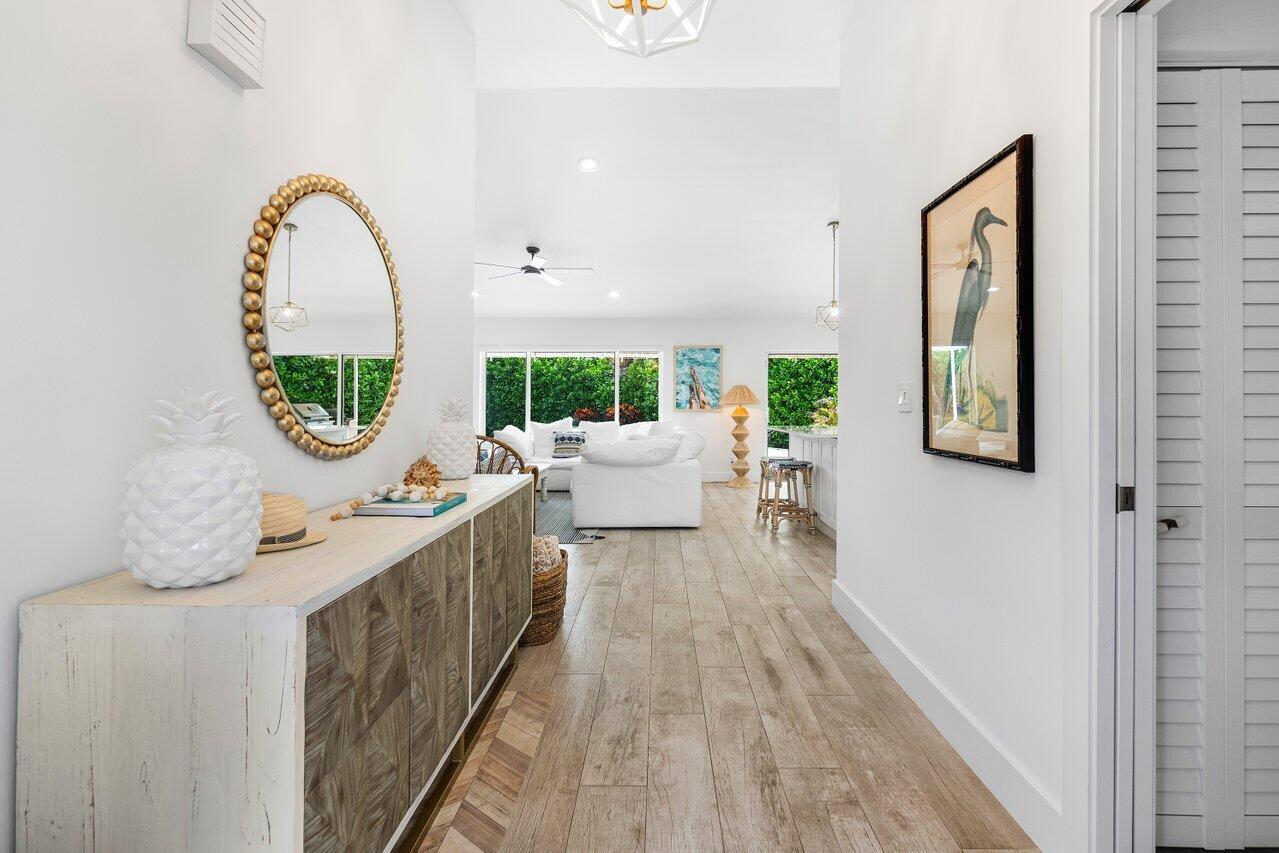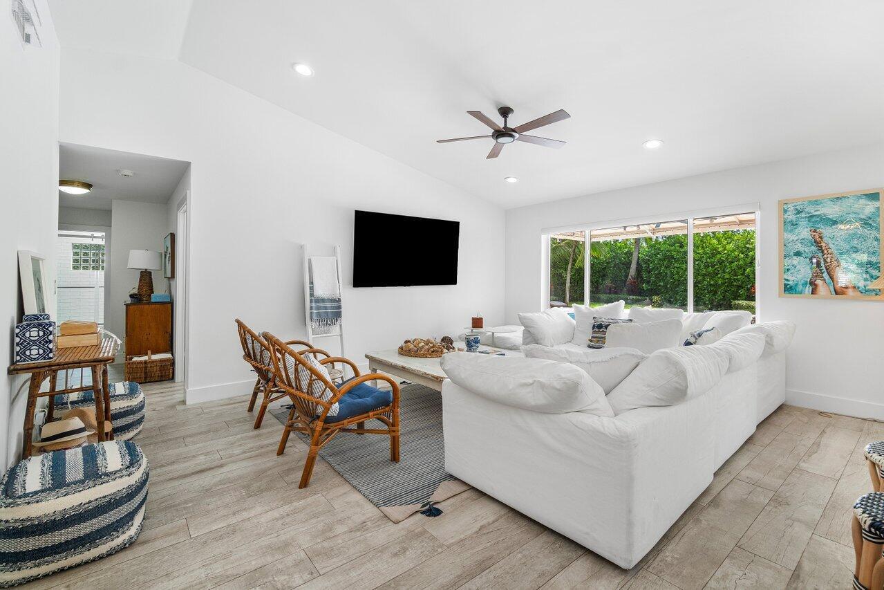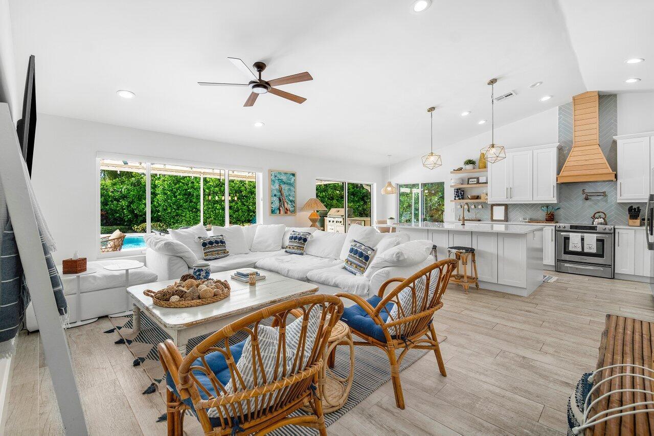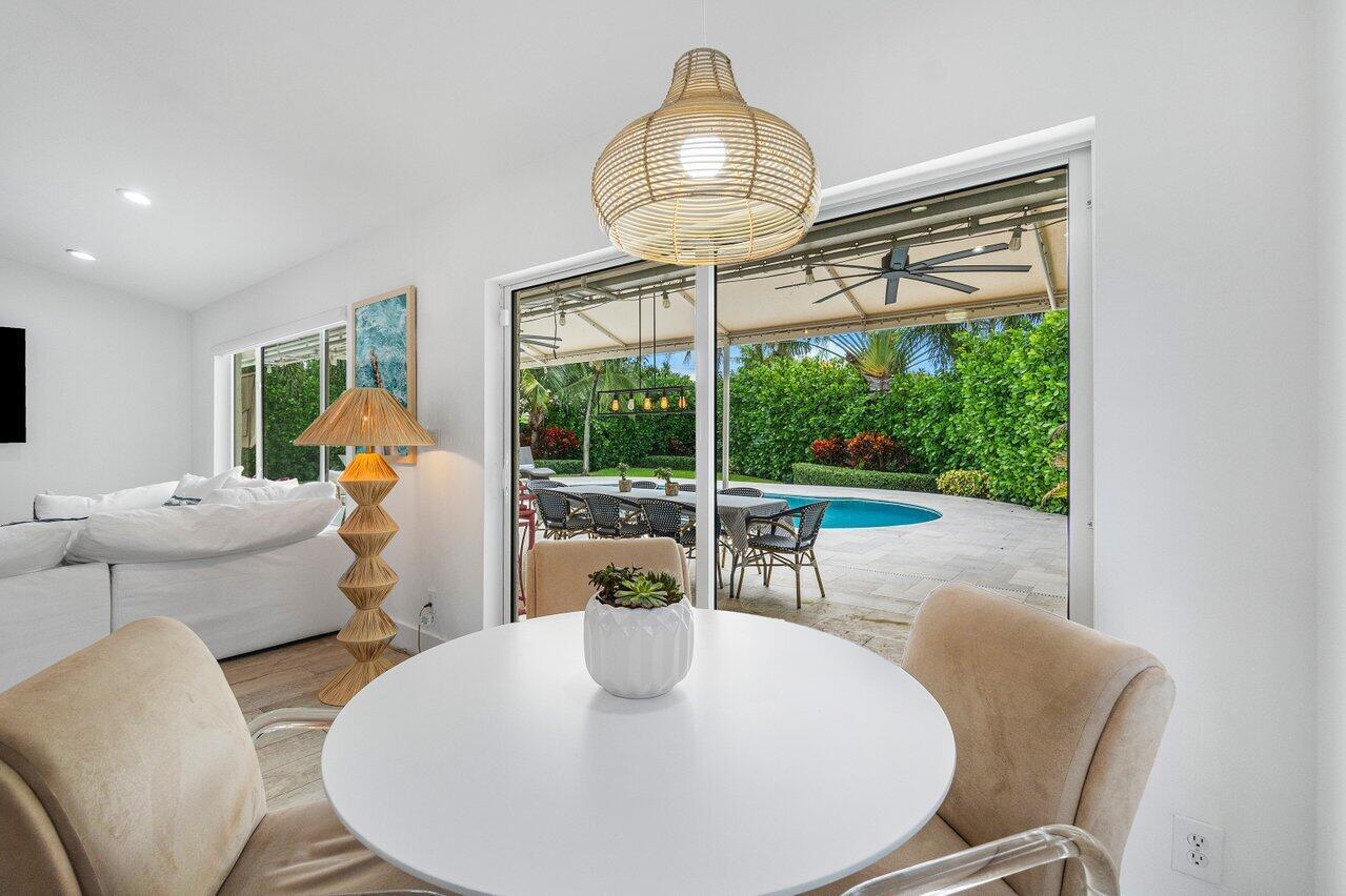 Welcome to your coastal retreat at 415 Enfield Rd.! Replete with swaying palms, pineapple motifs & endless pool days, this 4 bed, 2.1 ba home is the perfect blend of sunshine & style. With a BRAND NEW ROOF (2025), this renovated & freshly painted gem sits on nearly 1/3 acres in sought-after Lake Ida Manor. Vaulted ceilings greet, creating a bright, airy atmosphere that immediately feels welcoming. The cheery gourmet kitchen features a quartz island, wine cooler & cozy breakfast nook, ideal for casual meals or entertaining friends. The living room & primary bedroom seamlessly connect to the backyard, offering tranquil views of your private oasis. Enjoy the vibrant ”Village-by-the-Sea,” with Pineapple Grove, Atlantic Avenue & the beach just a short stroll, bike ride or golf cart ride away.