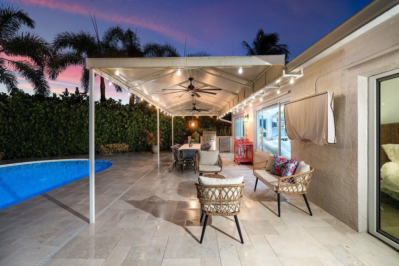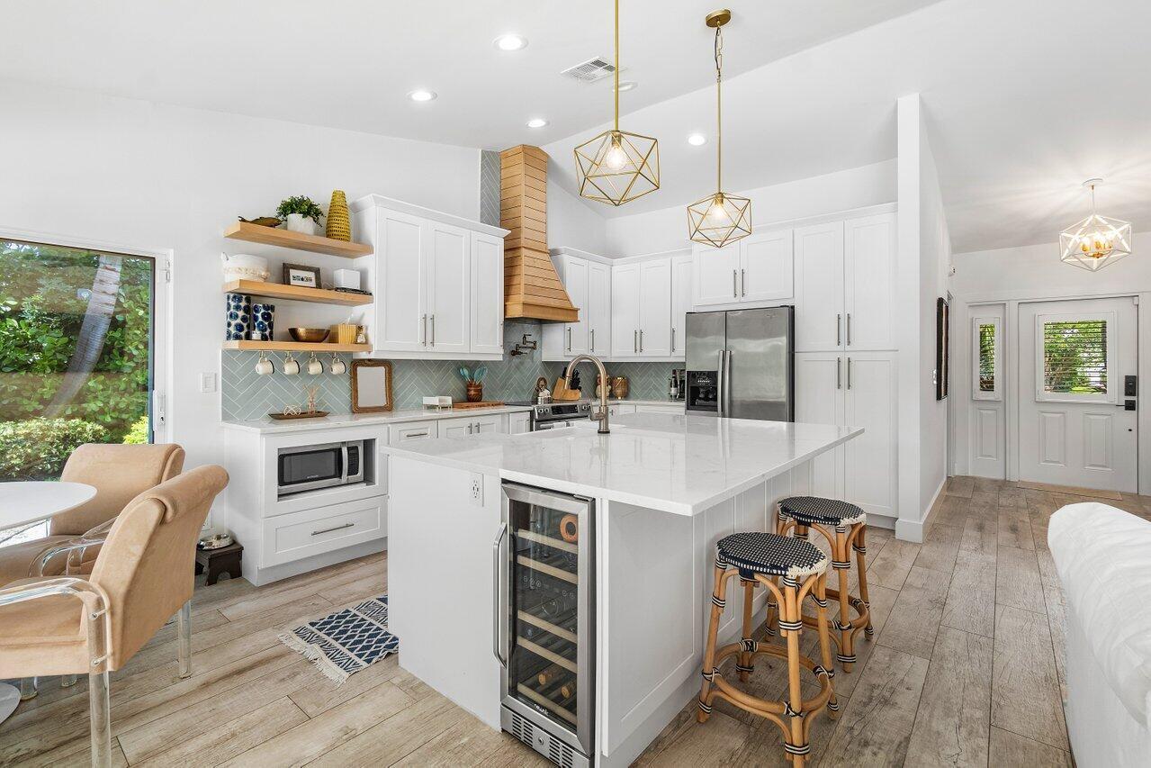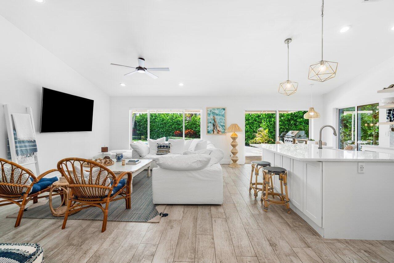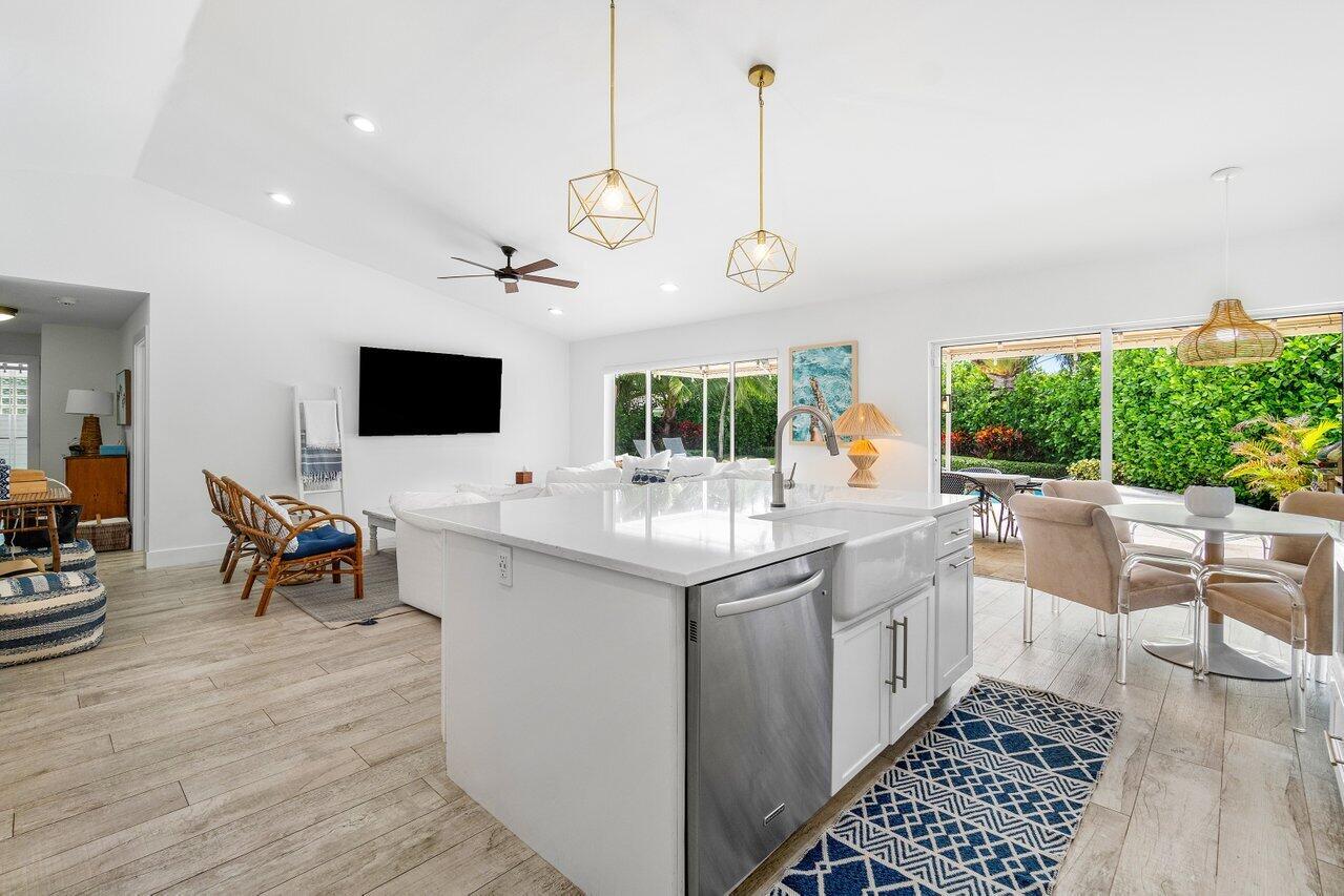 Welcome to your coastal retreat at 415 Enfield Rd.! Replete with swaying palms, pineapple motifs & endless pool days, this 4 bed, 2.1 ba home is the perfect blend of sunshine & style. With a BRAND NEW ROOF (2025), this renovated & freshly painted gem sits on nearly 1/3 acres in sought-after Lake Ida Manor. Vaulted ceilings greet, creating a bright, airy atmosphere that immediately feels welcoming. The cheery gourmet kitchen features a quartz island, wine cooler & cozy breakfast nook, ideal for casual meals or entertaining friends. The living room & primary bedroom seamlessly connect to the backyard, offering tranquil views of your private oasis. Enjoy the vibrant ”Village-by-the-Sea,” with Pineapple Grove, Atlantic Avenue & the beach just a short stroll, bike ride or golf cart ride away.