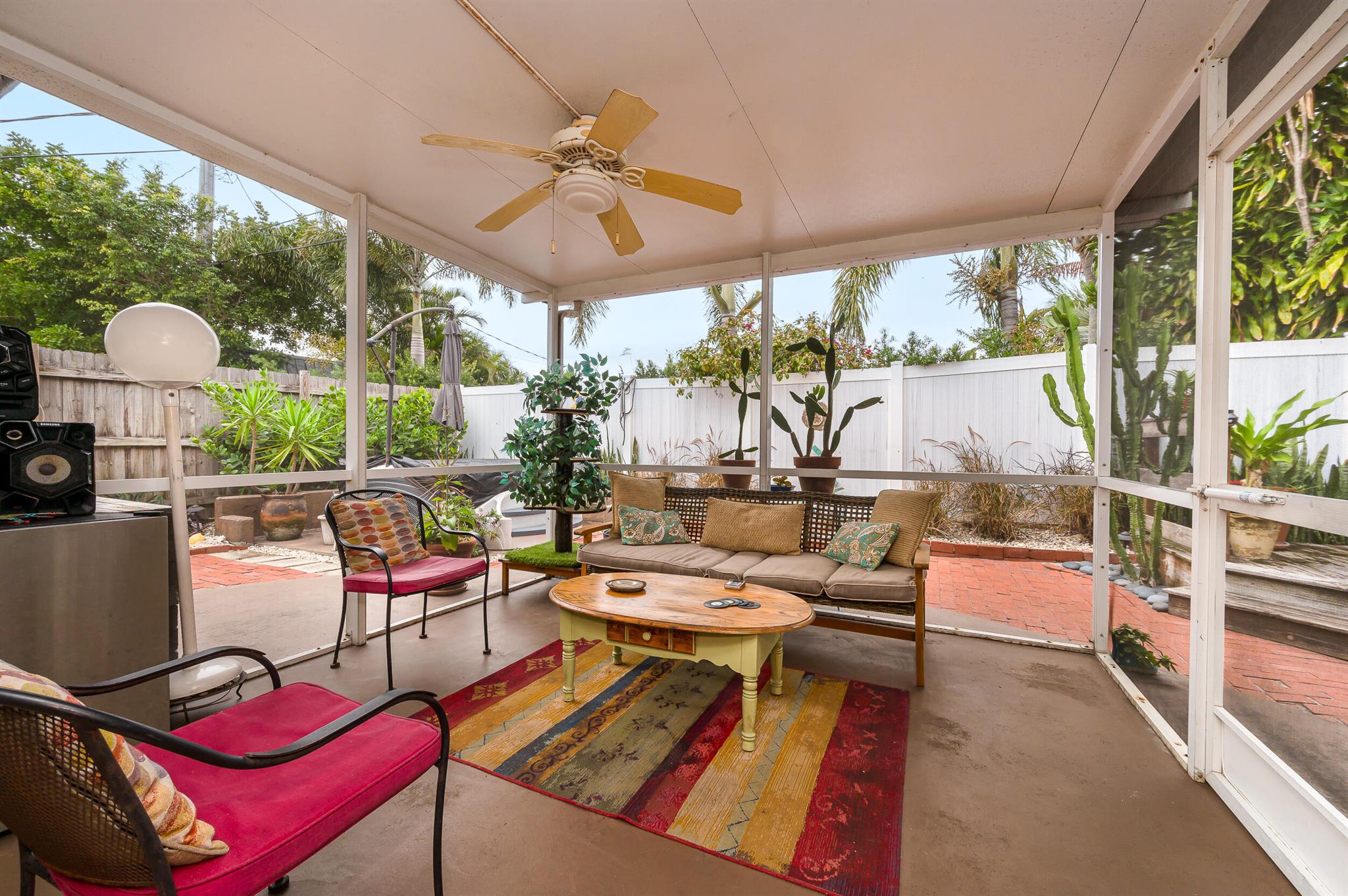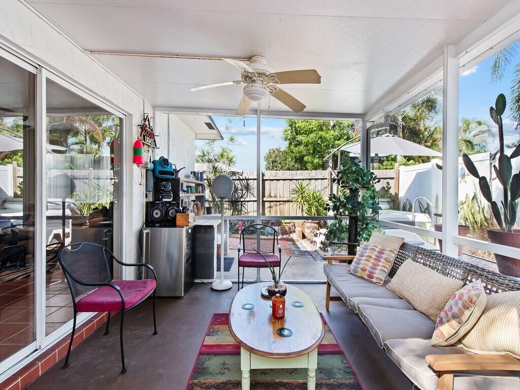 Prime Location! Short Walk to the Beach Seize the chance to own this impeccably maintained 2-bedroom, 2-bathroom residence featuring a split bedroom layout and an open-concept living space with a formal dining area. Modern Kitchen: The kitchen boasts a cozy breakfast nook, Flexible Space: The garage has been transformed into a bonus room, offering flexibility but can also be reverted. The master suite provides ample space, a vast walk-in closet, a large vanity, in the new remodel bath. The exterior highlights include an inviting screened porch and a private fenced backyard and whirlpool/spa, and newer the a/cMOTIVATED SELLER