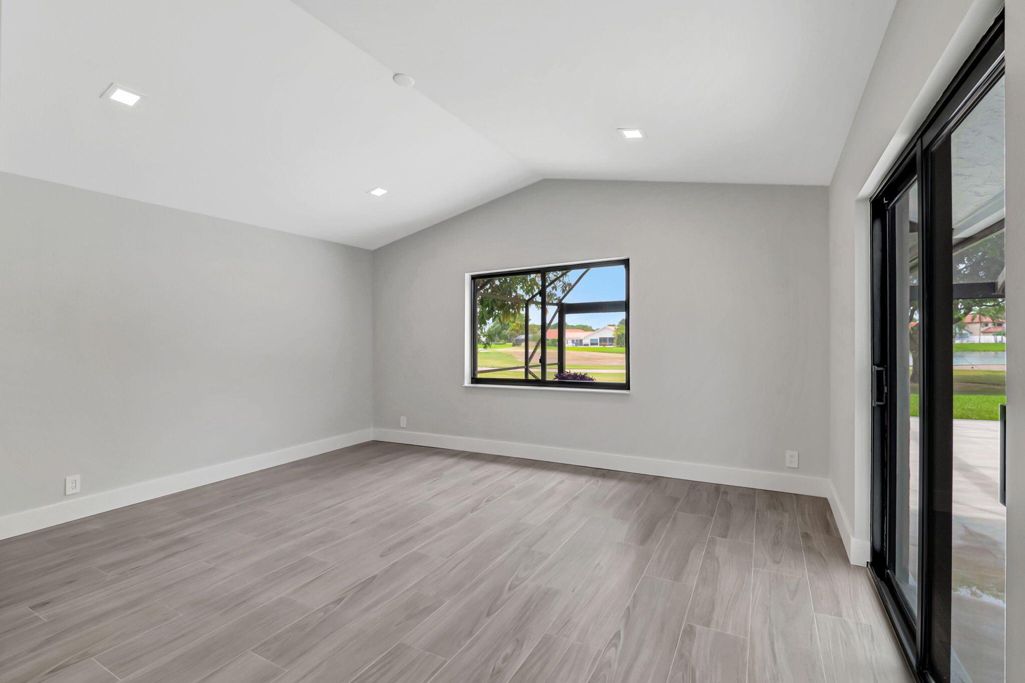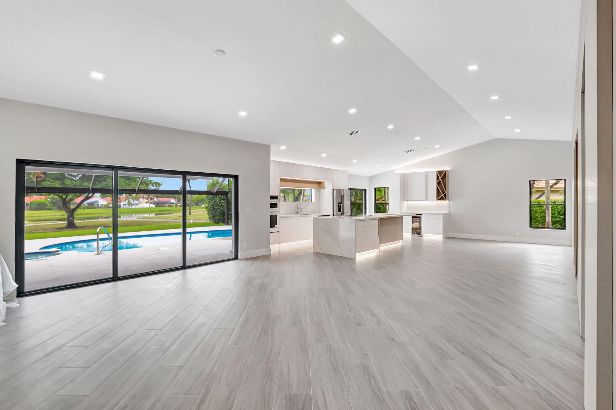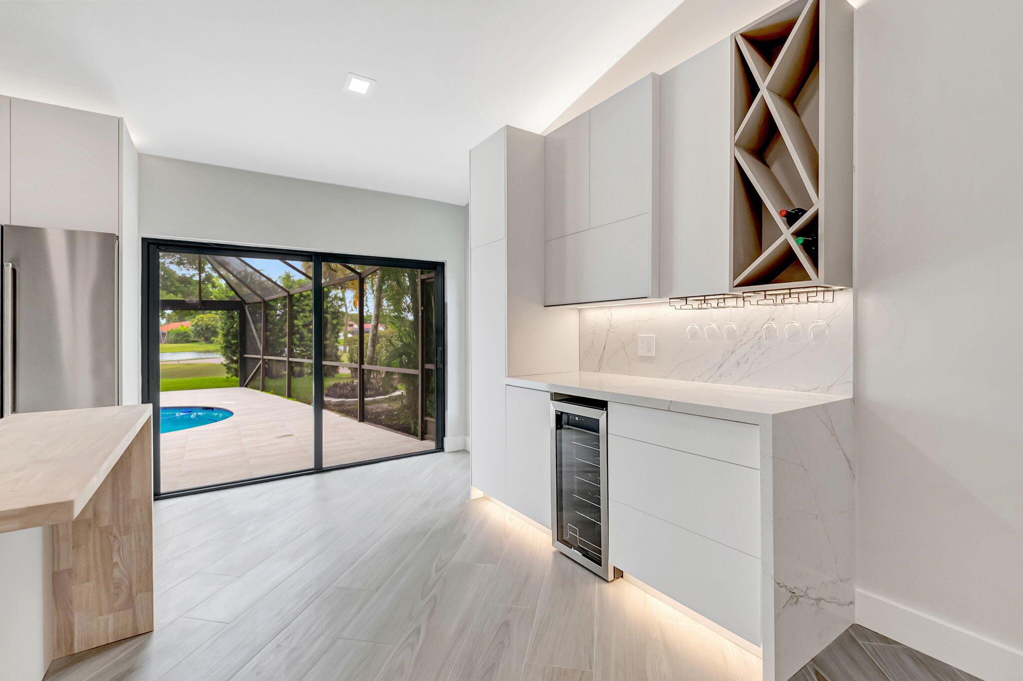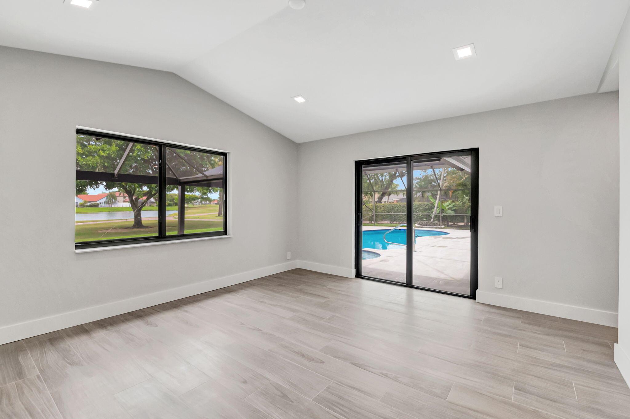 Move right into a FULLY renovated 4 bedroom 3 bath + office pool home in Boca Woods Country Club. Split bedroom plan for privacy with an open floor plan for easy entertaining. Lake and golf views. You will find quality craftsmanship and attention to detail. A gourmet kitchen, quartz counters and porcelain floors thru-out, new bathrooms, custom closets, impact windows and doors. Outdoor features include a panorama screen enclosure, new tile and diamond-brite pool and spa, new porcelain pool deck. Mandatory membership $120,000. Boca Woods C.C. offers 2 championship golf courses, and practice facilities, pickleball, tennis, fitness center, spa, game room, casual and fine dining, internet, manned gate and more.