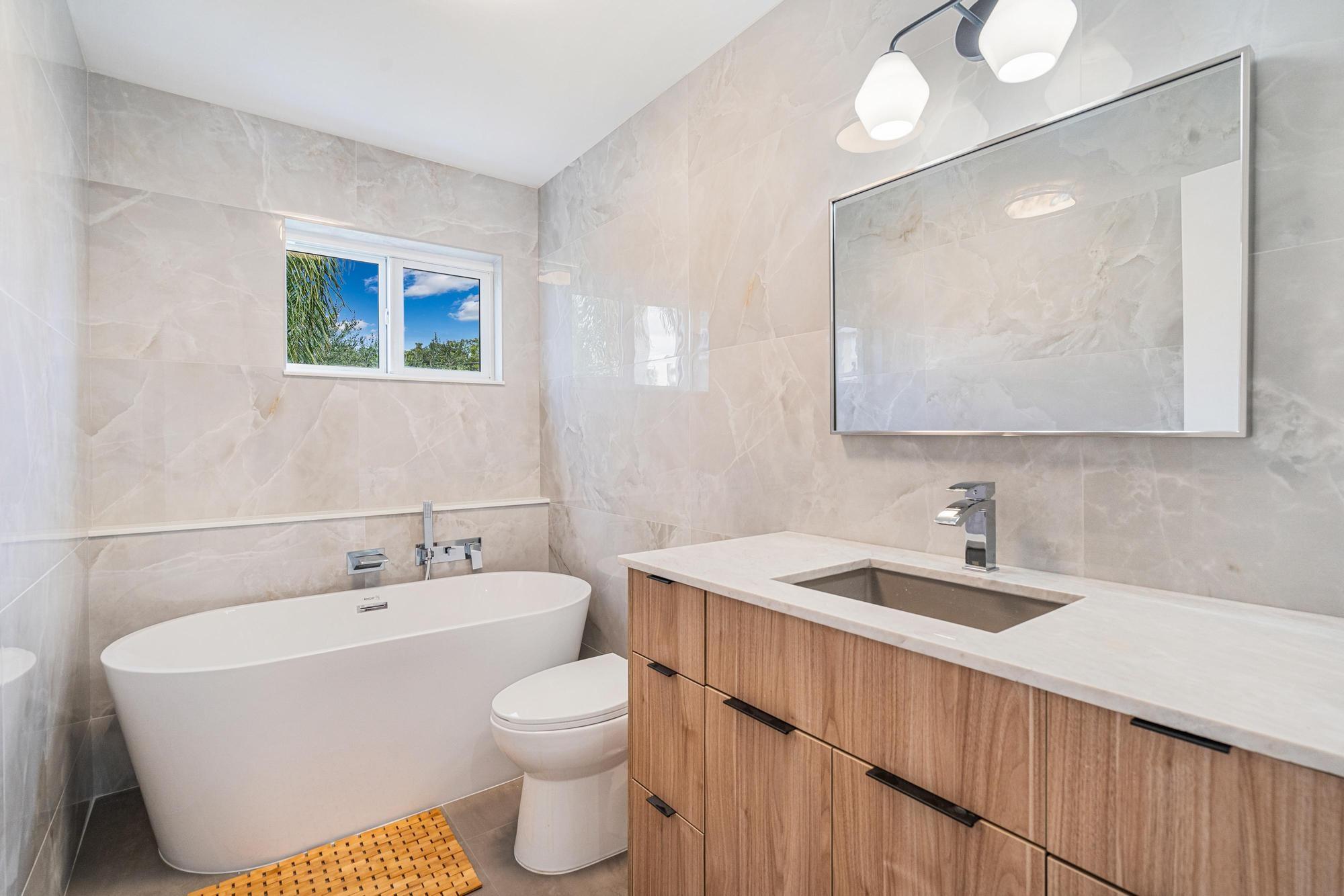 Spectacular home in a quiet neighborhood. This home has been completely renovated with high end materials. Solid doors, and large ceramic tiles. The kitchen has been meticulously redone with the highest quality appliances and cabinets. Every inch of this home has been meticulously done. The home features brand new roof, impact windows all around and new AC. Few homes come with a large back yard, great for entertaining guests or kids to play, The home is turn key and ready for occupancy. Enjoy the quiet neighborhood, step into your back yard and enjoy beautiful sunsets. The home is close to shopping and beaches.
