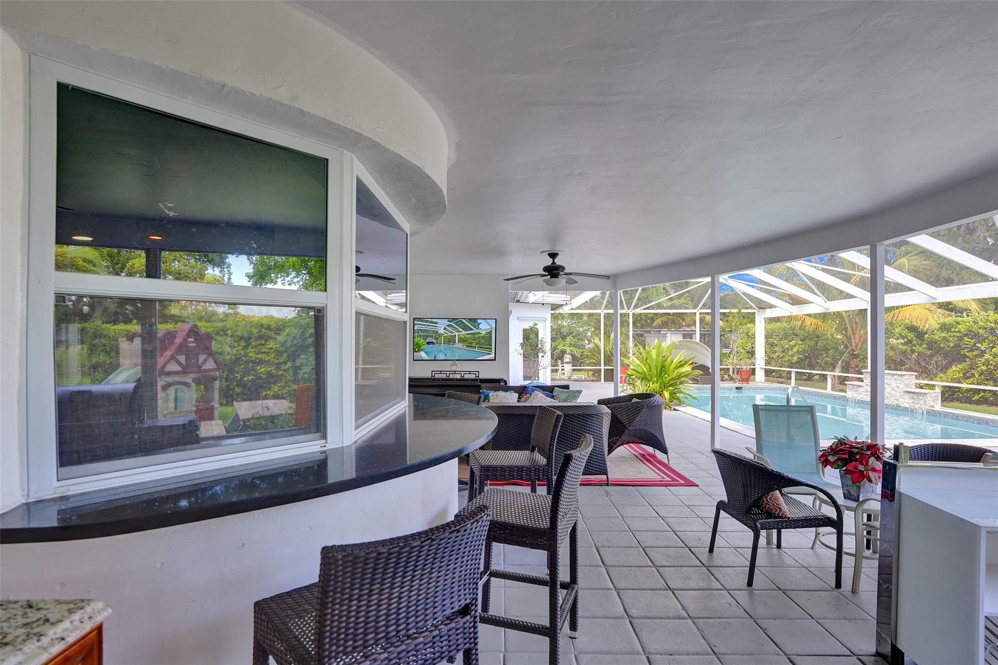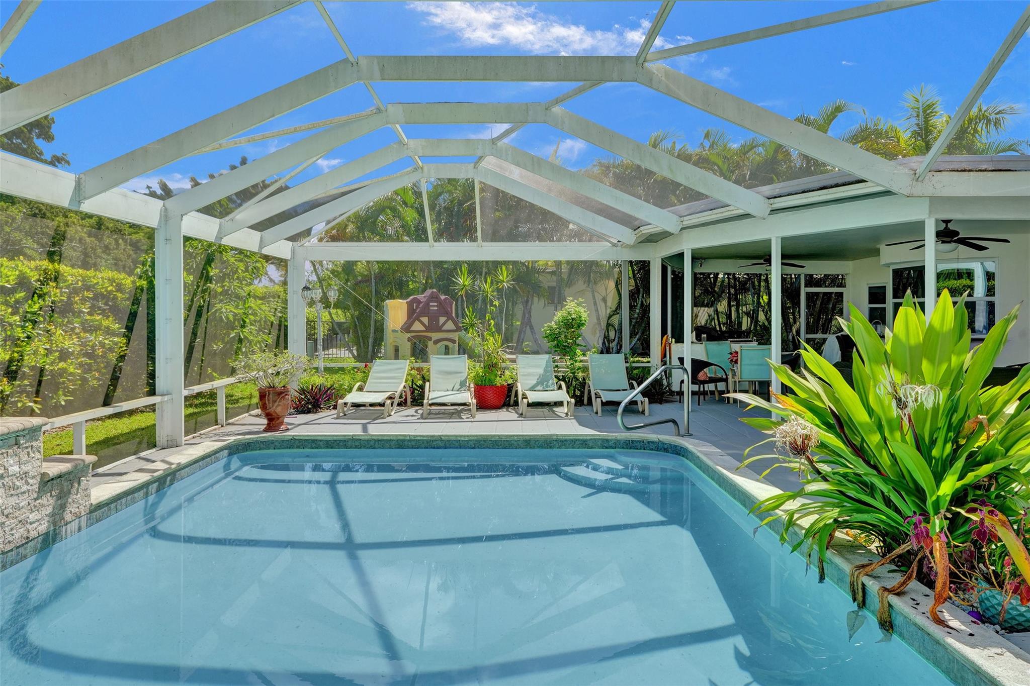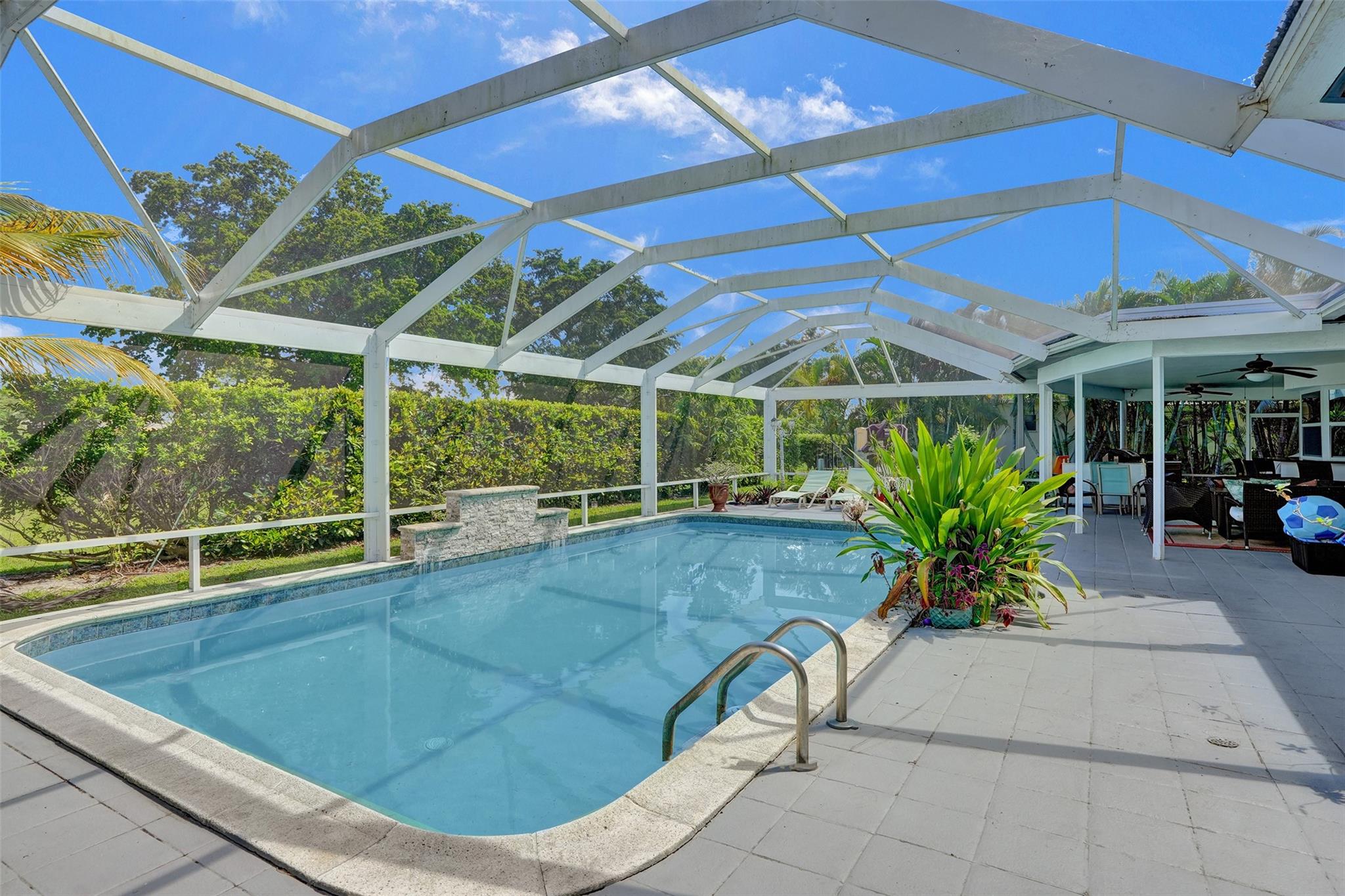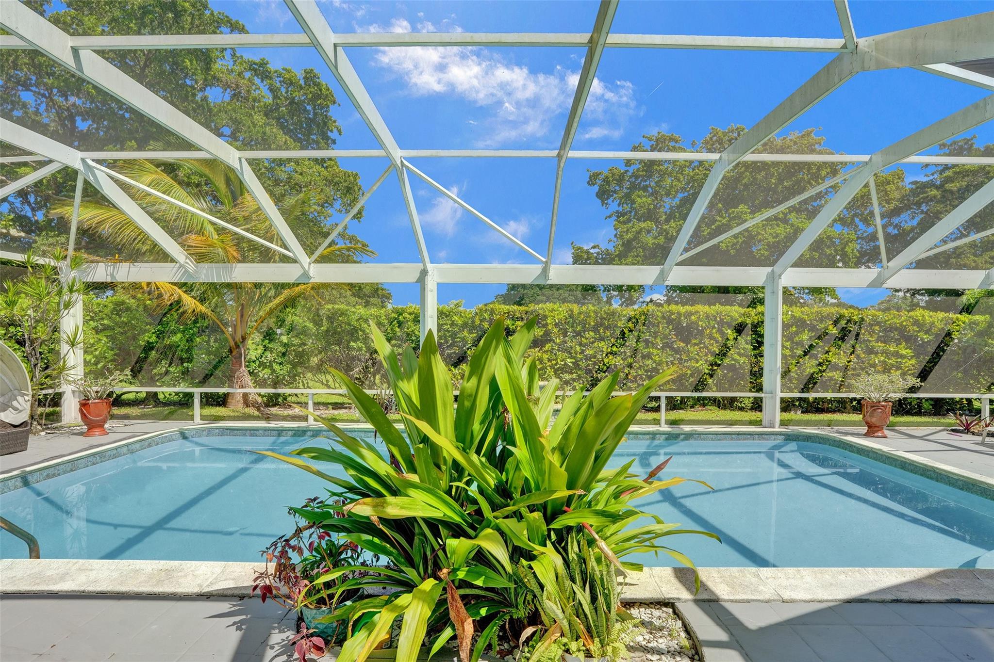 This stunning 4-bedroom, 3-bath home features a new roof installed in 2021 and newer flooring throughout. The beautiful master suite overlooks the pool and includes a large custom-built walk-in closet. The kitchen boasts an eat-in island and a pass-through bar to the pool area. The living and dining areas offer beautiful views of the pool and plenty of natural light. The interior has been freshly painted and is complemented by mature, lush landscaping.