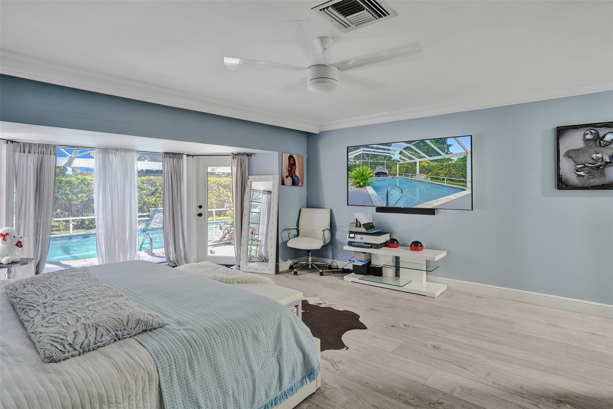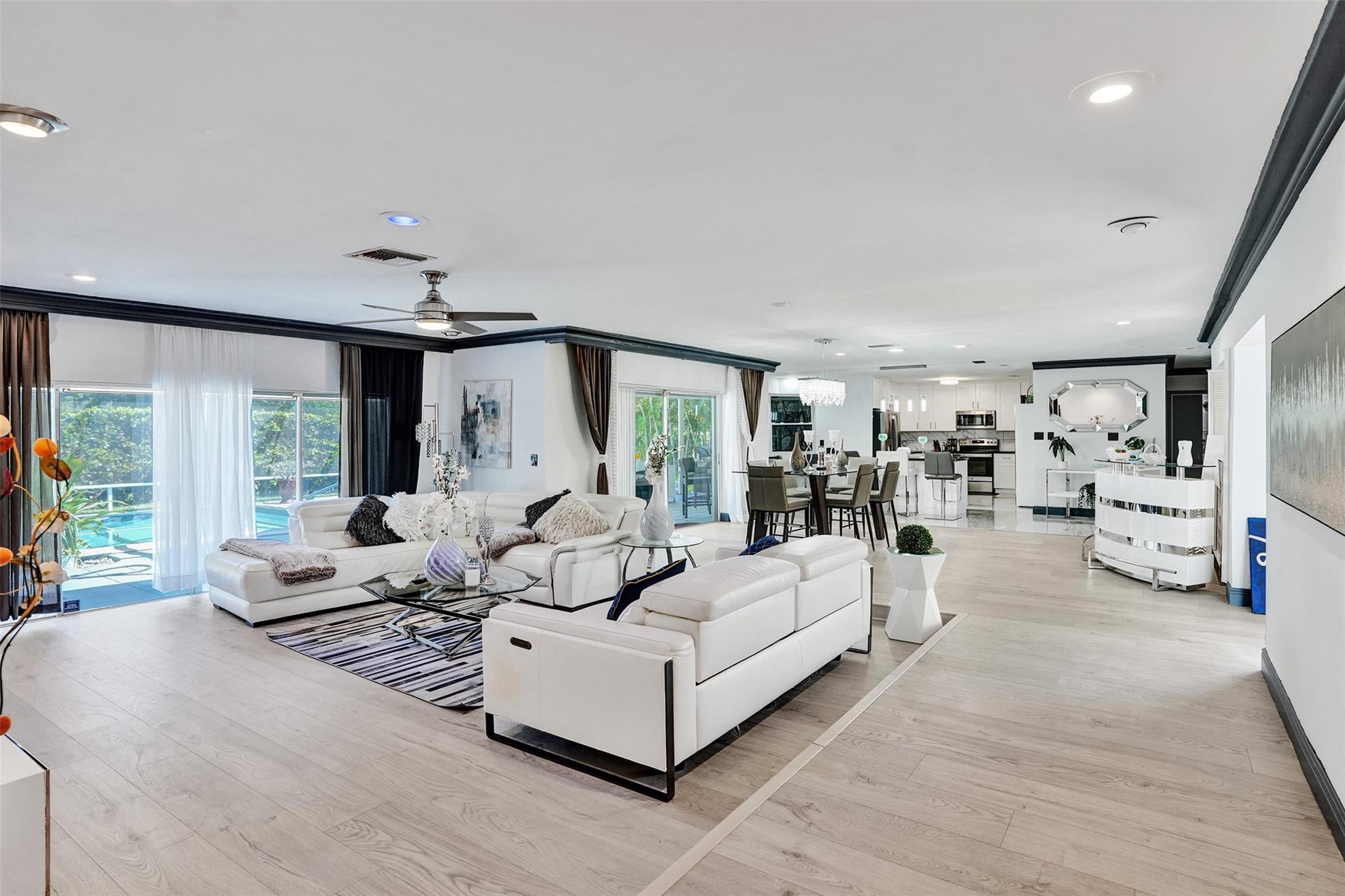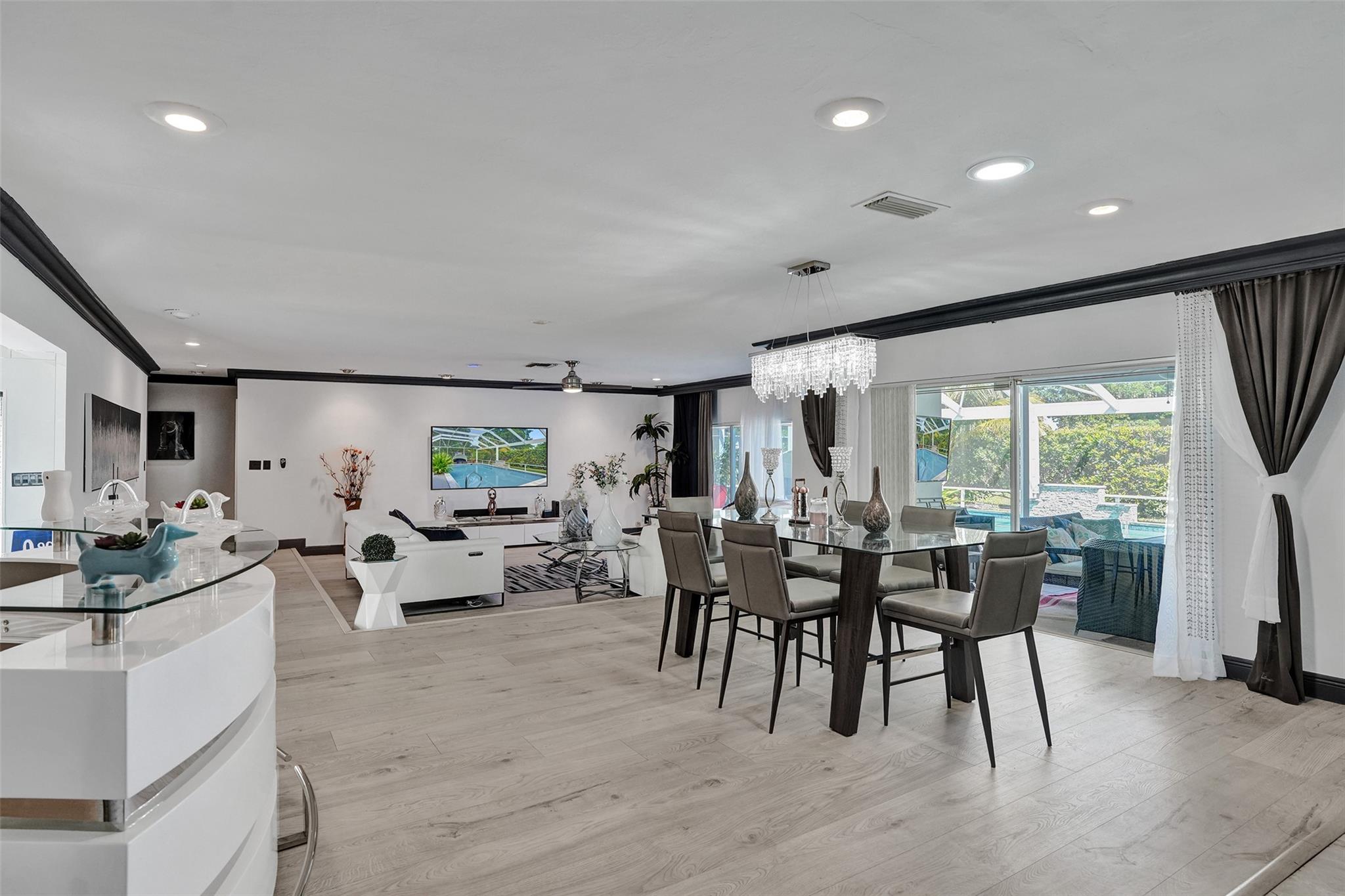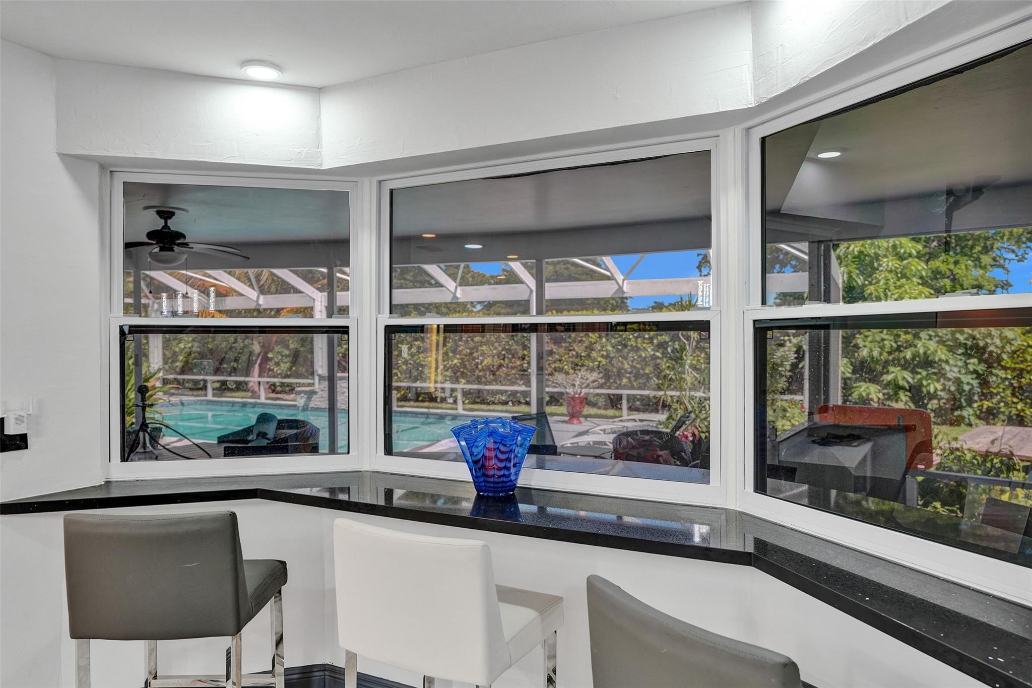 This stunning 4-bedroom, 3-bath home features a new roof installed in 2021 and newer flooring throughout. The beautiful master suite overlooks the pool and includes a large custom-built walk-in closet. The kitchen boasts an eat-in island and a pass-through bar to the pool area. The living and dining areas offer beautiful views of the pool and plenty of natural light. The interior has been freshly painted and is complemented by mature, lush landscaping.