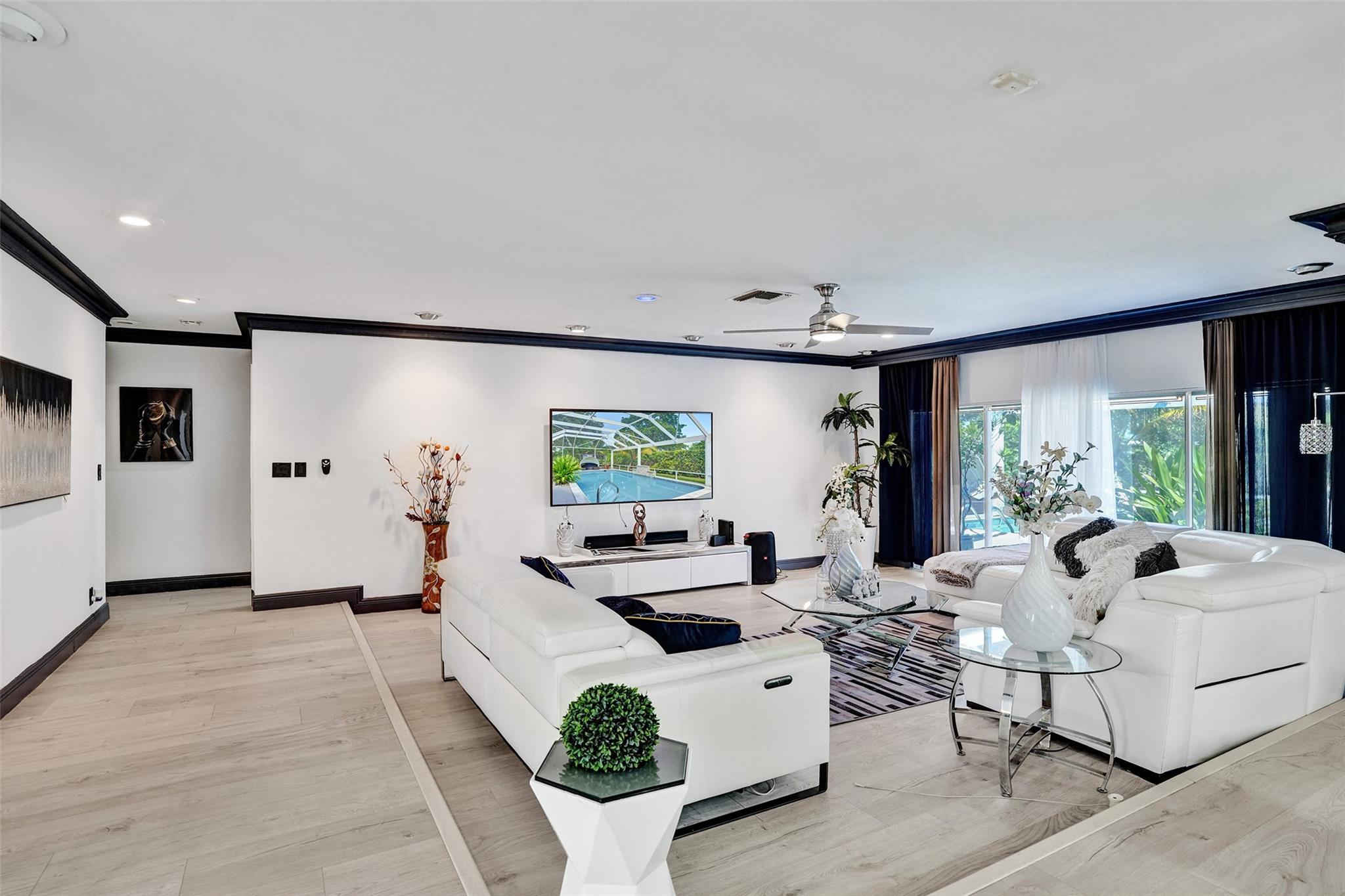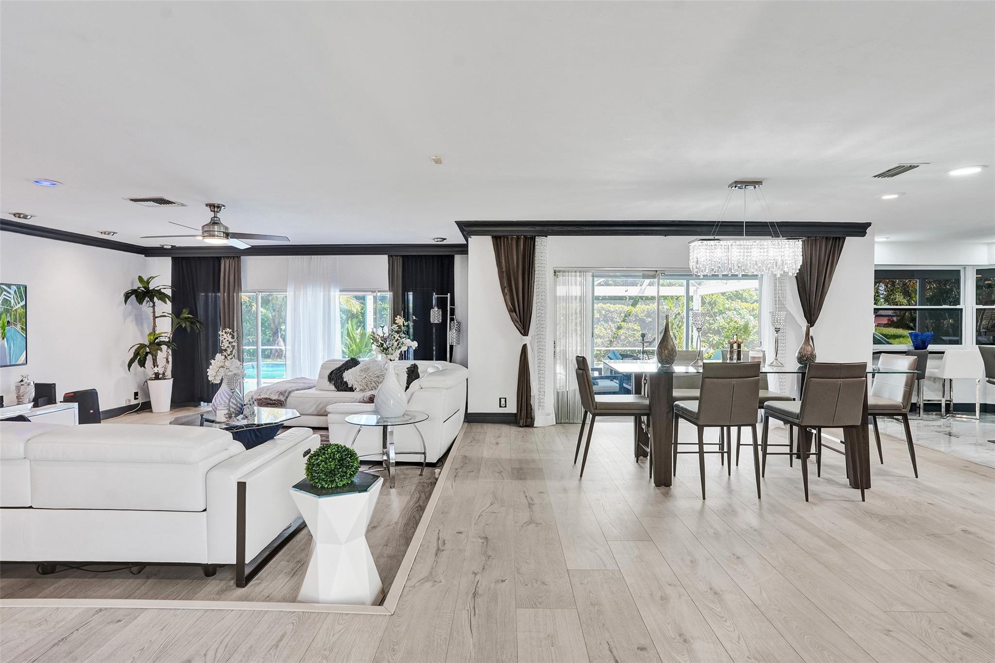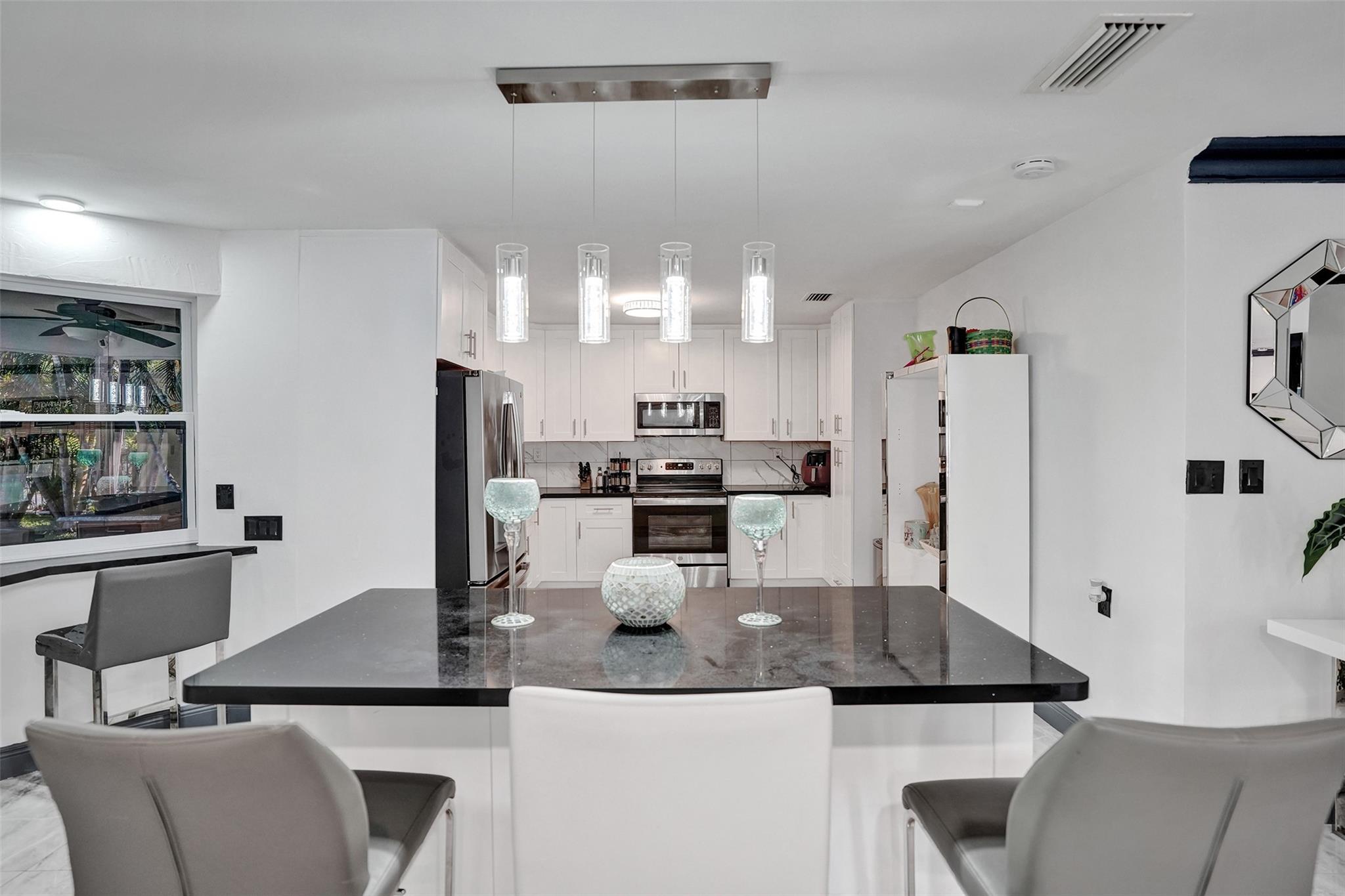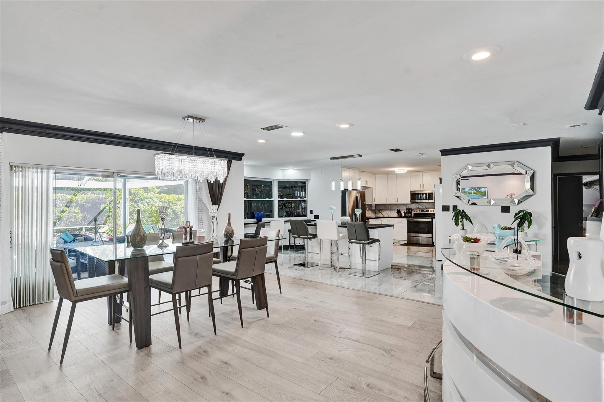 This stunning 4-bedroom, 3-bath home features a new roof installed in 2021 and newer flooring throughout. The beautiful master suite overlooks the pool and includes a large custom-built walk-in closet. The kitchen boasts an eat-in island and a pass-through bar to the pool area. The living and dining areas offer beautiful views of the pool and plenty of natural light. The interior has been freshly painted and is complemented by mature, lush landscaping.