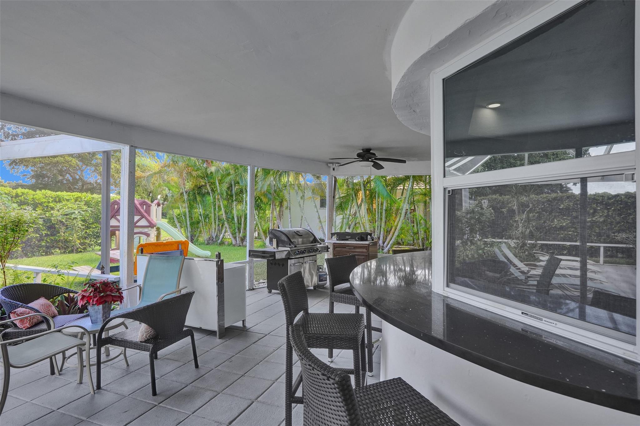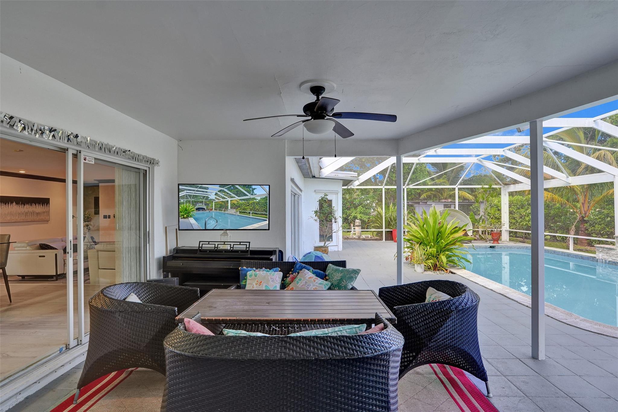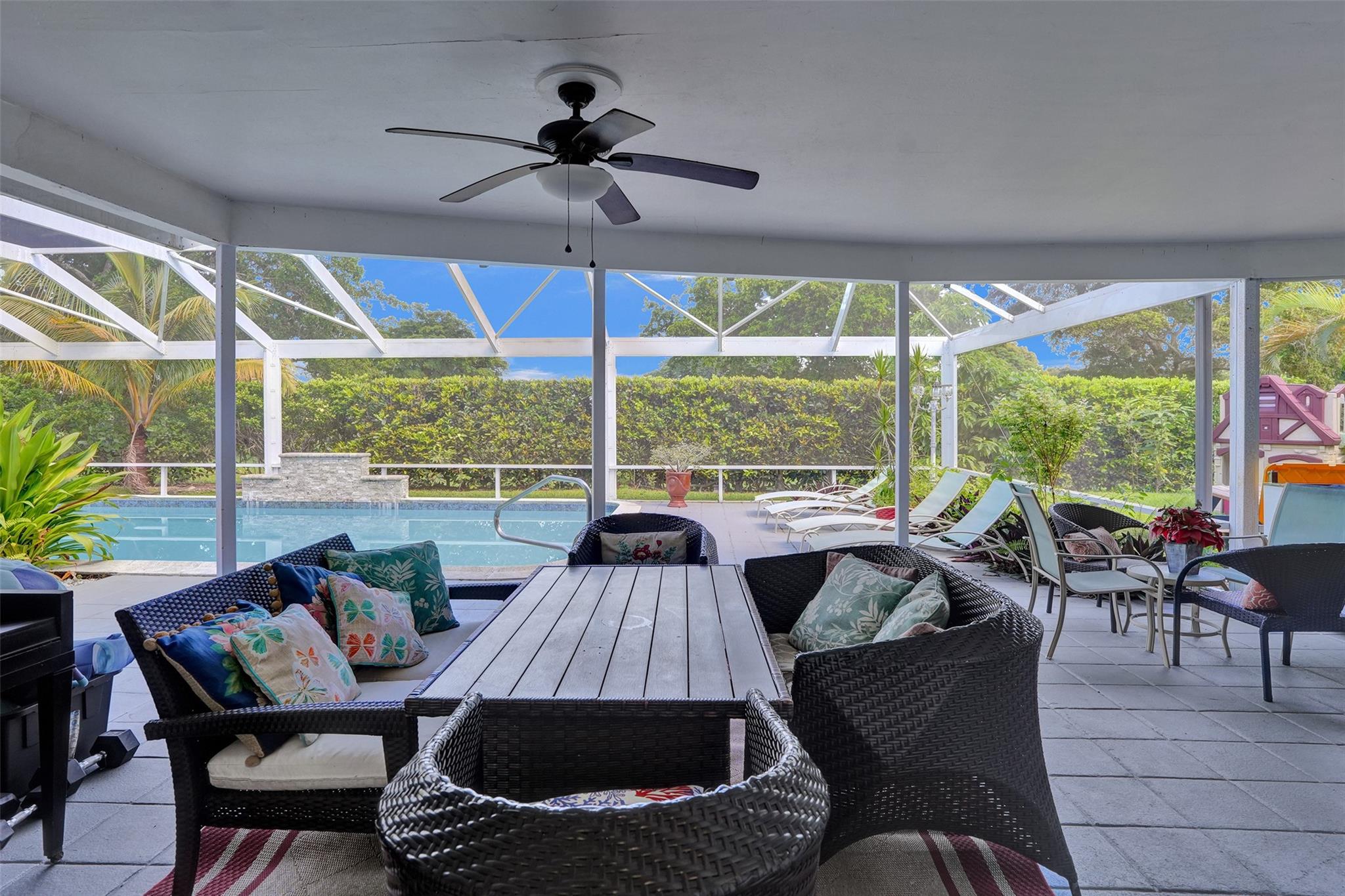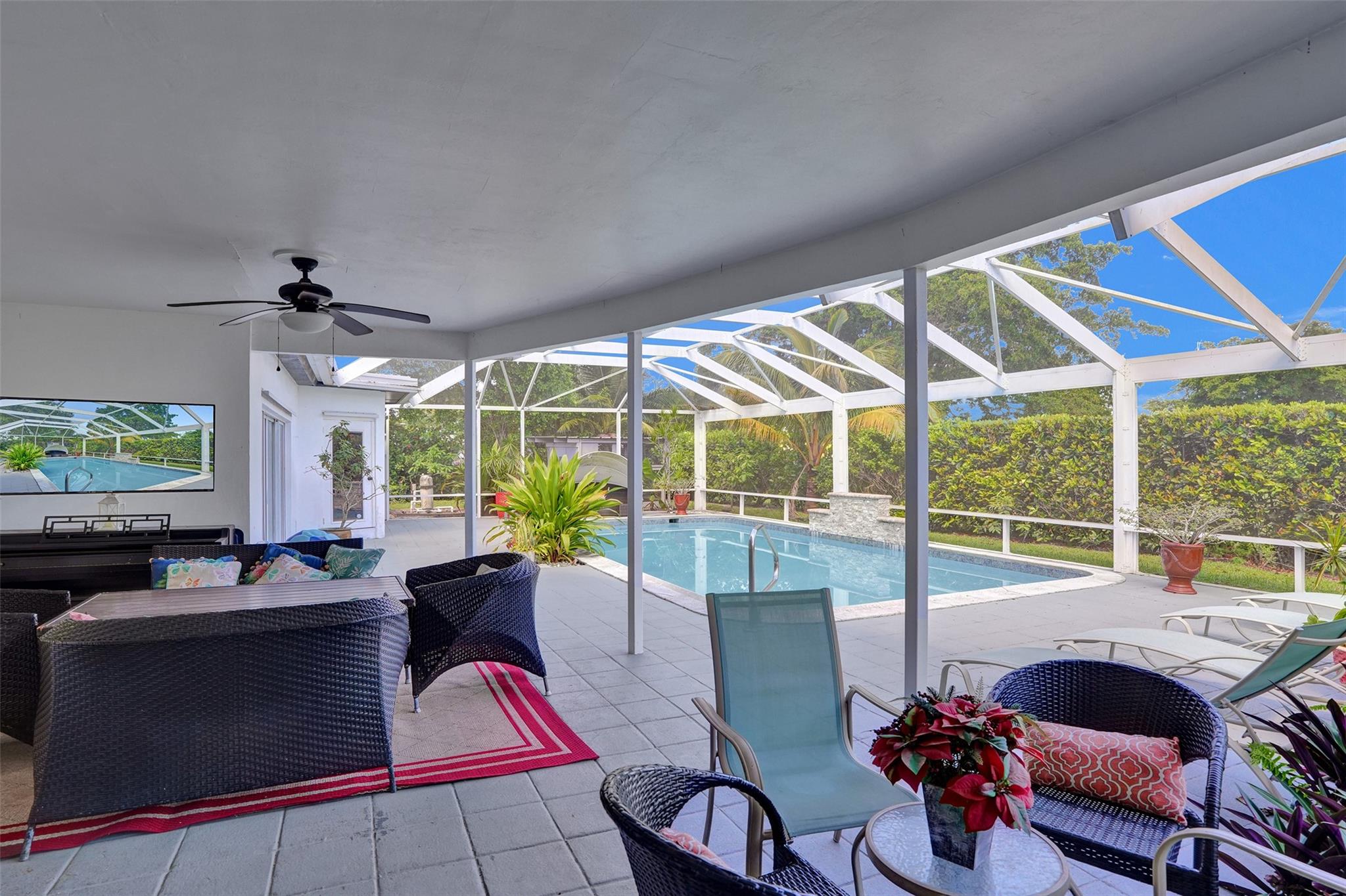 Additional features include a formal dining room, a separate laundry room, and an outside covered living and dining area by the pool. The screened-in pool area is an entertainer’s dream. The home also includes a 2-car garage and hurricane shutters. The HOA fee covers access to the Section 7 pool and clubhouse and lawn maintenance.