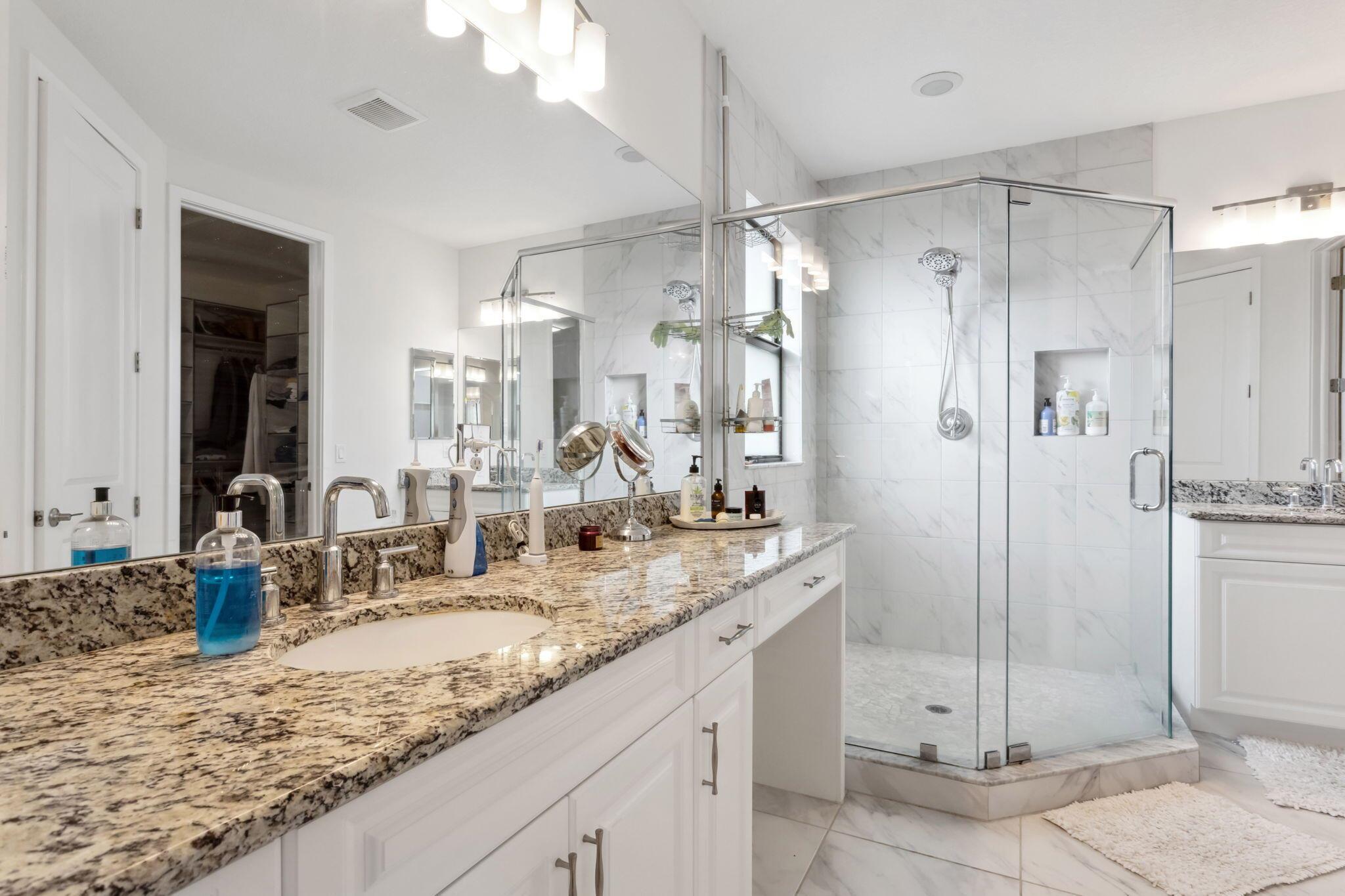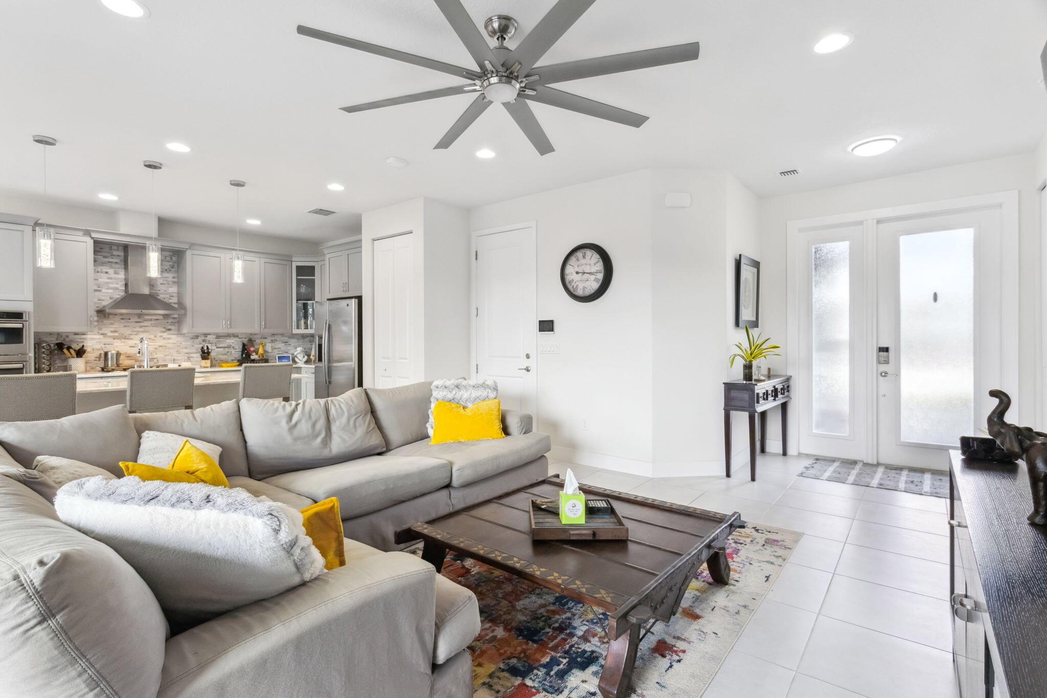 Spacious and bright SMART home with natural gas throughout. 1 bedroom and full bath downstairs and 3 bedrooms , 2 baths upstairs with bonus loft area. Quartz counters with GE Profile appliances in the kitchen. Custom fitted closets and cabinets. Laundry upstairs with a gas dryer. Tankless water heater. Impact glass windows and doors. Extended patio with summer kitchen overlooking the lake. Great home for entertaining! Minutes to highways, shopping, downtown Lake Worth and the beach!