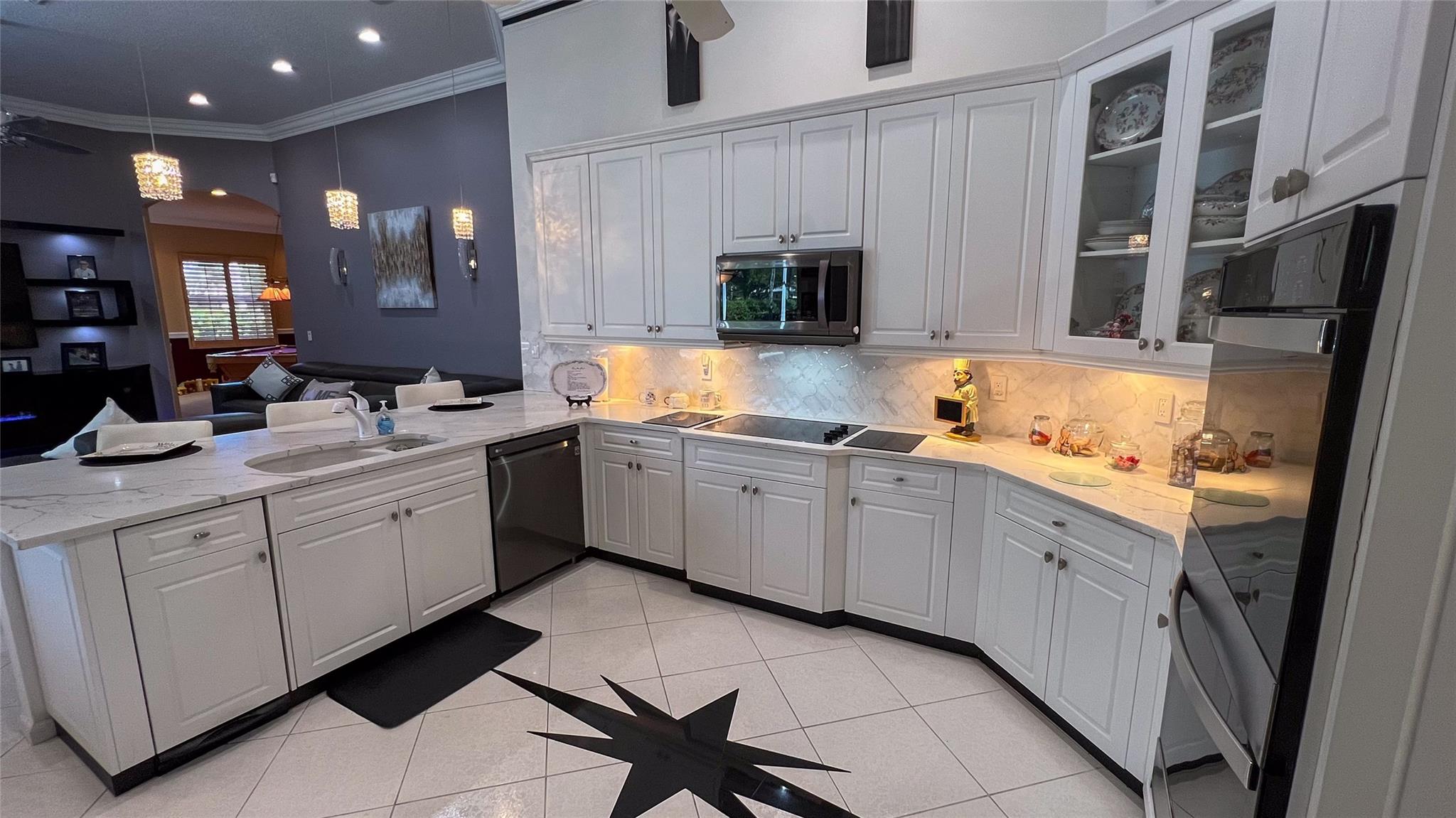 Original Owners – Custom Built – One of a Kind!! Oversize Custom Corner Lot, Kensington – Chelsea Roof 2018 Circular Paver Driveway, 5 Bedroom, 3.5 Baths, 2 Main Bedrooms with Private Bath, Master Bath with Huge Walk Thru Dual Head Shower, Large Soaking Tub and Dual Vanities with Quartz Countertops. Custom Porcelain Tile Laid on the Diagonal with Black Granite Inserts. Remodeled Kitchen with Quartz Counter Tops, Newer Appliances, Crown Molding Throughout. Screened Pool W/ Waterfall, Outdoor Patio Shower, Built In BBQ, 2 High Efficiency AC Zones. Please see the attachment for all the homes features and upgrades.