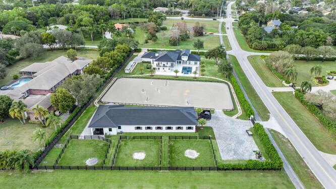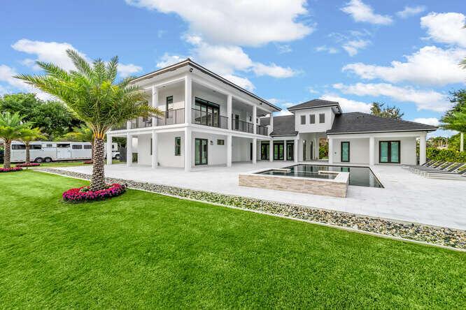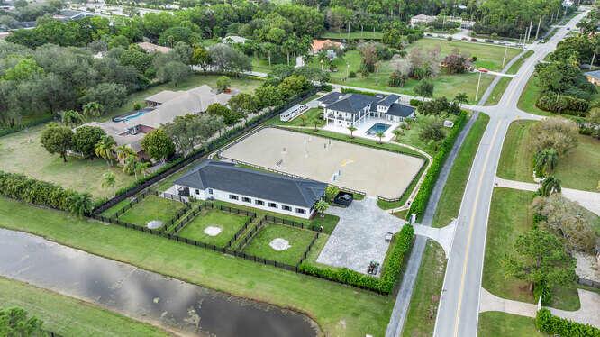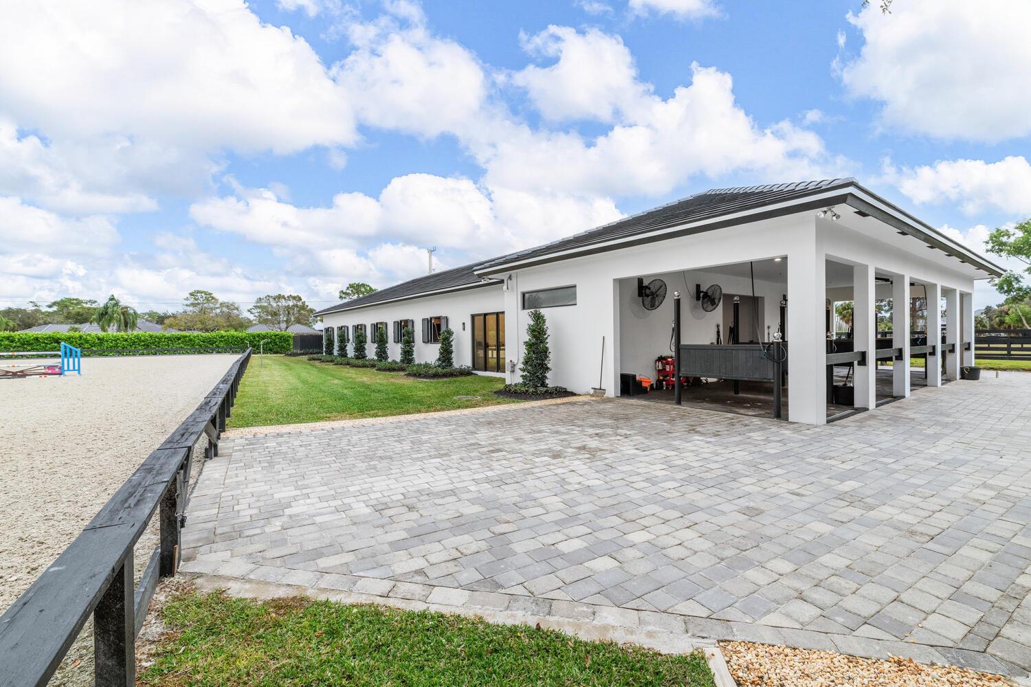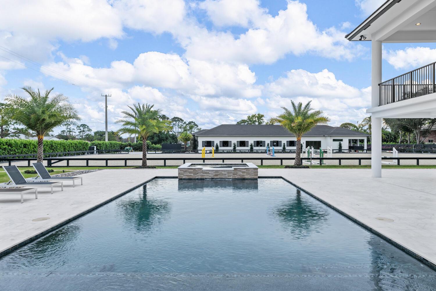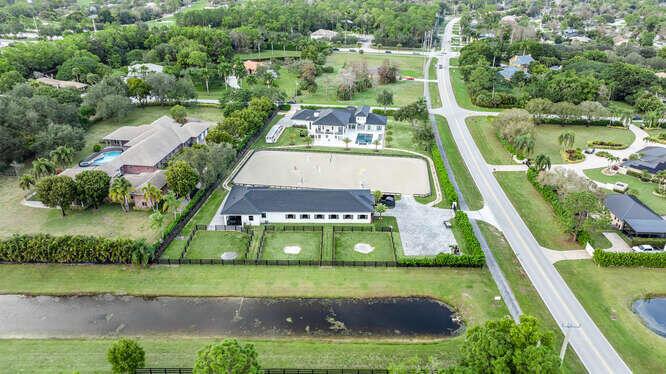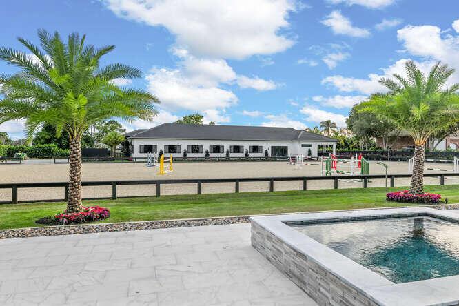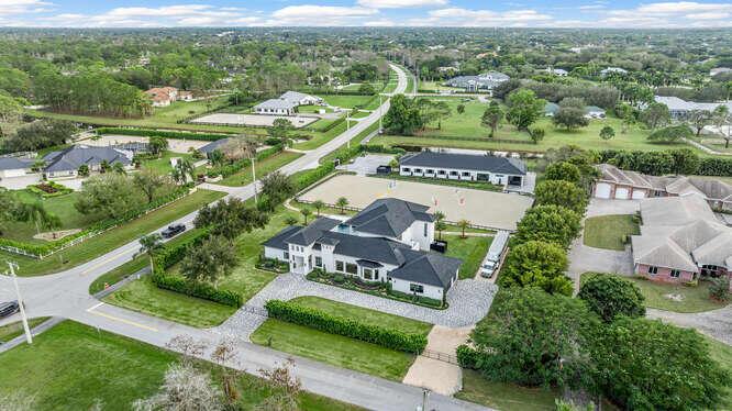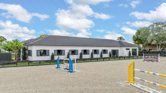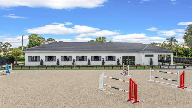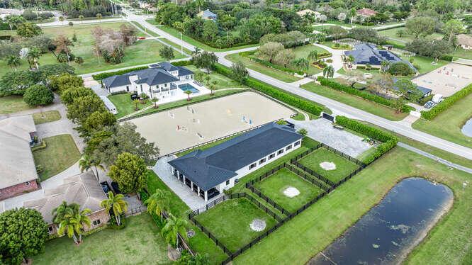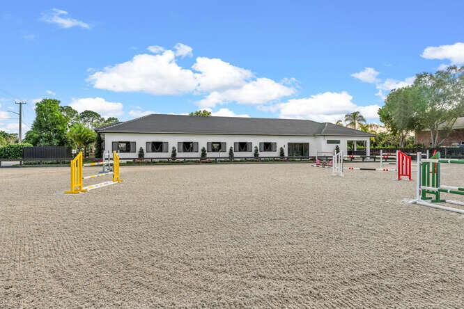 Exquisite Equestrian Estate in Wellington’s Heart! Immerse yourself in the ultimate equestrian lifestyle within this breathtaking new construction estate. Nestled in the heart of Wellington, this stunning all CBS construction property boasts a 4-bedroom, 4.2-bathroom main house, accompanied by an upscale 1-bedroom, 1-bathroom attached guest house. World-Class Equestrian Facility complete with an impressive 12-stall CBS barn and high end arena with excellent footing.Luxurious main residence completed in 2022. The main house features soaring ceilings, expansive bedrooms, spacious walk-in pantry, large laundry room, extra storage rooms galore, open kitchen layout, and a three-car garage with ample storage for even a 26-foot boat.