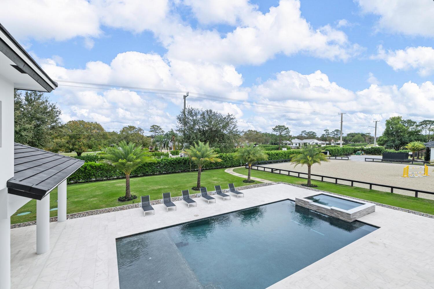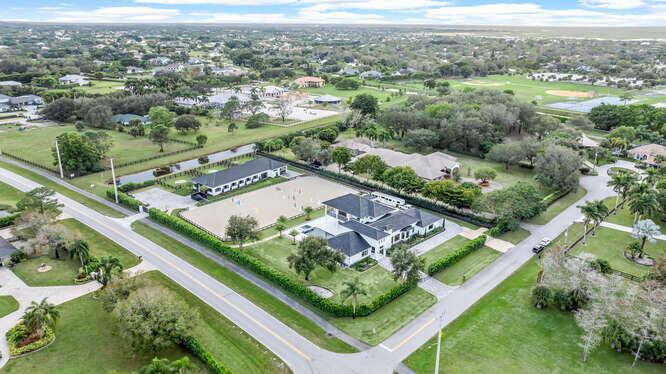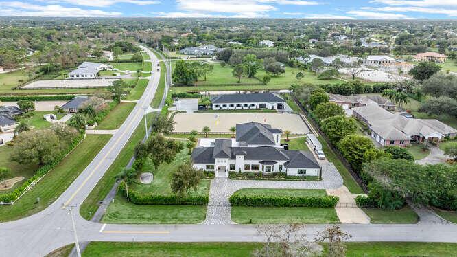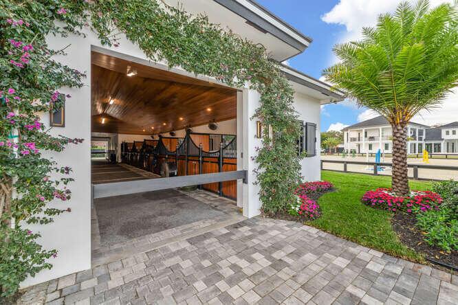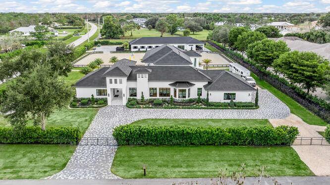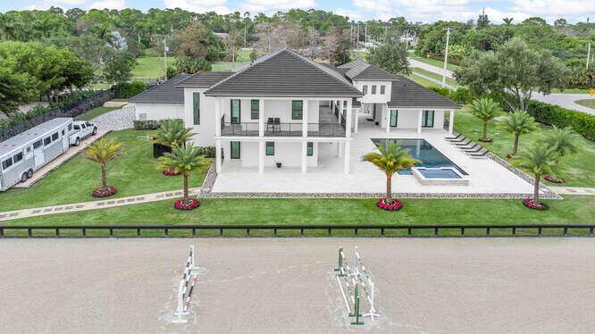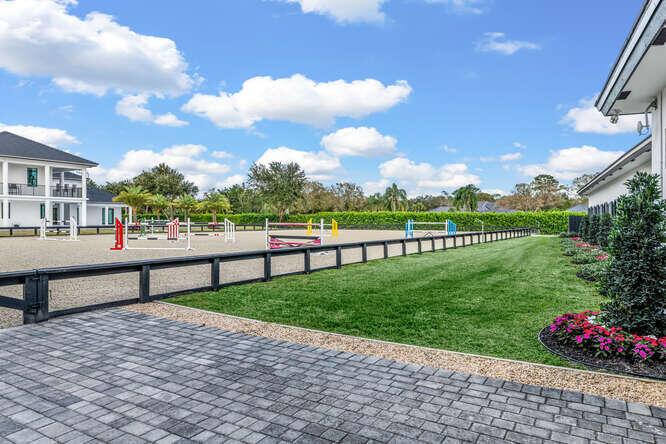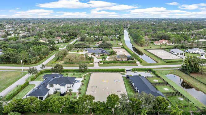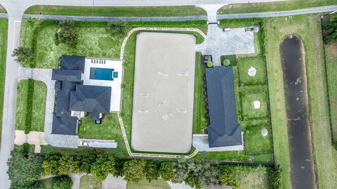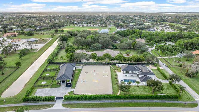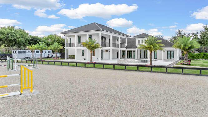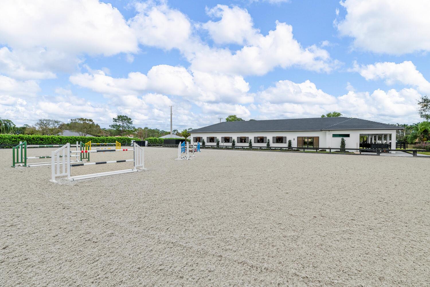 Exquisite Equestrian Estate in Wellington’s Heart! Immerse yourself in the ultimate equestrian lifestyle within this breathtaking new construction estate. Nestled in the heart of Wellington, this stunning all CBS construction property boasts a 4-bedroom, 4.2-bathroom main house, accompanied by an upscale 1-bedroom, 1-bathroom attached guest house. World-Class Equestrian Facility complete with an impressive 12-stall CBS barn and high end arena with excellent footing.Luxurious main residence completed in 2022. The main house features soaring ceilings, expansive bedrooms, spacious walk-in pantry, large laundry room, extra storage rooms galore, open kitchen layout, and a three-car garage with ample storage for even a 26-foot boat.