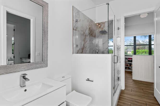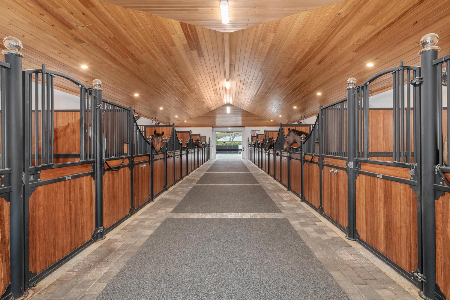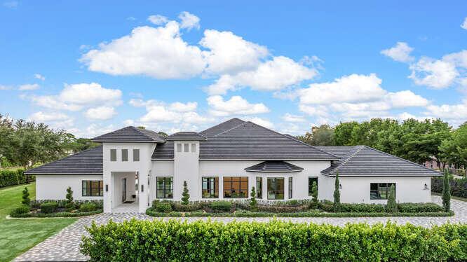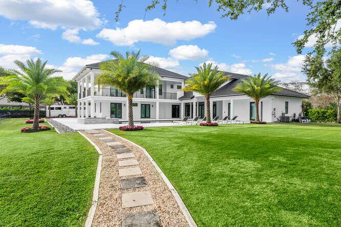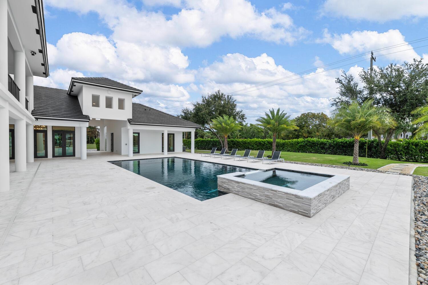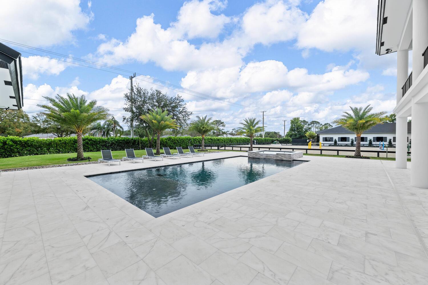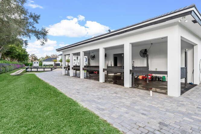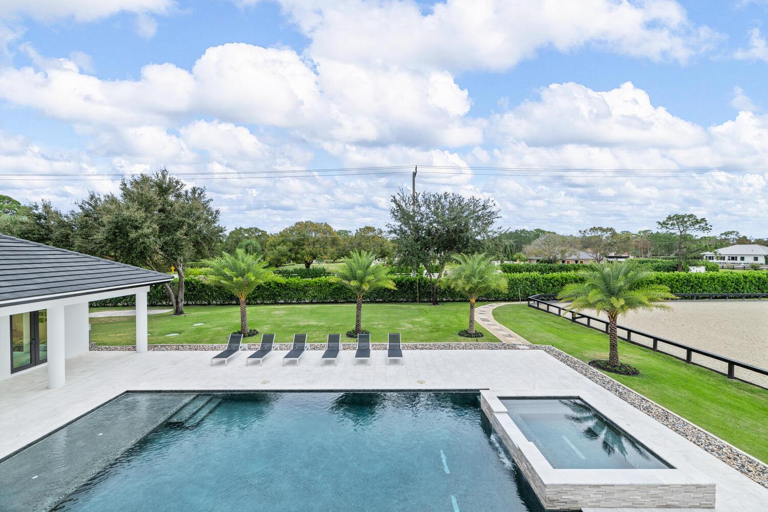 Exquisite Equestrian Estate in Wellington’s Heart! Immerse yourself in the ultimate equestrian lifestyle within this breathtaking new construction estate. Nestled in the heart of Wellington, this stunning all CBS construction property boasts a 4-bedroom, 4.2-bathroom main house, accompanied by an upscale 1-bedroom, 1-bathroom attached guest house. World-Class Equestrian Facility complete with an impressive 12-stall CBS barn and high end arena with excellent footing.Luxurious main residence completed in 2022. The main house features soaring ceilings, expansive bedrooms, spacious walk-in pantry, large laundry room, extra storage rooms galore, open kitchen layout, and a three-car garage with ample storage for even a 26-foot boat.