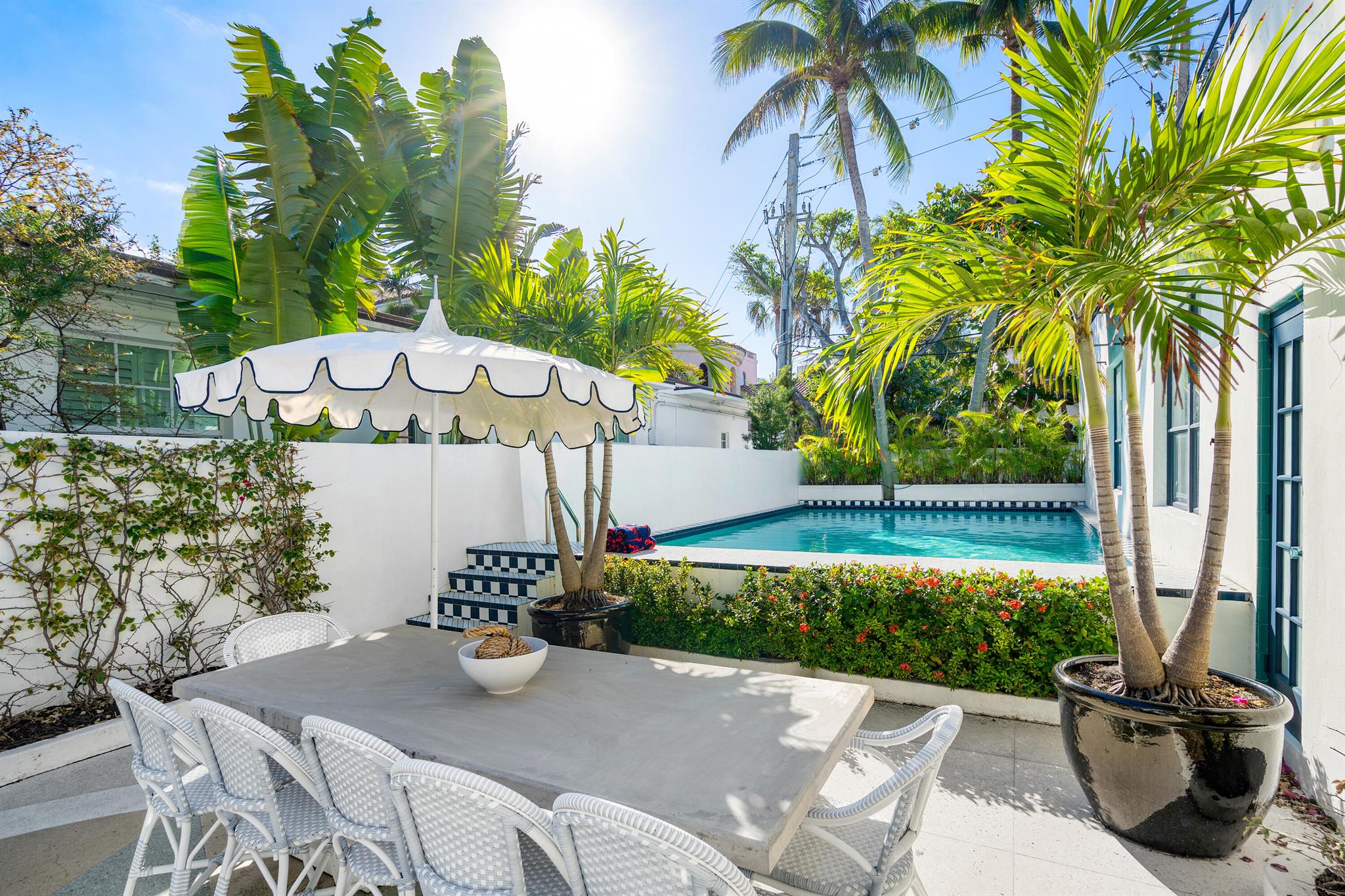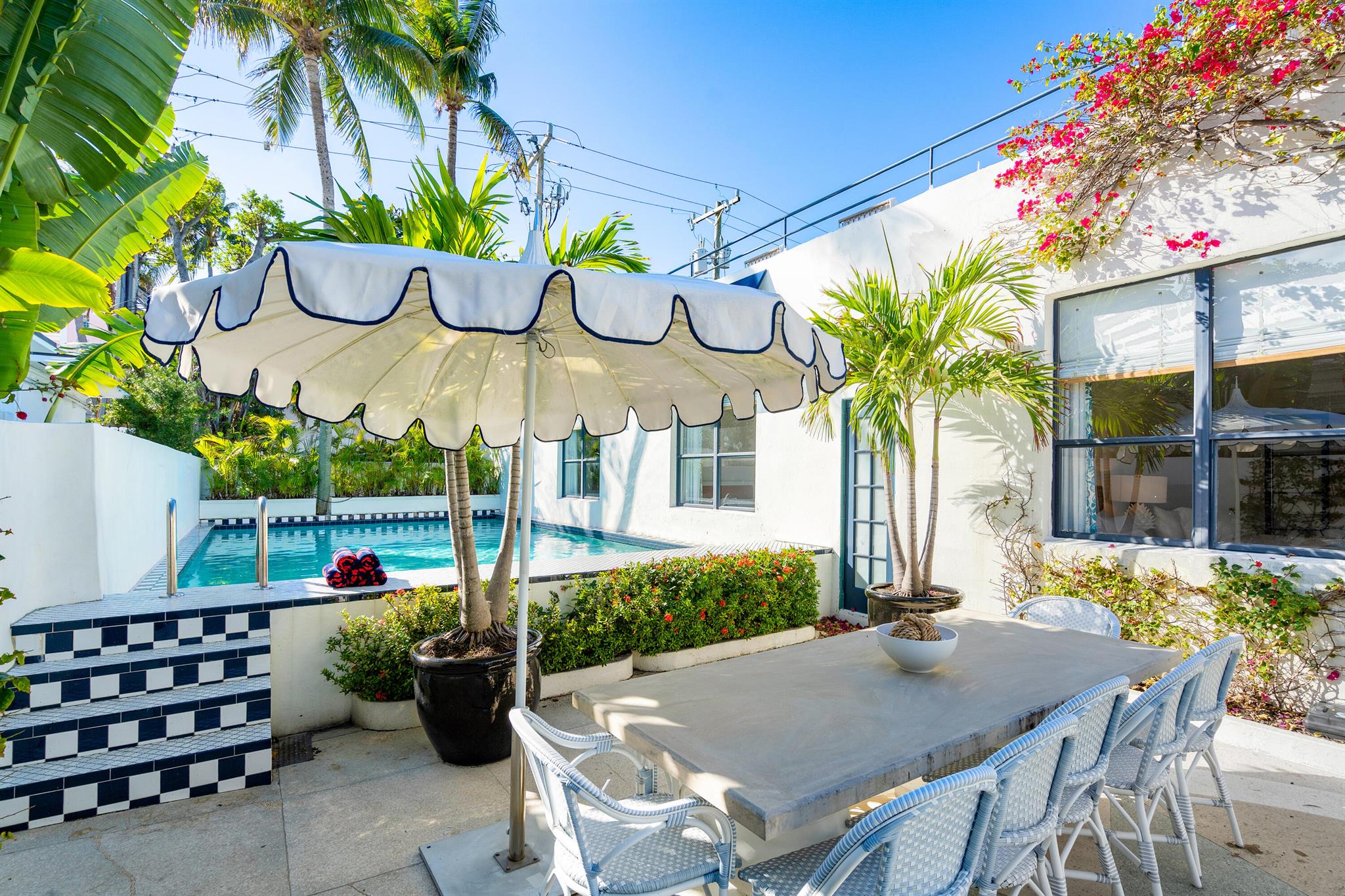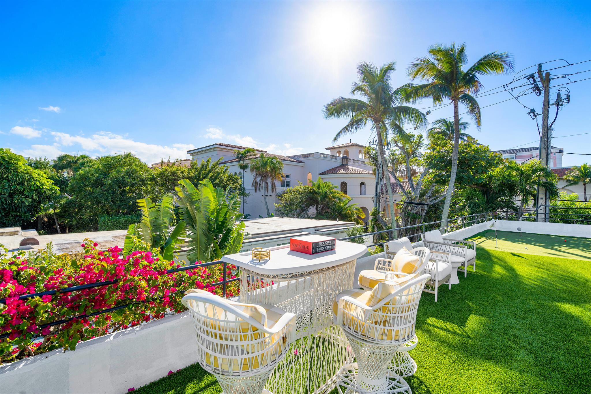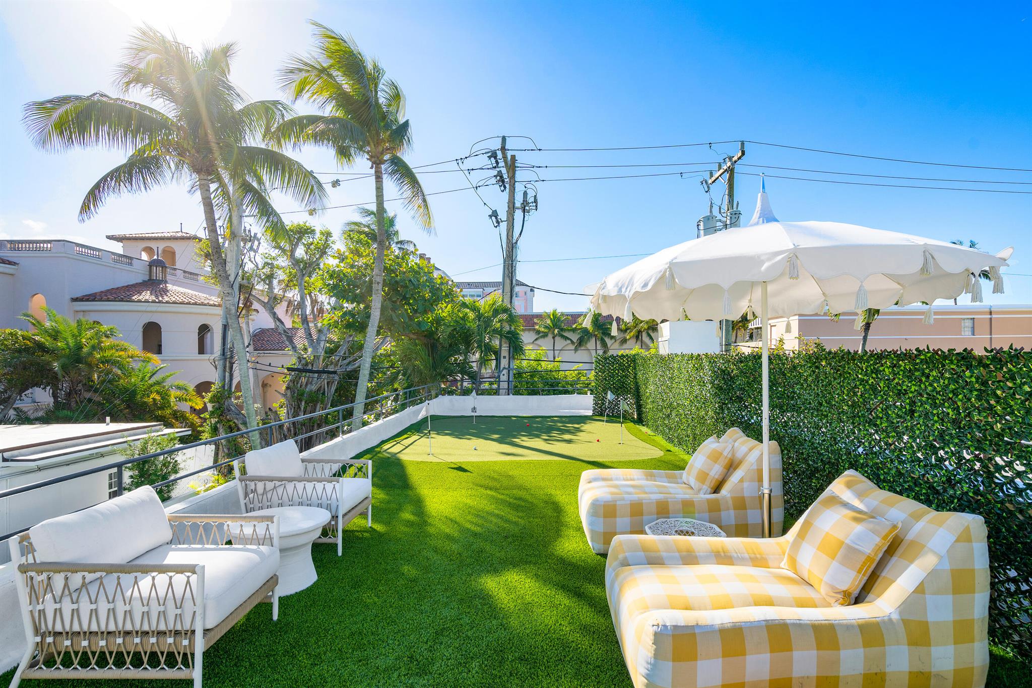 Nestled in a premier location just steps from Worth Avenue and the beach, this Landmarked Belford Shoumate home combines timeless charm with modern living. The 3-bedroom, 2-bathroom residence is bathed in natural light and is truly one of a kind. Designed for entertaining, the outdoor spaces are a true highlight. Enjoy the poolside bar or ascend to the beautifully landscaped rooftop terrace with a putting green and city views.