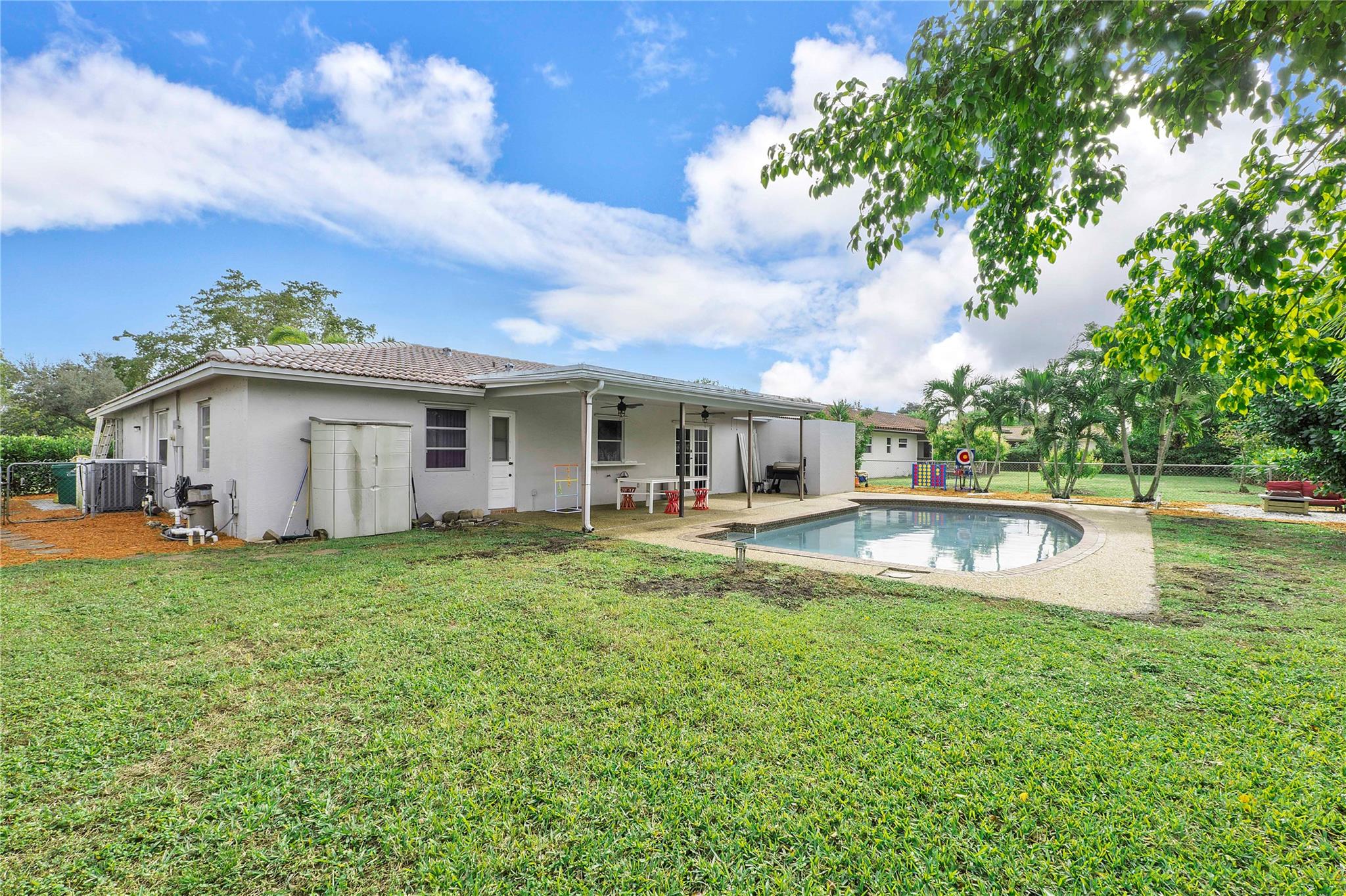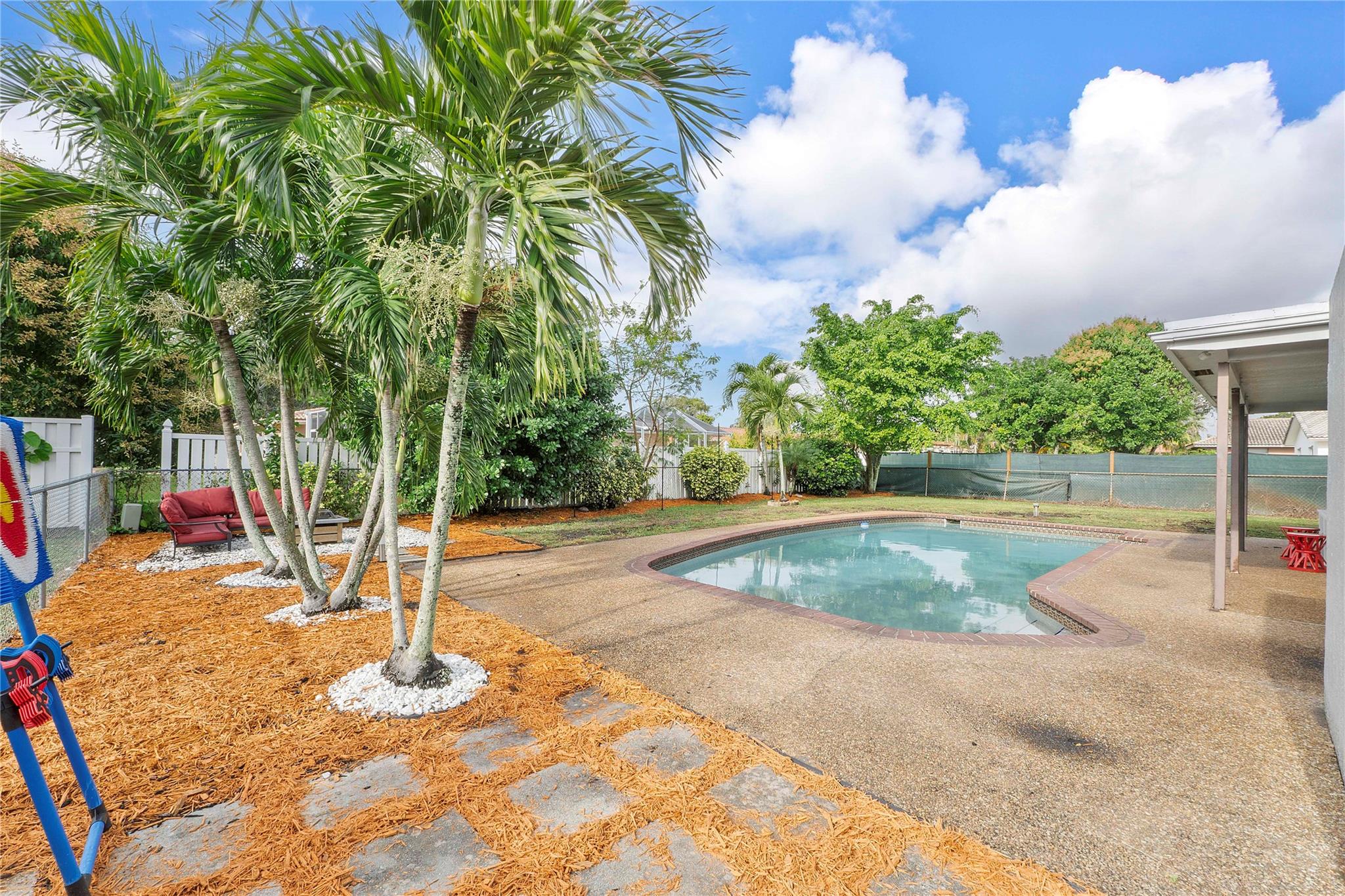 The oversized patio at the back spans the entire length of the house. Perfect for shaded seating on hot summer days while watching the family enjoy the pool. The 10,000 sq ft lot offers plenty of space for kids and pets to run around. Don’t miss out on this one!