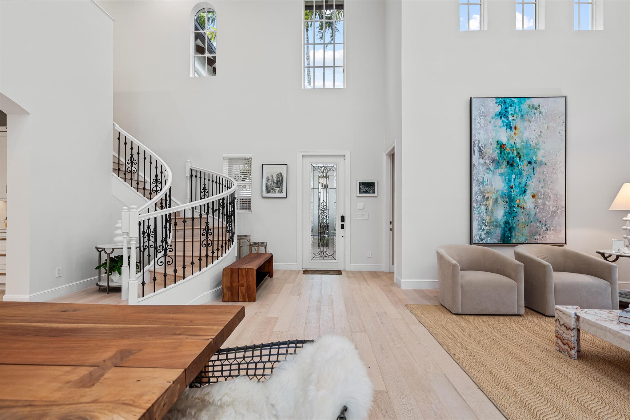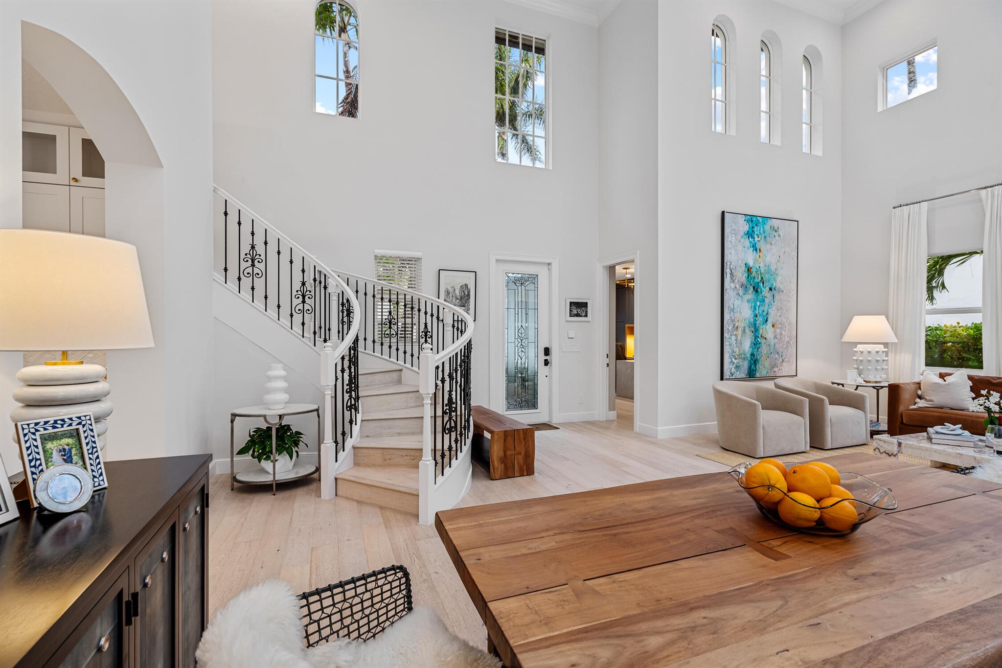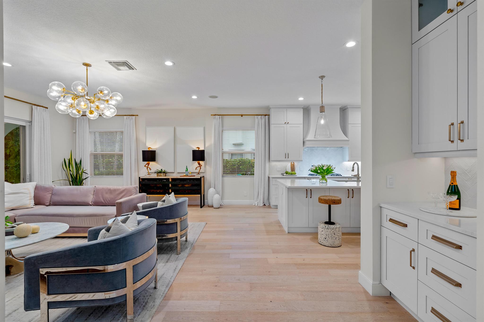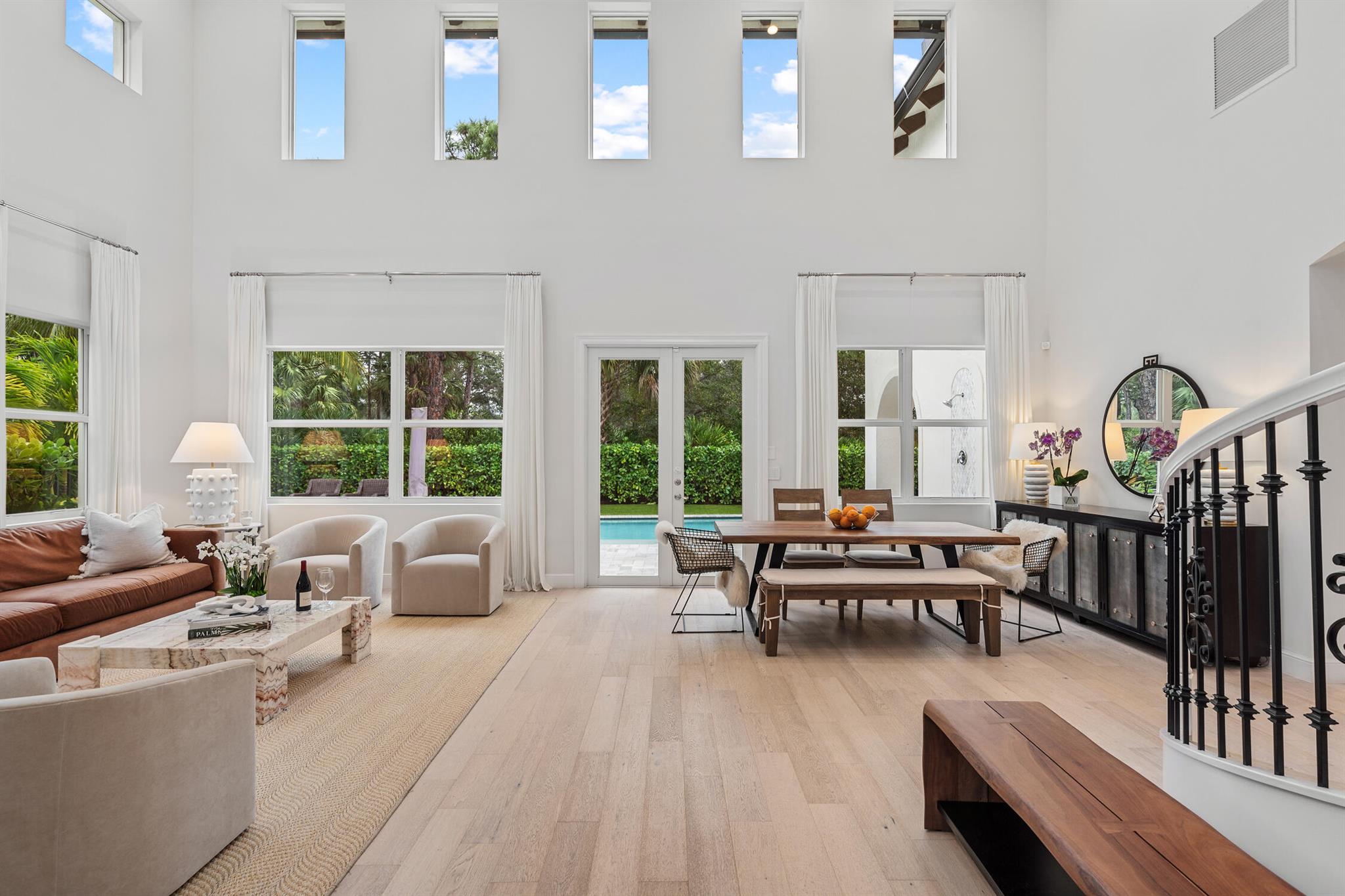 Welcome to 910 Mill Creek Drive, an exceptional residence nestled in the highly sought-after, centrally located Evergrene community of Palm Beach Gardens. Impeccably transformed by Palm Club Design Group, this home combines timeless elegance with contemporary luxury, offering the highest standard of living. The expansive open-concept design, with soaring ceilings and white oak floors, is bathed in natural light and complemented by a brand-new roof, impact windows, and cutting-edge upgrades.