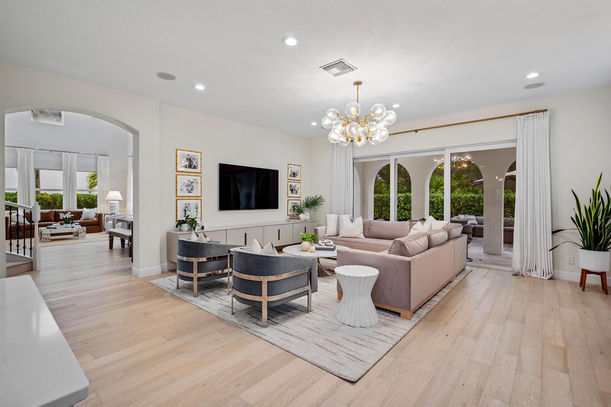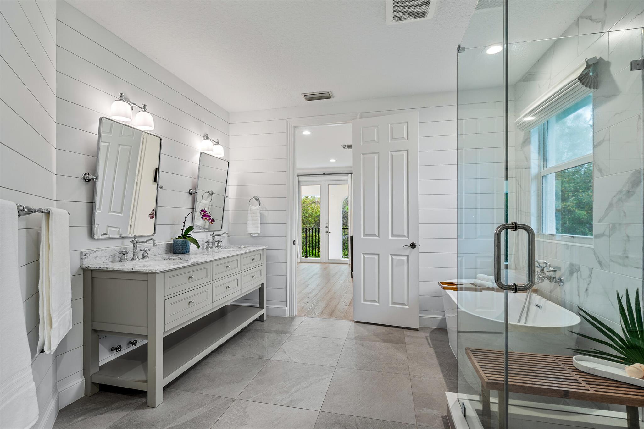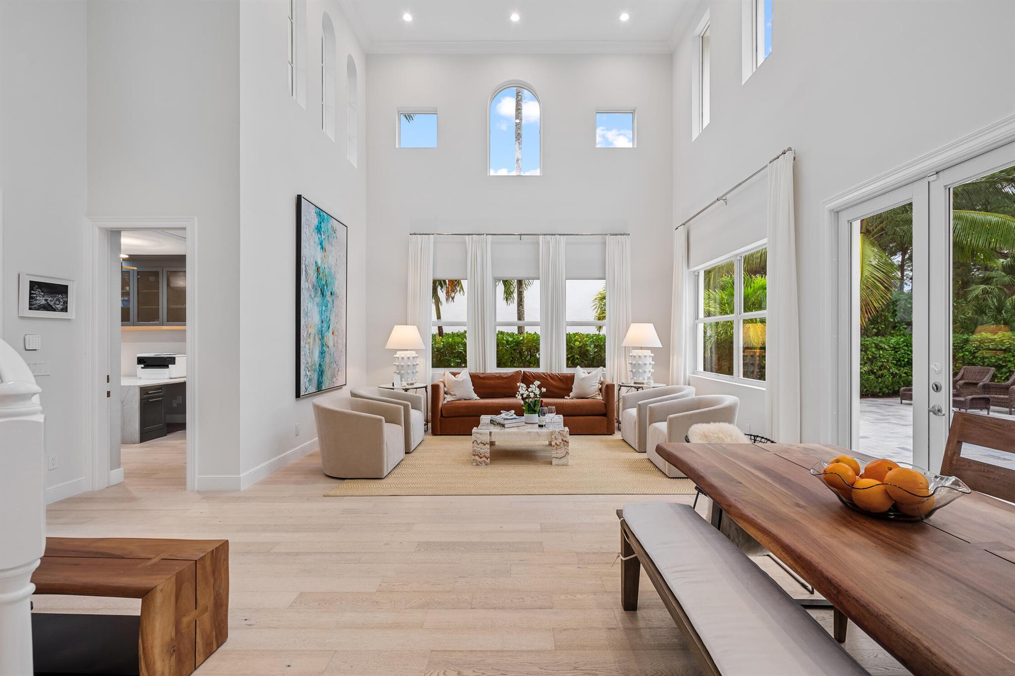 Welcome to 910 Mill Creek Drive, an exceptional residence nestled in the highly sought-after, centrally located Evergrene community of Palm Beach Gardens. Impeccably transformed by Palm Club Design Group, this home combines timeless elegance with contemporary luxury, offering the highest standard of living. The expansive open-concept design, with soaring ceilings and white oak floors, is bathed in natural light and complemented by a brand-new roof, impact windows, and cutting-edge upgrades.
