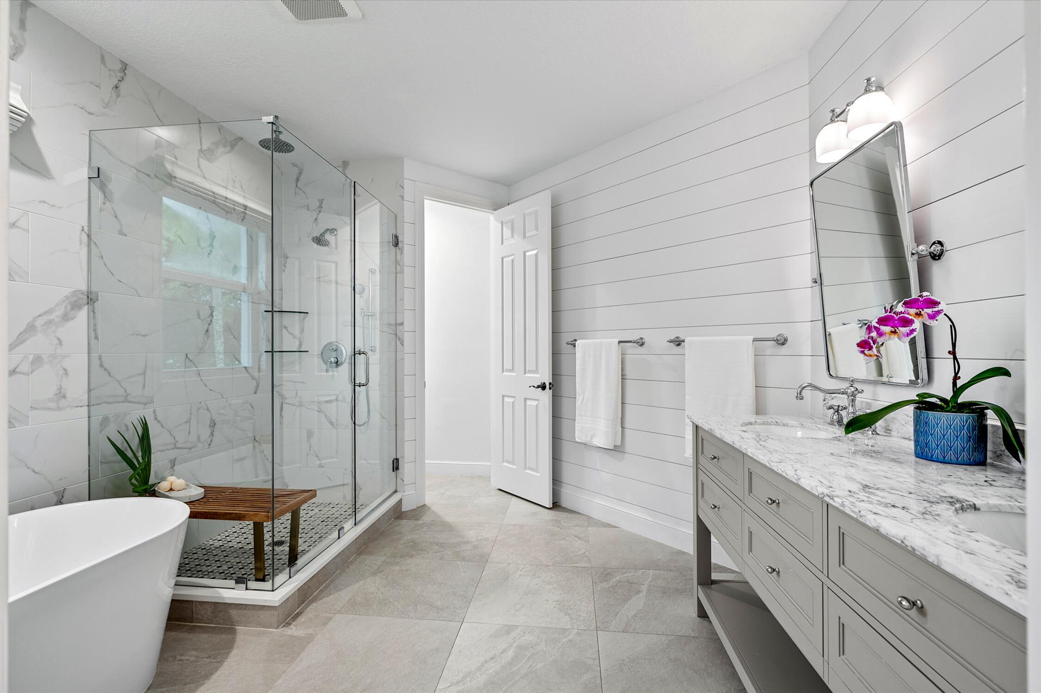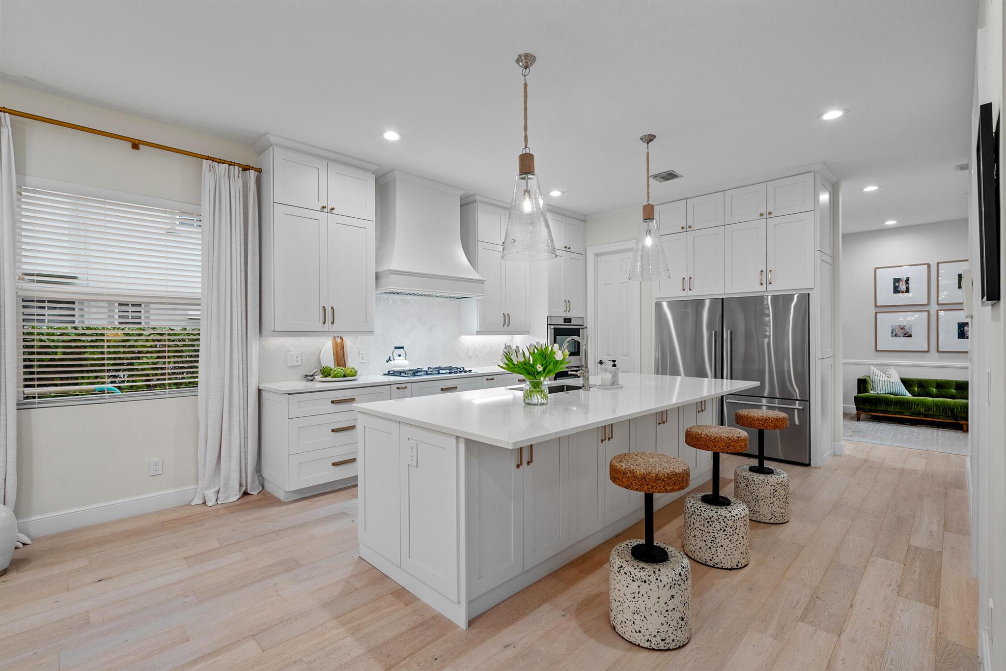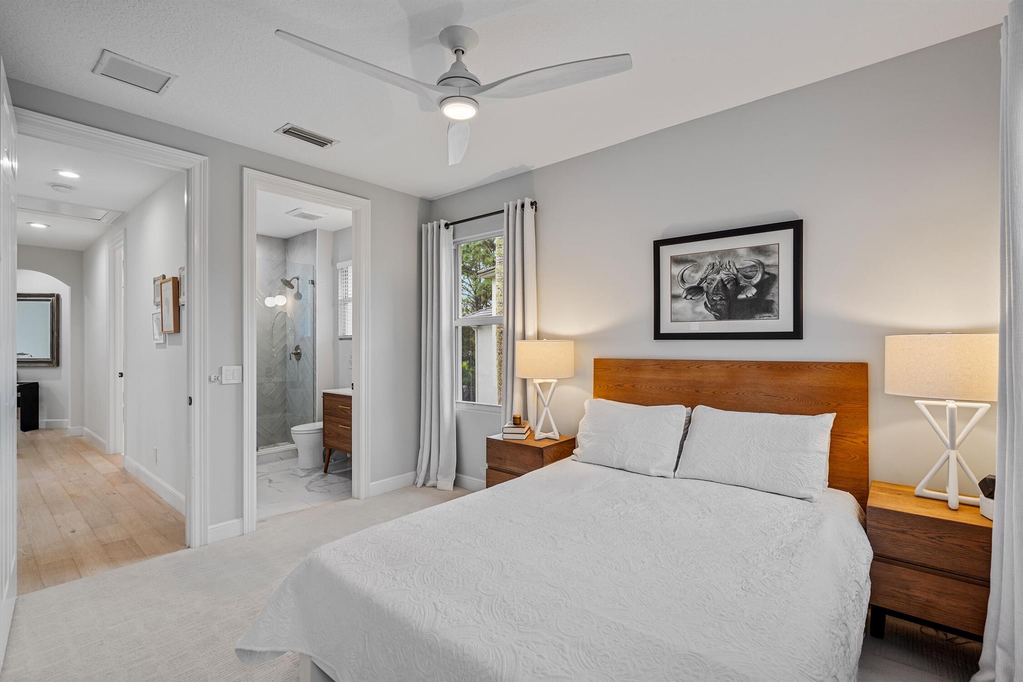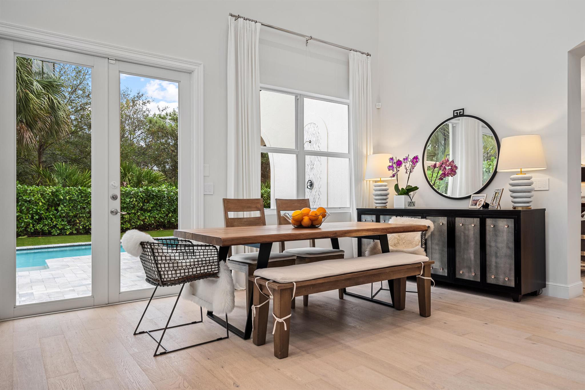 Welcome to 910 Mill Creek Drive, an exceptional residence nestled in the highly sought-after, centrally located Evergrene community of Palm Beach Gardens. Impeccably transformed by Palm Club Design Group, this home combines timeless elegance with contemporary luxury, offering the highest standard of living. The expansive open-concept design, with soaring ceilings and white oak floors, is bathed in natural light and complemented by a brand-new roof, impact windows, and cutting-edge upgrades.