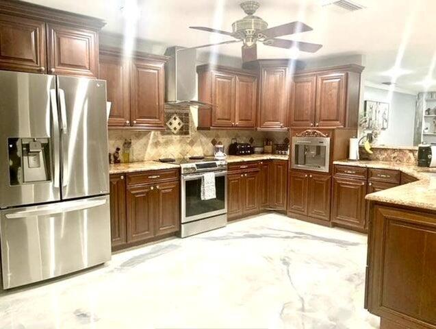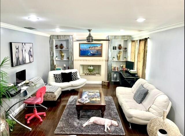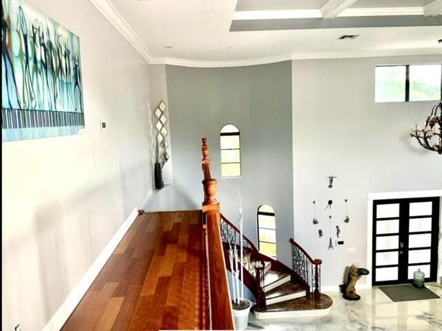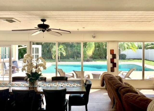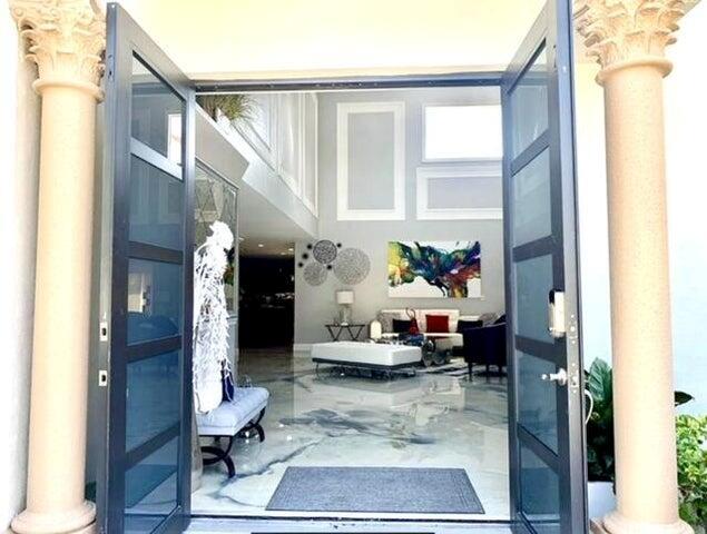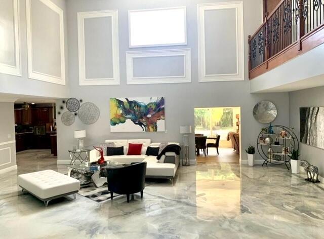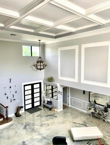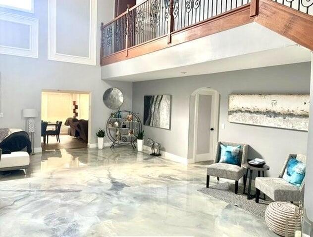 Stunning Mediterranean Estate in Palm Beach Farms. Prime Location: Sought-after Palm Beach Farms neighborhood, A+ Addison Mizner school district, no HOA fees. Spacious Layout: 5 bedrooms, 6 bathrooms, 4,260 sq. ft. of living space on a large corner lot. Elegant Features: Grand iron-scroll staircase, soaring 24-ft vaulted ceilings, crown molding, and premium finishes. Gourmet Kitchen: Granite countertops, stainless steel appliances, and dark wood cabinetry. Entertainer’s Dream: Formal & informal living areas flow seamlessly to a tropical pool and outdoor space. Cozy Office: Fireplace-adorned office with natural light throughout. Impact Windows: Peace of mind with hurricane protection. Convenient Access: Minutes to top-rated schools, Mizner Park, pristine beaches, shopping, and