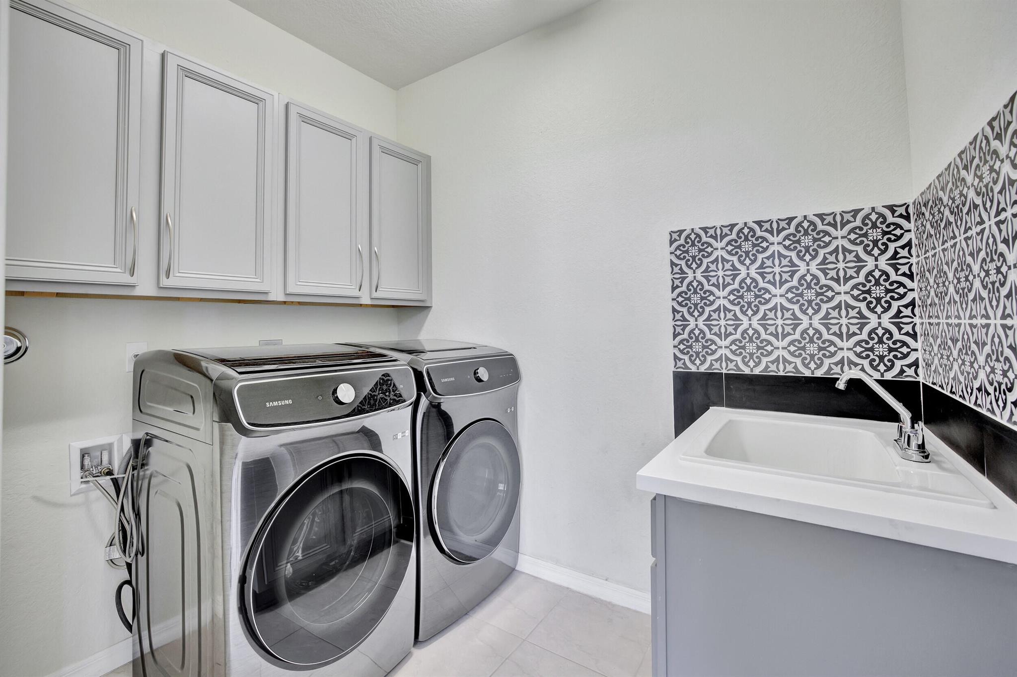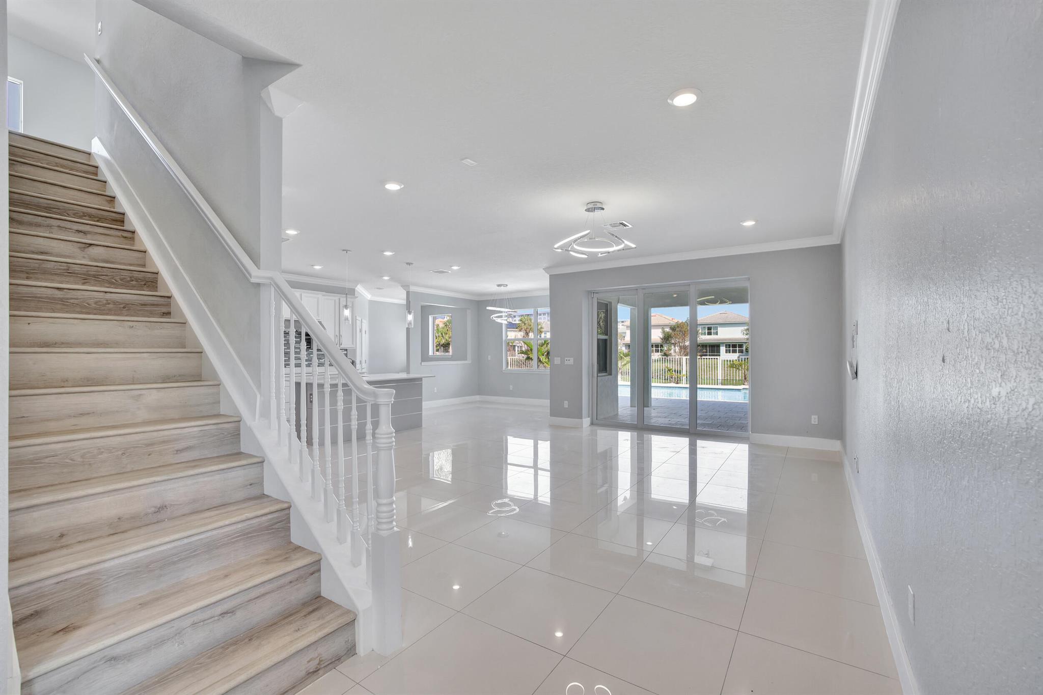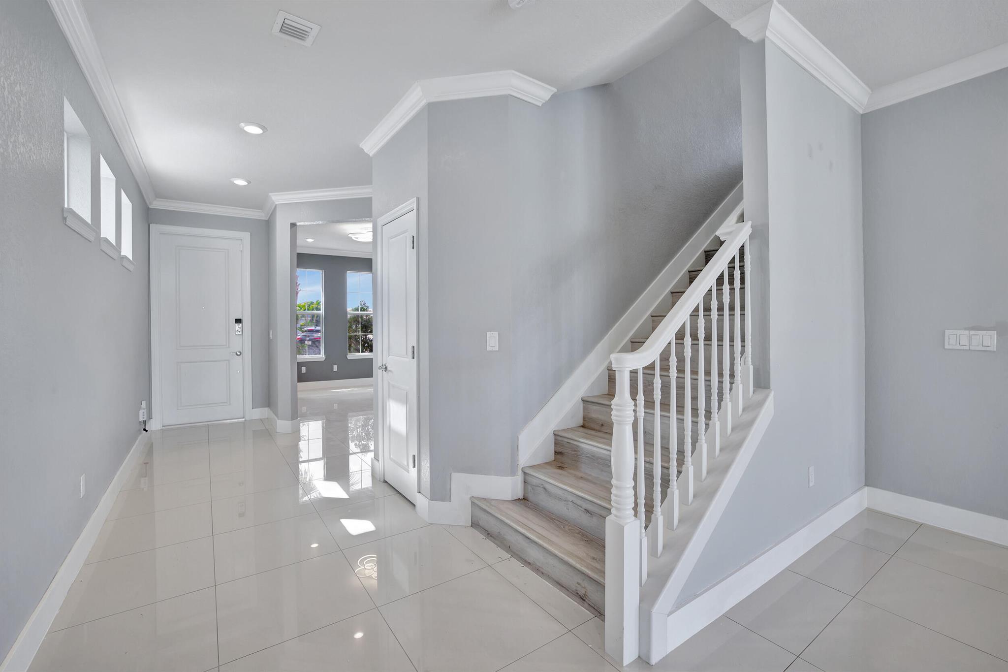 Embark on a journey to unparalleled luxury and comfort in your new home, majestically positioned on an oversized lot at the cul-de-sac’s tranquil end, with the unique allure of water views on two sides. This residence boasts a sophisticated interior with an upgraded kitchen, sleek bathrooms, and contemporary flooring, complemented by state-of-the-art appliances.Culinary adventures await in a kitchen equipped with modern appliances and two walk-in pantries for abundant storage.Ascend to the loft and be greeted by expansive water views that promise tranquility and beauty. The master bedroom is a serene sanctuary with mesmerizing views of the lake from two vantage points, ensuring a restful retreat. Practicality meets innovation with an FPL high-speed charging station in your garage, a