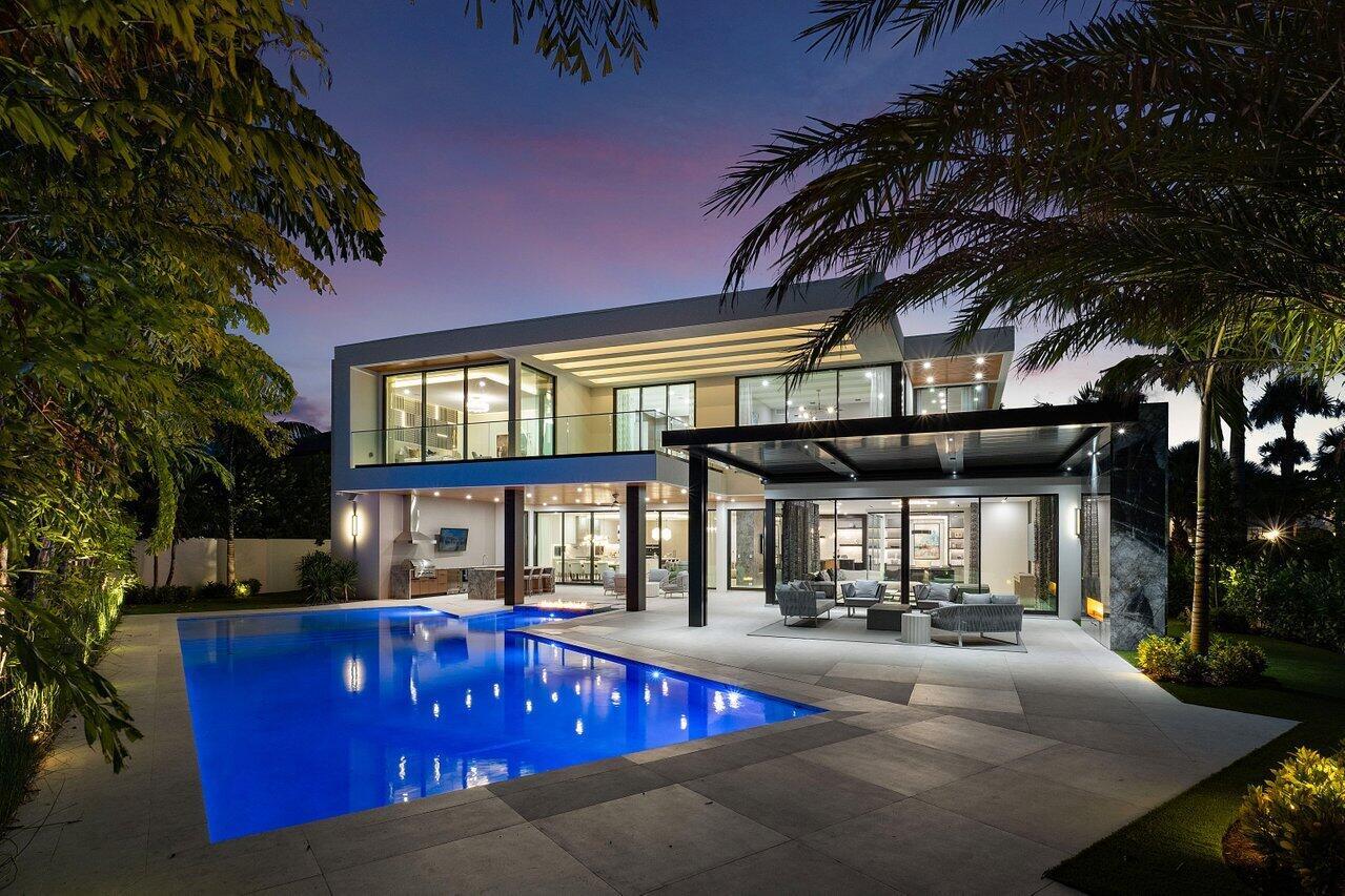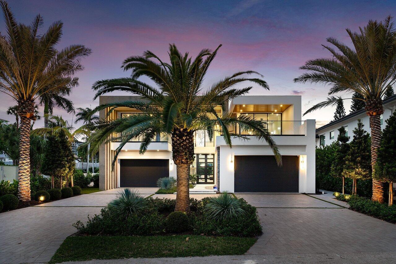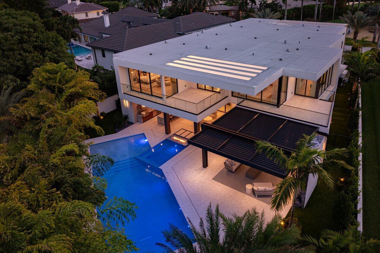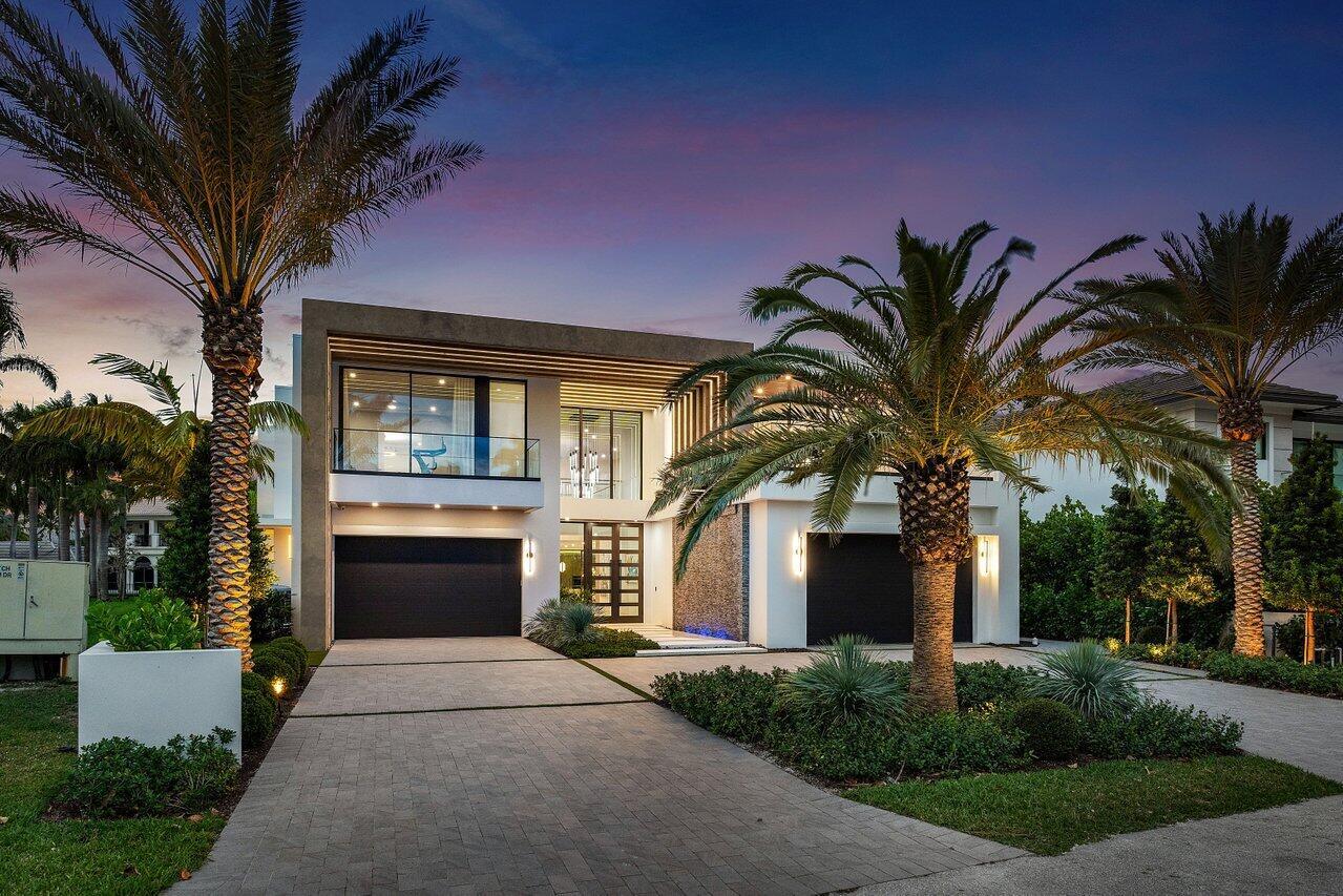 217 Thatch Palm Dr, Brand New Exquisite Contemporary Golf Course Estate sits on the 15th hole located in the world-renowned Royal Palm Yacht & CC. Built by Albanese & Sons, Architecture-BE Designs, Zelman Style Interiors. This Furnished Estate features 9,625 Total SF. 6 BD’s 7.2 BA’s. Enter into the 2-Story Wood & Glass Foyer leads to Great Room w/ Built in Wine Cellar, 2 Way Marble Fire-place, Dining Room, Dream Chef’s Kitchen w/Wolf & Luxury Appliances, Custom Family Room next to Office/Theater, Full Bar/Club Room looking out to the Expansive backyard w/Infinity Edge Pool & Spa. Fully integrated Control 4 Smart House System, Full House Gas Generator, & Elevator. 2nd Floor features 5BD & 5 En Suite -BA’s. Lavish Primary Suite Oversized His/Her Closets-Ba’s with Golf Views. Gym w/ Sauna.