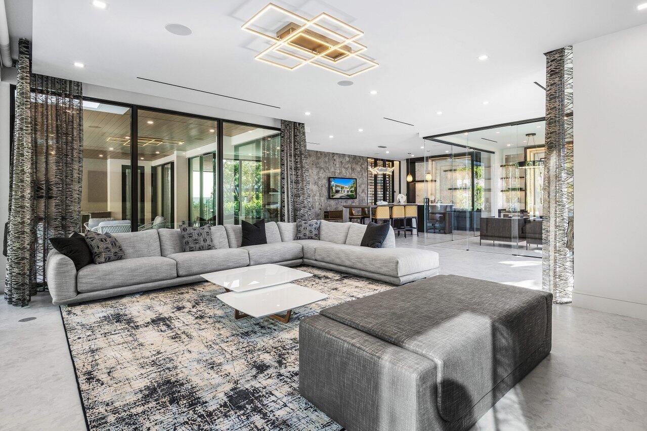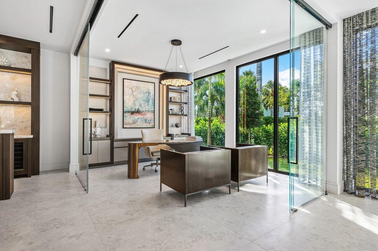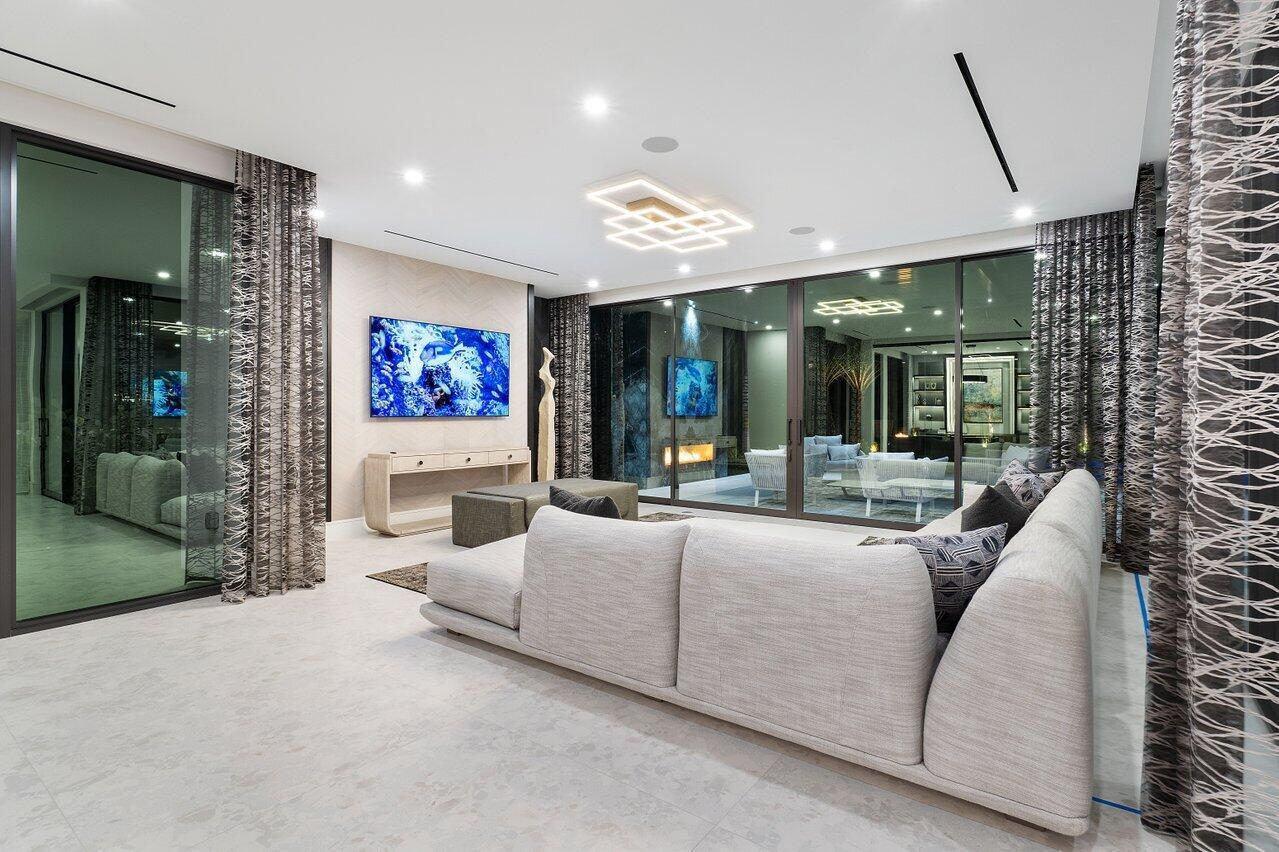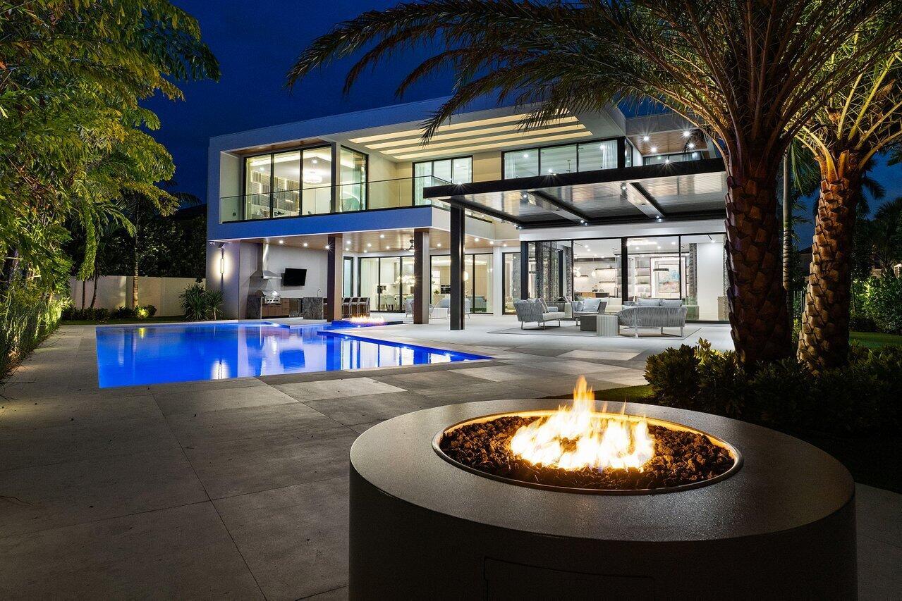 217 Thatch Palm Dr, Brand New Exquisite Contemporary Golf Course Estate sits on the 15th hole located in the world-renowned Royal Palm Yacht & CC. Built by Albanese & Sons, Architecture-BE Designs, Zelman Style Interiors. This Furnished Estate features 9,625 Total SF. 6 BD’s 7.2 BA’s. Enter into the 2-Story Wood & Glass Foyer leads to Great Room w/ Built in Wine Cellar, 2 Way Marble Fire-place, Dining Room, Dream Chef’s Kitchen w/Wolf & Luxury Appliances, Custom Family Room next to Office/Theater, Full Bar/Club Room looking out to the Expansive backyard w/Infinity Edge Pool & Spa. Fully integrated Control 4 Smart House System, Full House Gas Generator, & Elevator. 2nd Floor features 5BD & 5 En Suite -BA’s. Lavish Primary Suite Oversized His/Her Closets-Ba’s with Golf Views. Gym w/ Sauna.
