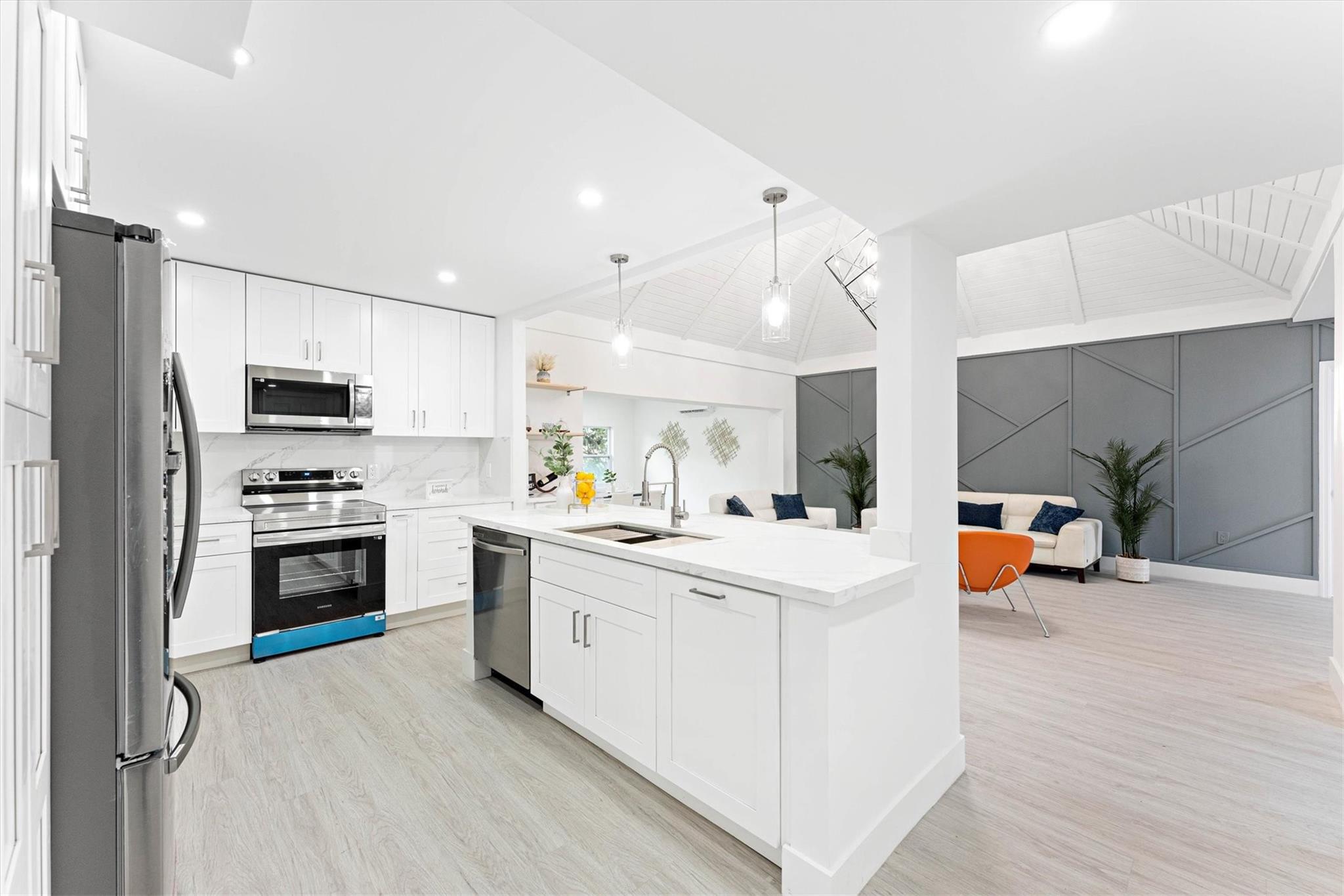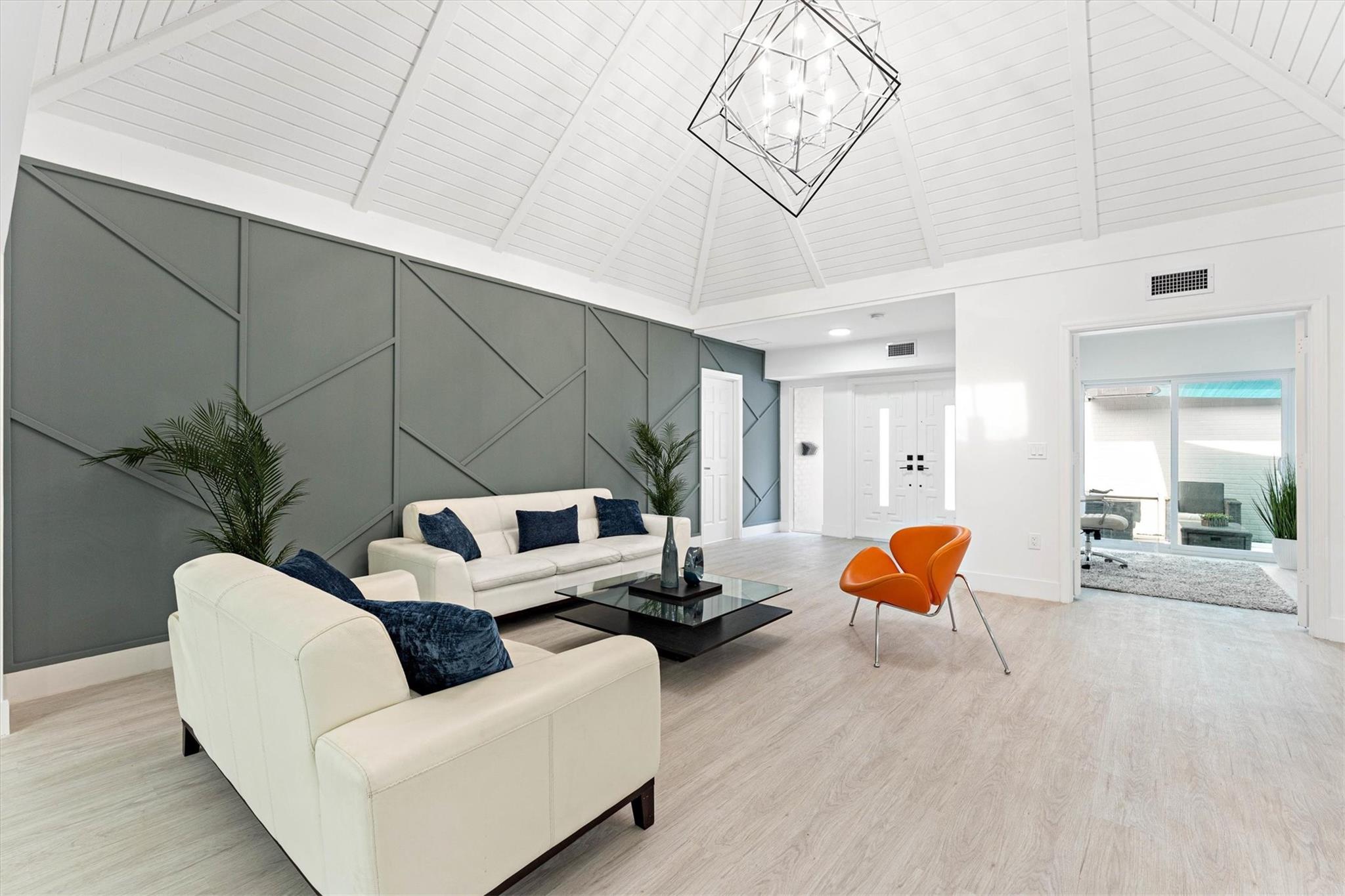 Experience the essence of modern living in this BRAND NEW CONSTRUCTION home, EVERYTHING meticulously rebuilt from the ground up. Every aspect, from roof to electrical to plumbing, is brand new, FULLY PERMITTED BY THE CITY for your peace of mind. Enjoy spacious living with 4 beds + OFFICE/ 3baths/ 1garage on over a quarter acre of land. Say goodbye to high interest rates and ask us about our RATE BUY DOWN OFFER! Step inside to a grand 20 ft vaulted ceiling adorned with an exquisite chandelier. Luxury plank flooring guides you to your brand new open concept kitchen featuring wood cabinetry, quartz countertops, and stainless steel appliances. Unwind in the serene garden oasis, perfect for outdoor gatherings and entertaining. With countless upgrades, this home is a MUST SEE! Don’t miss out!