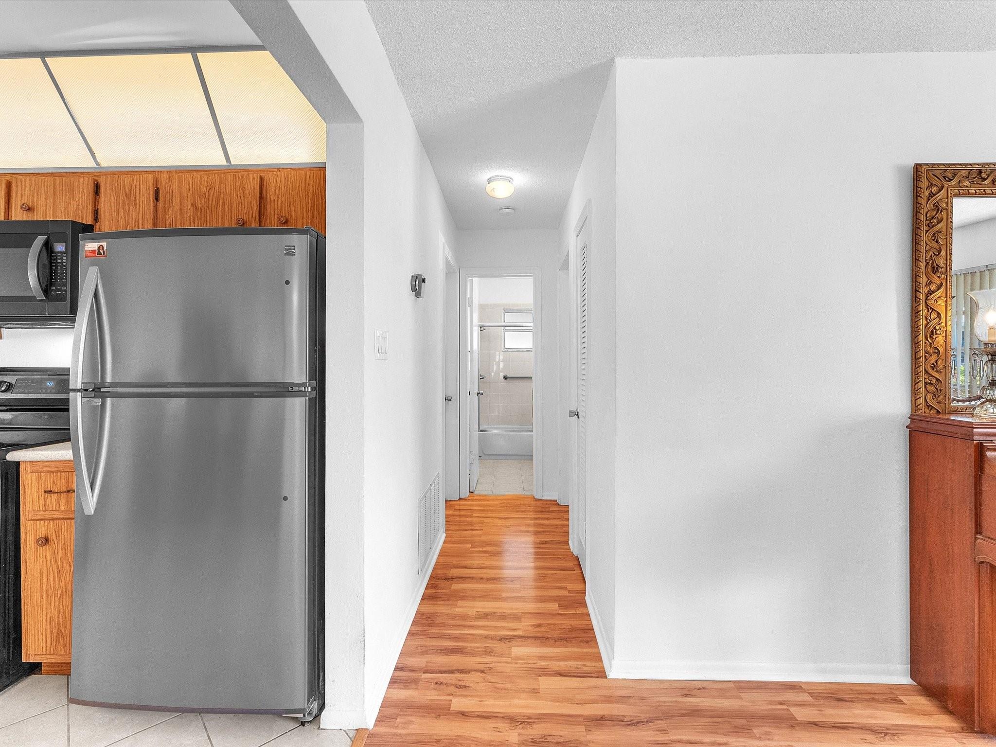 Come to discover your waterfront oasis! This delightful 2-bed,1-bath+Florida room single family home offers the perfect blend of comfort. With new laminate flooring gracing the formal living, dining, hallway, and bedroom spaces, ensuring fluidity throughout. The tiled bathroom, kitchen, laundry, and inviting Florida room exude elegance. Picture enjoying your morning coffee in the Florida room, with its captivating water views and lush garden brimming with tropical splendor. Professionally landscaped, with New appliances: washer, dryer, refrigerator, stove, smoke detectors, and garbage disposal. Tile roof 2015,AC 2016. Freshly painted inside and out, with upgraded 200-amp electrical panels. Located near majors highway ,shopping centers and diff.