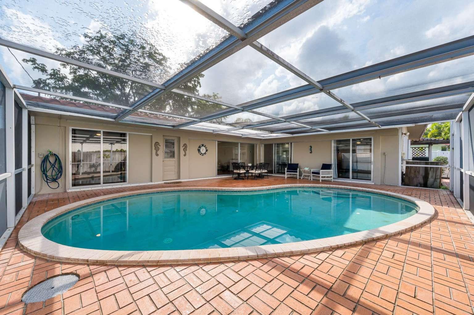 Welcome to this beautiful 3-bedroom, 2-bathroom home in the heart of Knoll Ridge, one of Fort Lauderdale’s most desirable neighborhoods. Nestled on a secluded road away from the main traffic flow, this home offers privacy and tranquility while still being conveniently located. Designed for comfort and convenience, it features 1,609 square feet of living space, a brand-new roof (2024), a sparkling saltwater pool, and a spacious 2-car garage—perfectly move-in ready for you. Step inside and feel right at home with the bright, open layout. The split floor plan gives everyone their space, and each bedroom features a walk-in closet for all your storage needs. For added convenience, an indoor laundry room makes chores a breeze.