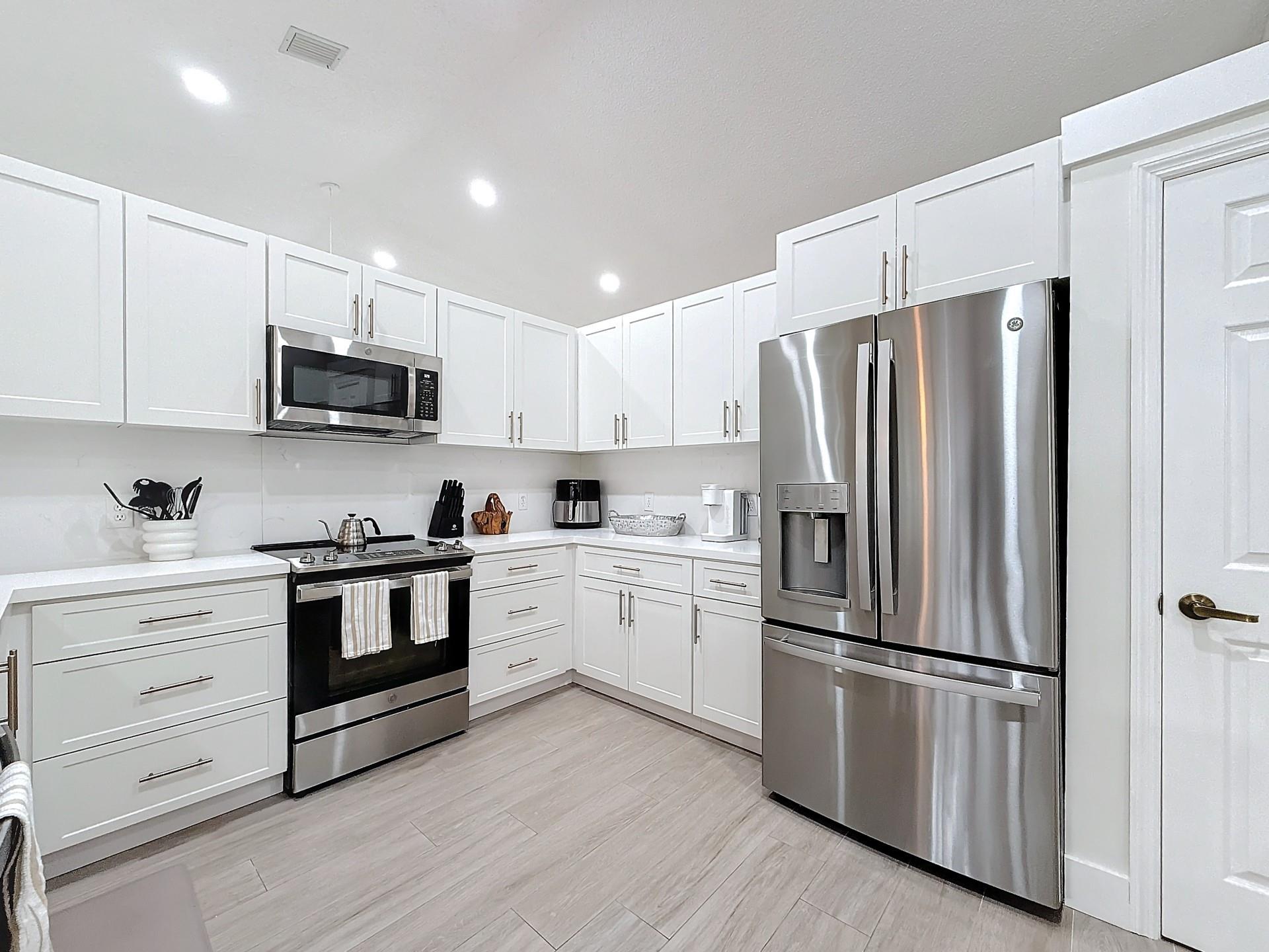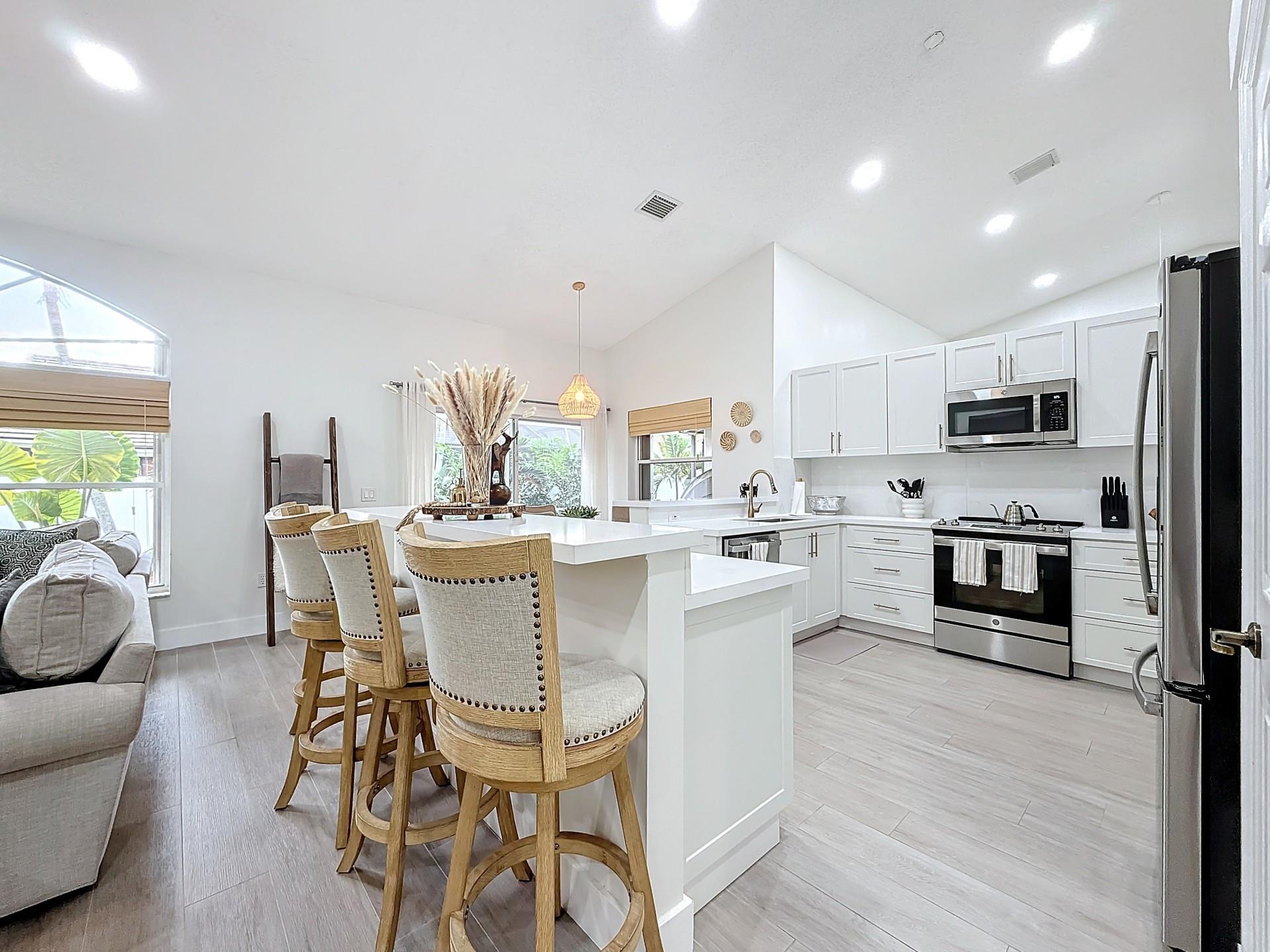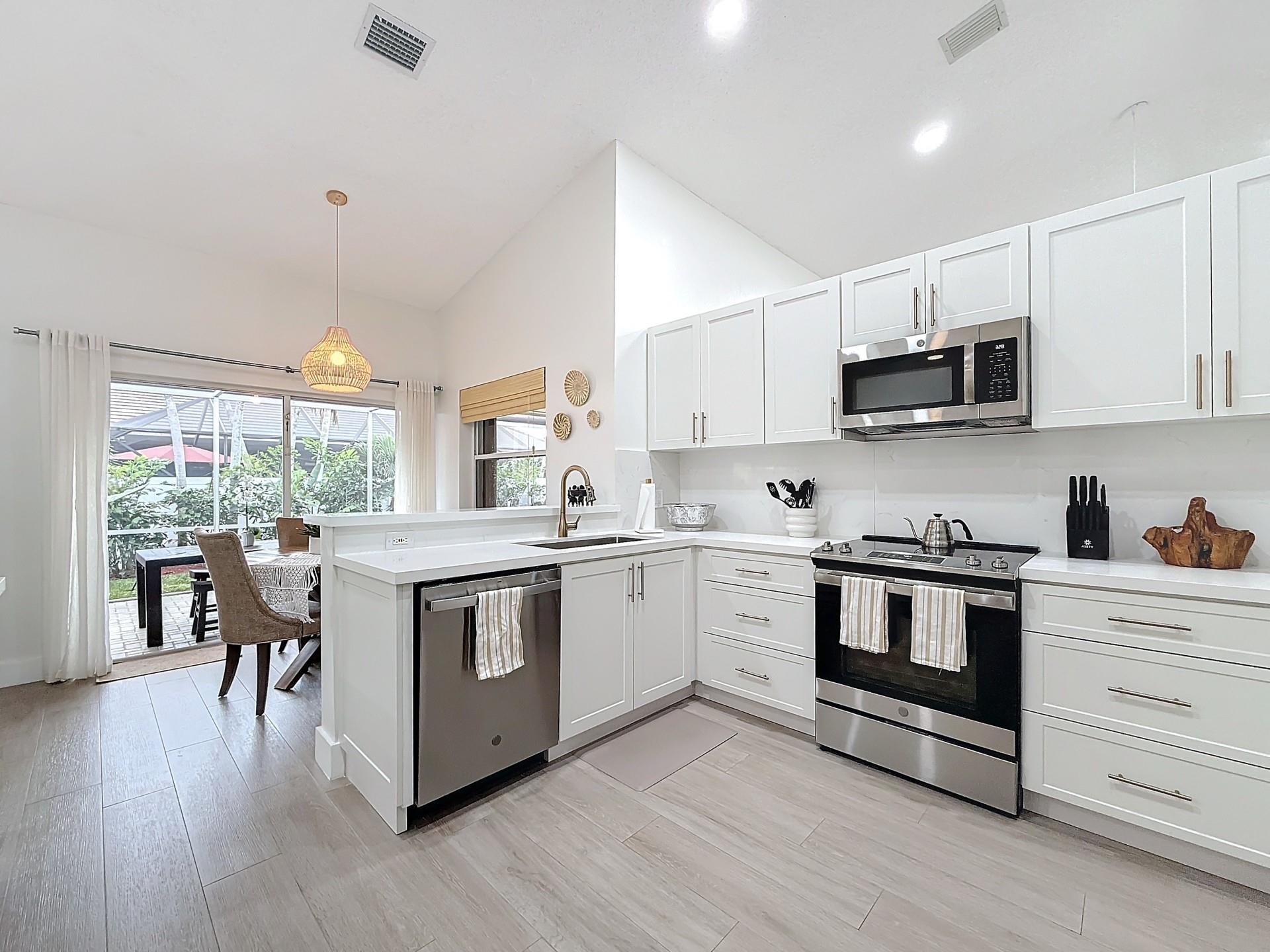 IMMACULATE move in ready home in Pasadena Estates IV. This bright, airy home was fully renovated in 2023 with neutral wood plank tile floors, all new appliances, new lighting fixtures including LED high hats, new fans, rescreened patio, white pvc fence, completely renovated kitchen with shaker cabinets and Carrera quartz countertops, bathrooms remodeled with custom cabinets and sparkle quartz countertops, new water heater and new landscaping. Home fully protected by accordion shutters and hurricane impact garage door. No poly pipes. Fruit trees, mango, avocado, coconut, banana. Easy access to US27, Turnpike and I75. “A” Rated Schools. Roof fully replaced in 2009 with concrete barrel tile. Recent inspection estimates useful remaining life at 24 years.