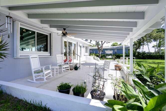 Seize this rare opportunity to own a beautifully renovated gem in a prime golf course location! Wake up to breathtaking sunrises and serene golf views right from your backyard. This charming home offers exceptional features, including a bonus parking area–perfect for your RV or boat–adding both convenience and versatility. Recent upgrades ensure peace of mind and efficiency, including a new metal roof (2022), tankless water heater, impact windows and doors, updated electrical, and a security system. Inside, the warmth of gorgeous oak flooring flows through all the living areas, complementing the brand-new kitchen.