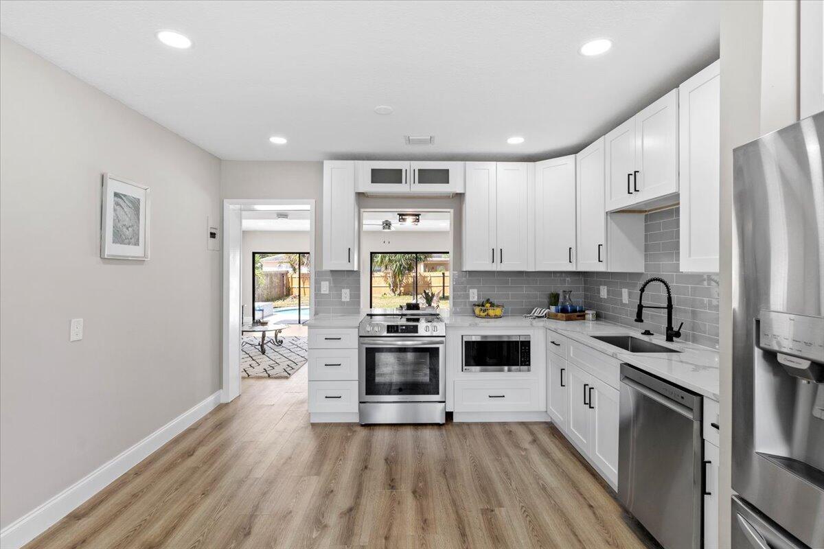 This beautifully renovated home in the heart of Lake Worth Beach is just blocks from the river and offers quick access to pristine beaches. Key features include a brand-new roof, a private fenced backyard with a refreshing pool and spa, and no HOA! Inside, you’ll find a stunning kitchen with solid wood Quaker cabinets, quartz countertops, and stainless steel appliances. The spacious open living/family area flows seamlessly to the pool deck, creating an ideal space for both relaxation and entertaining. Fully renovated bathrooms add an extra touch of luxury and sophistication. With its prime location near the water, golf courses, and the historic downtown–filled with chic restaurants and unique shops–this property is perfect as a short-term rental investment or a vacation home.