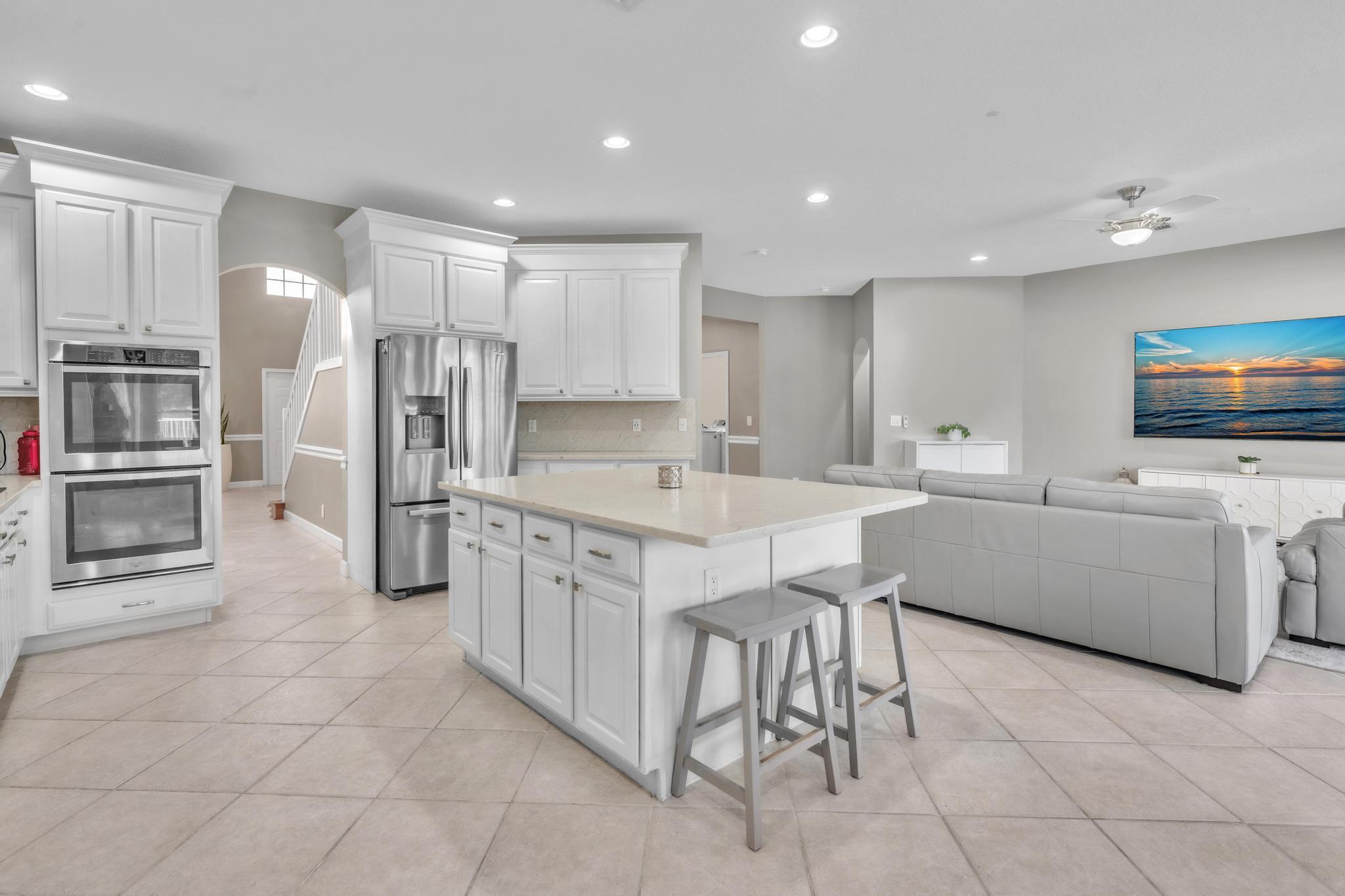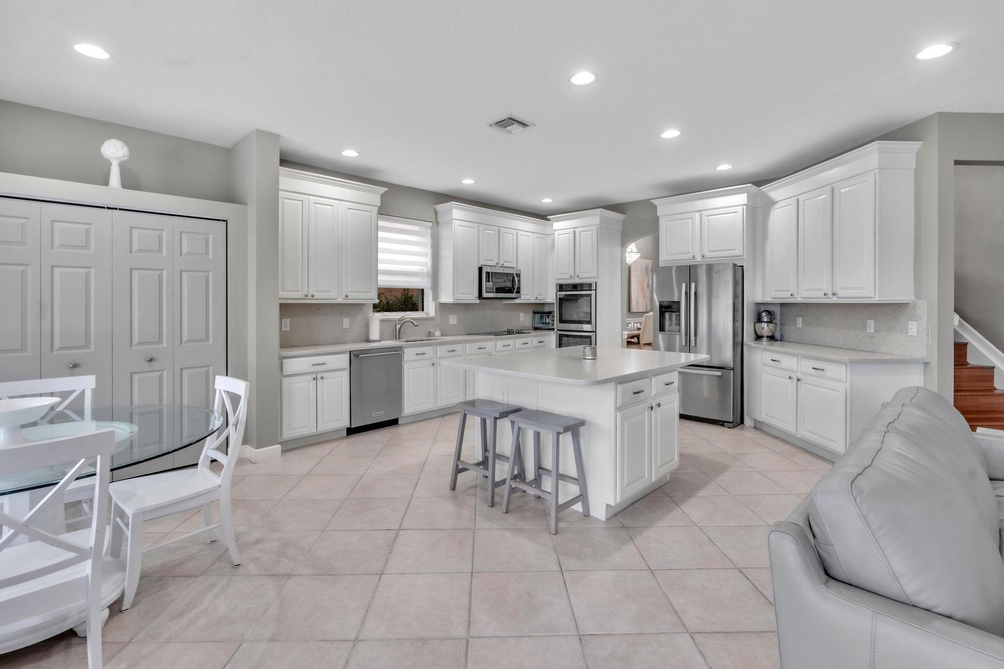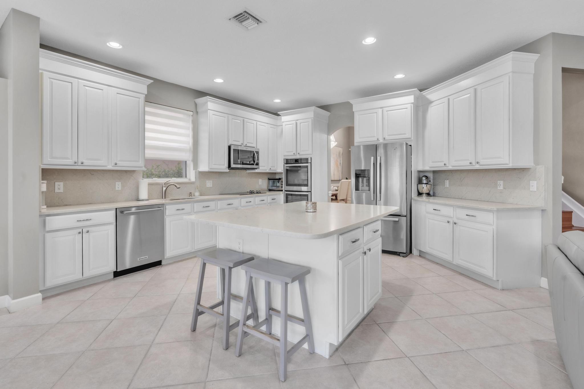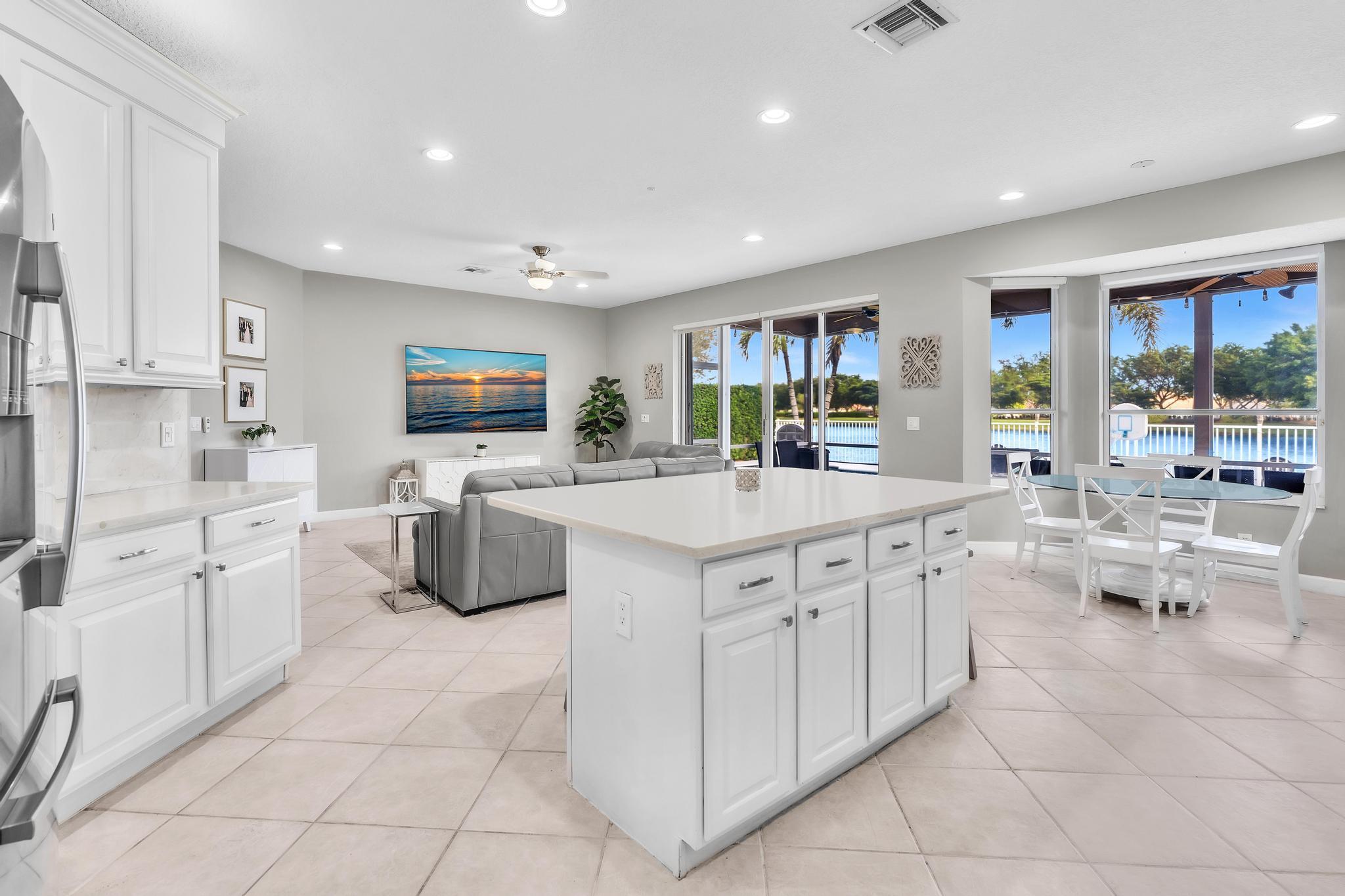This remarkable 4-bedroom, 3.5-bathroom home is situated in a quiet, family-friendly neighborhood in beautiful Boca Winds, With over 3252 square feet of spacious, open-concept living space, this home is designed for both comfort and style. The heart of the home is the beautifully renovated kitchen, featuring quartz countertops, custom cabinetry, and a large island that’s perfect for meal prep and gatherings. The home also boasts a massive loft, offering a flexible space that can be used as a playroom, home office, or media room — the possibilities are endless! The master suite is a private retreat with an ensuite bathroom, walk-in closets. Outdoors, enjoy a landscaped backyard with a covered patio overlooking the lake, providing the perfect setting for relaxation and outdoor dining.