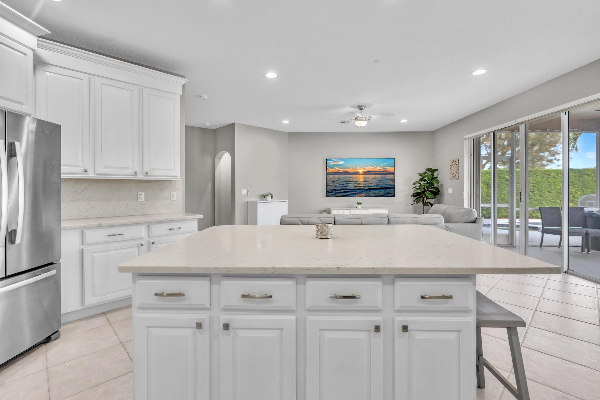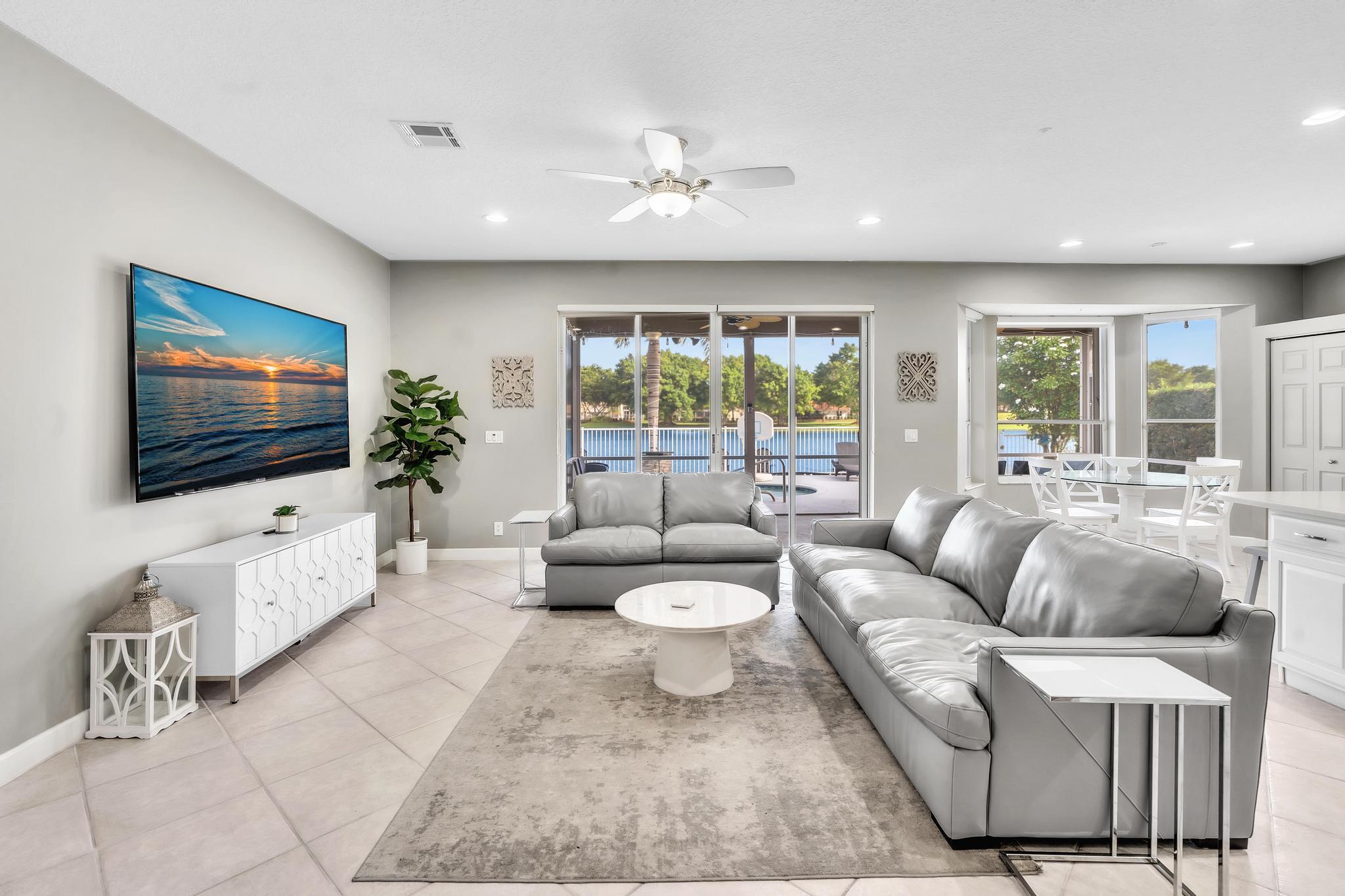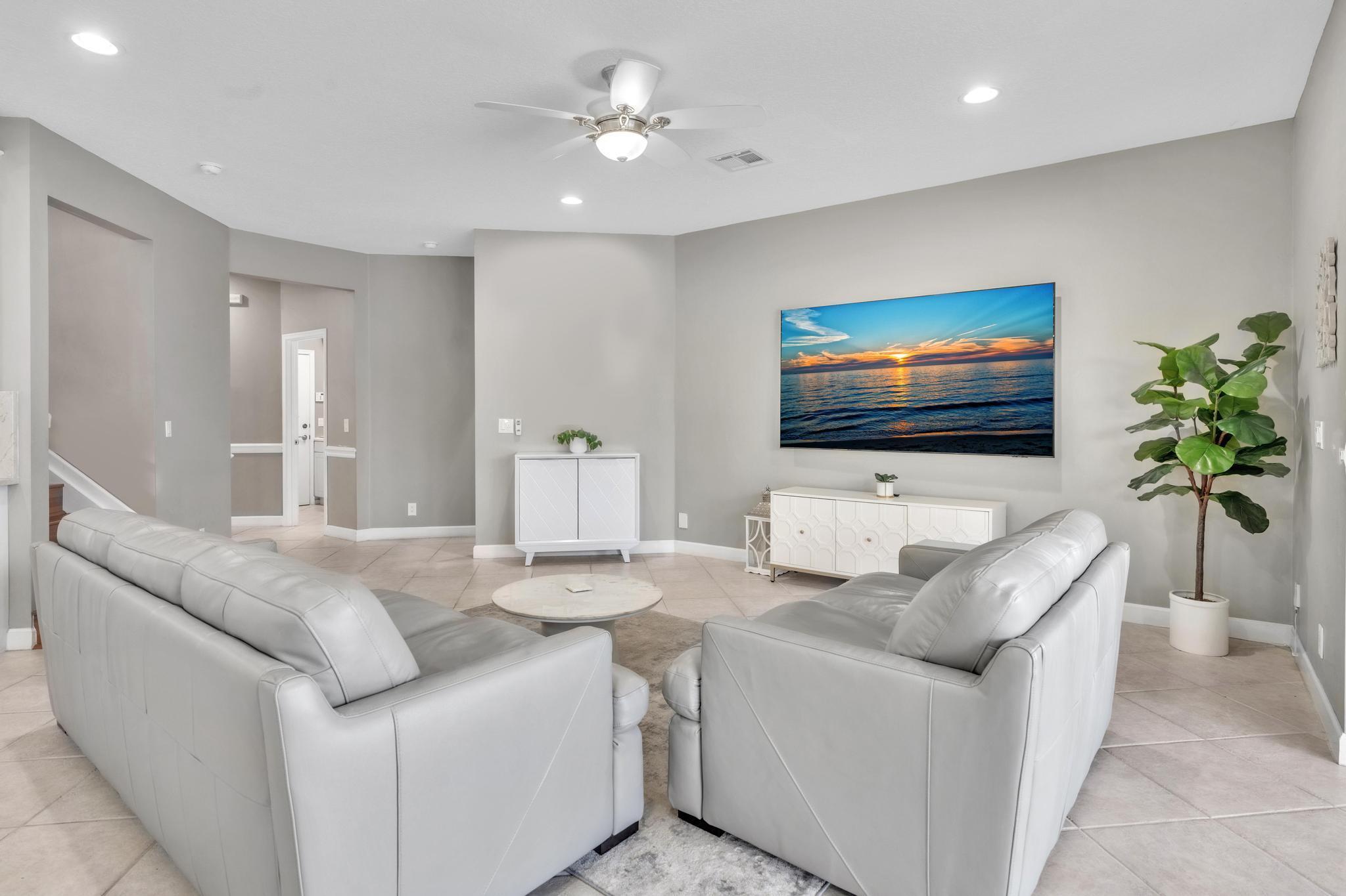 This remarkable 4-bedroom, 3.5-bathroom home is situated in a quiet, family-friendly neighborhood in beautiful Boca Winds, With over 3252 square feet of spacious, open-concept living space, this home is designed for both comfort and style. The heart of the home is the beautifully renovated kitchen, featuring quartz countertops, custom cabinetry, and a large island that’s perfect for meal prep and gatherings. The home also boasts a massive loft, offering a flexible space that can be used as a playroom, home office, or media room — the possibilities are endless! The master suite is a private retreat with an ensuite bathroom, walk-in closets. Outdoors, enjoy a landscaped backyard with a covered patio overlooking the lake, providing the perfect setting for relaxation and outdoor dining.