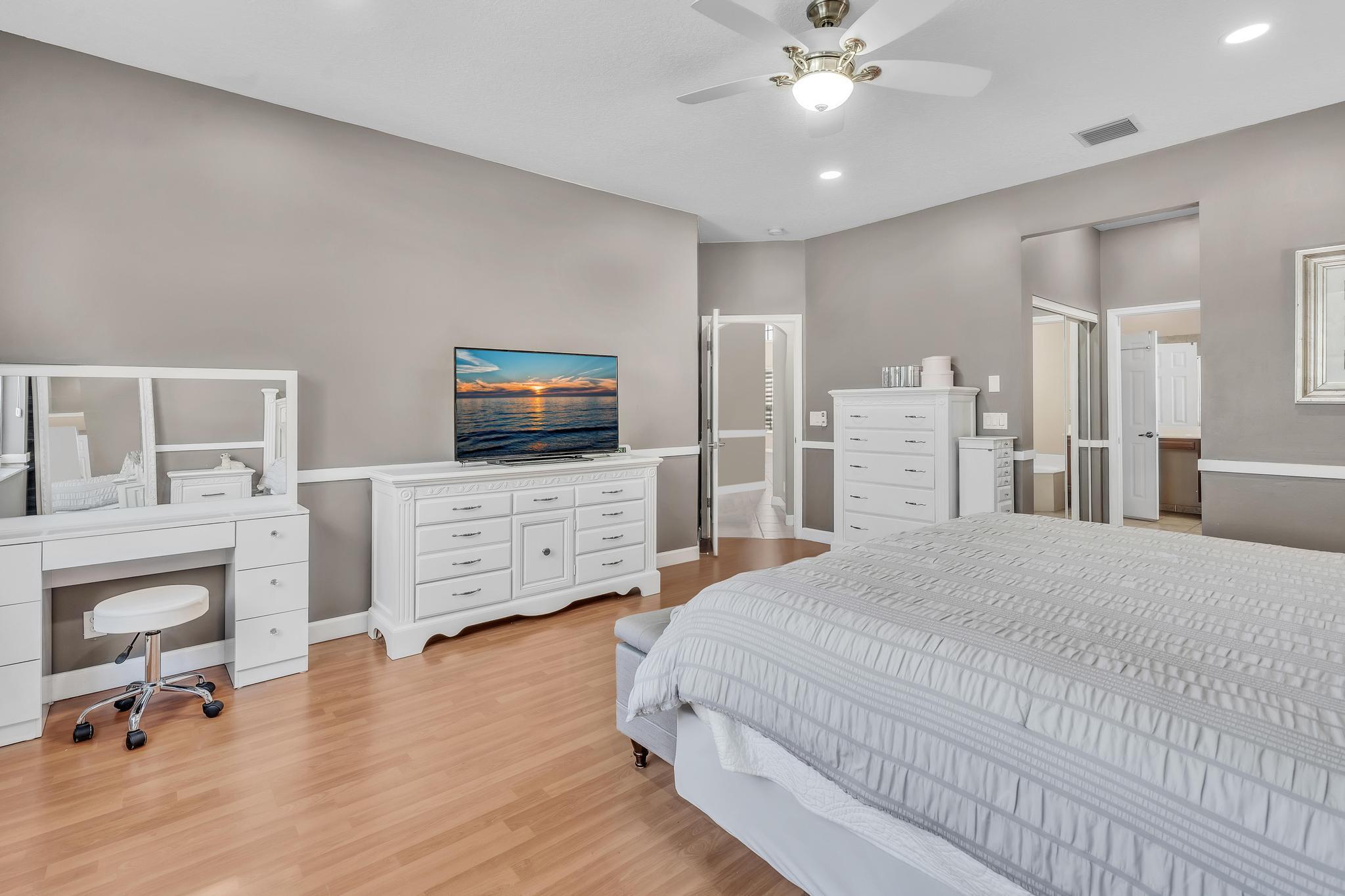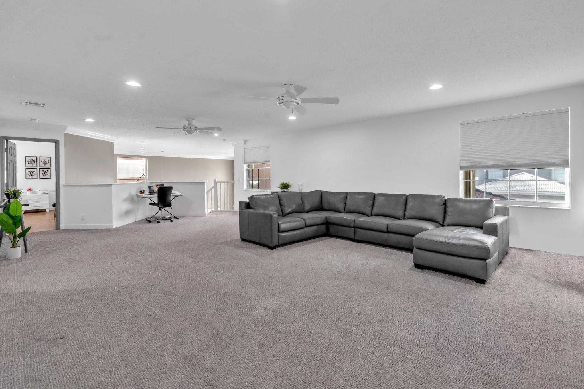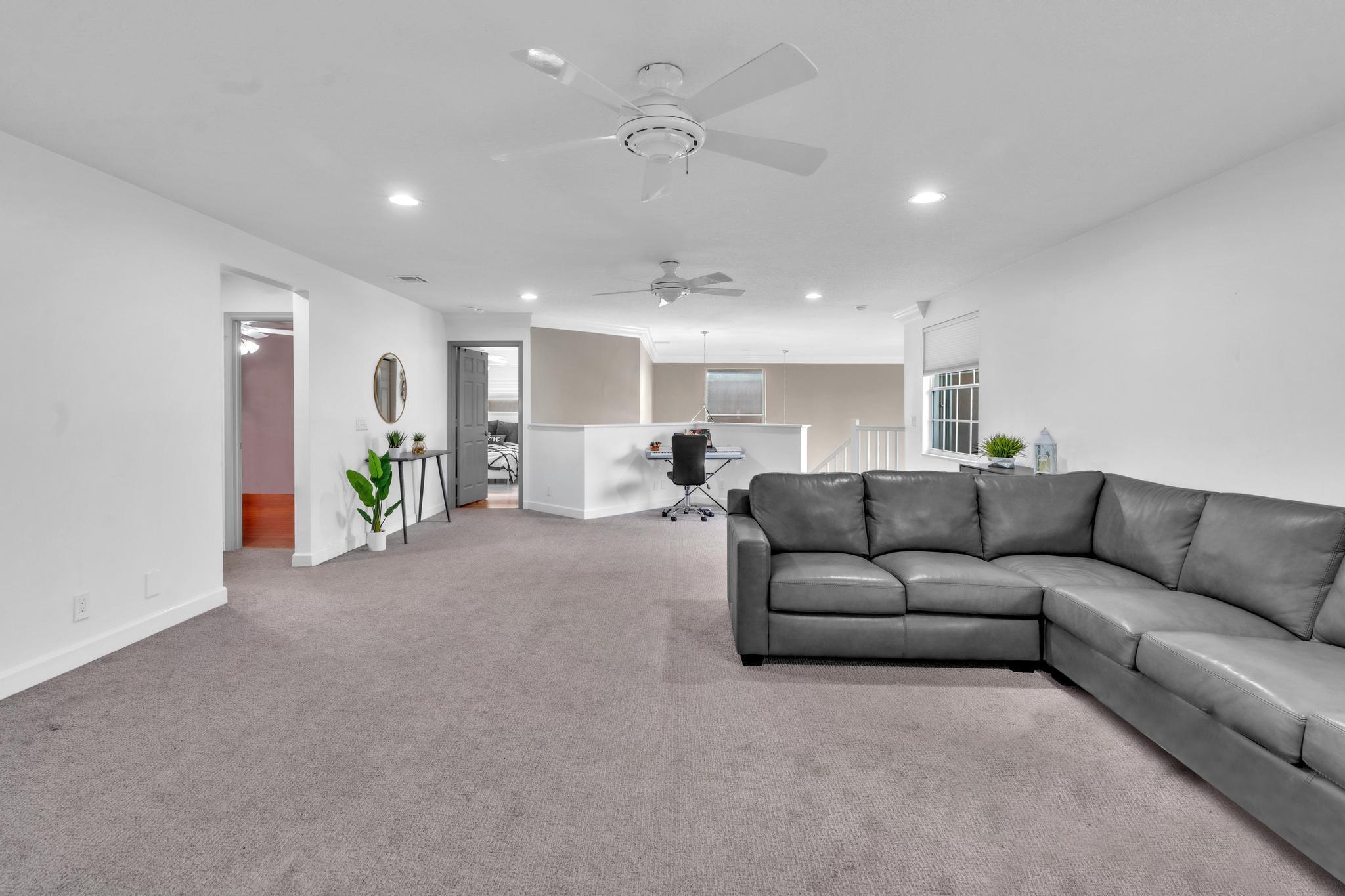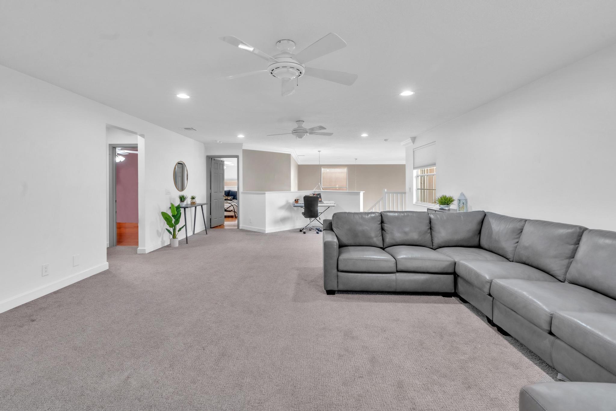 This remarkable 4-bedroom, 3.5-bathroom home is situated in a quiet, family-friendly neighborhood in beautiful Boca Winds, With over 3252 square feet of spacious, open-concept living space, this home is designed for both comfort and style. The heart of the home is the beautifully renovated kitchen, featuring quartz countertops, custom cabinetry, and a large island that’s perfect for meal prep and gatherings. The home also boasts a massive loft, offering a flexible space that can be used as a playroom, home office, or media room — the possibilities are endless! The master suite is a private retreat with an ensuite bathroom, walk-in closets. Outdoors, enjoy a landscaped backyard with a covered patio overlooking the lake, providing the perfect setting for relaxation and outdoor dining.