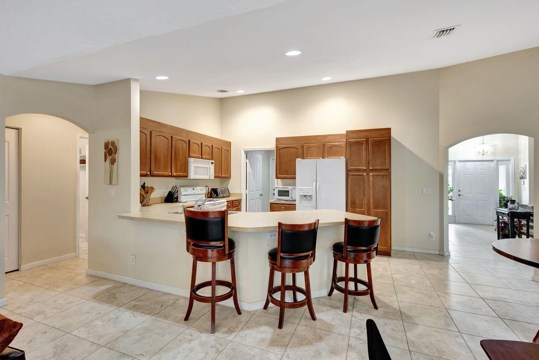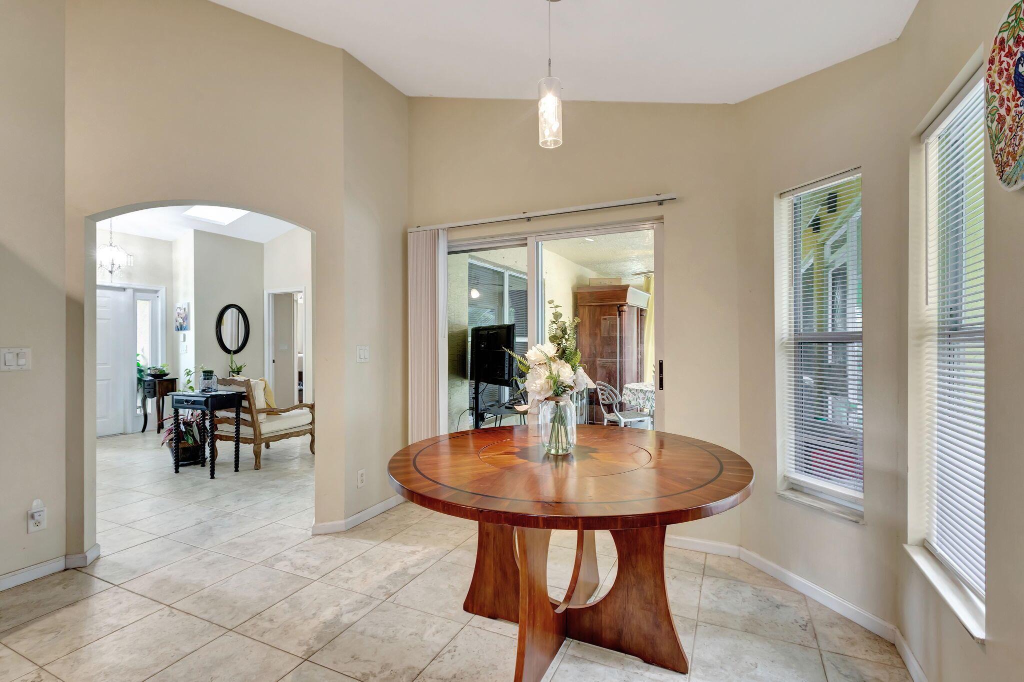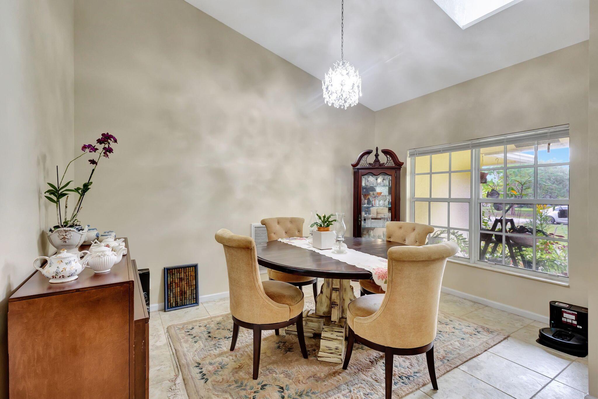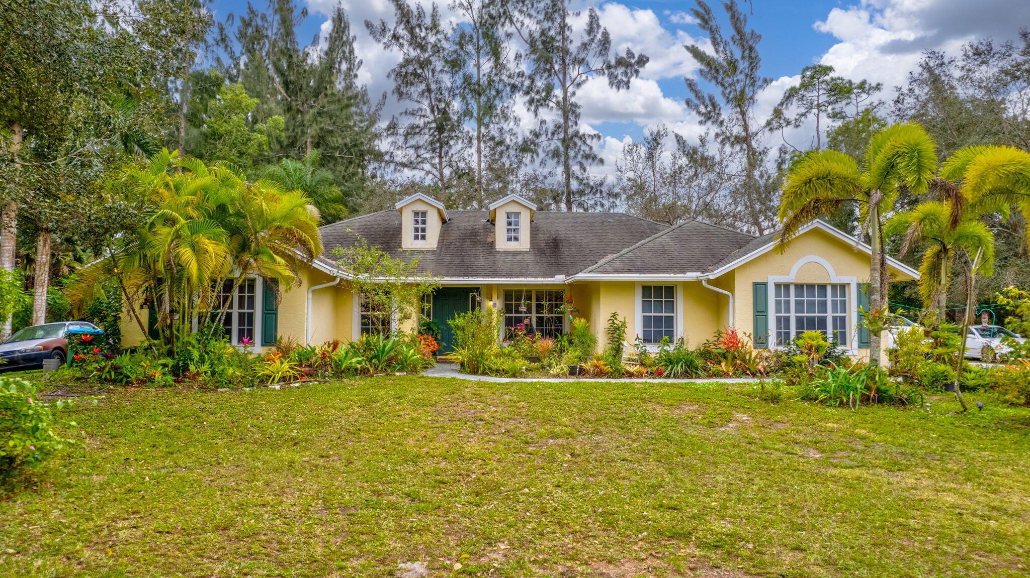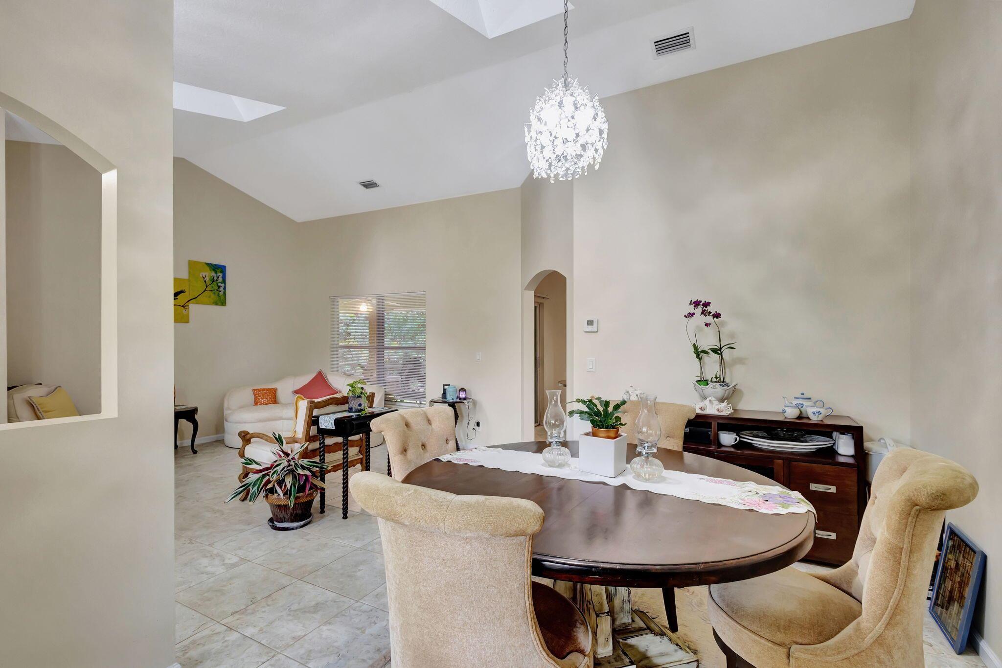 Beautiful 3-bedroom, 2-bathroom single-story home with a 2-car garage, boasting an open and airy floor plan. Enjoy high and vaulted ceilings, skylights, and tile floors throughout, with real wood floors in the master and wood-look tiles in the secondary bedrooms. The spacious living areas flow seamlessly to a large covered, screened porch, perfect for relaxing or entertaining. Nestled in a lush garden with fruit trees, this home is a serene retreat while offering modern style and comfort. Exterior and Interior painted 2018. New reverse osmosis whole house water treatment system installed 2021. New AC installed 2022.