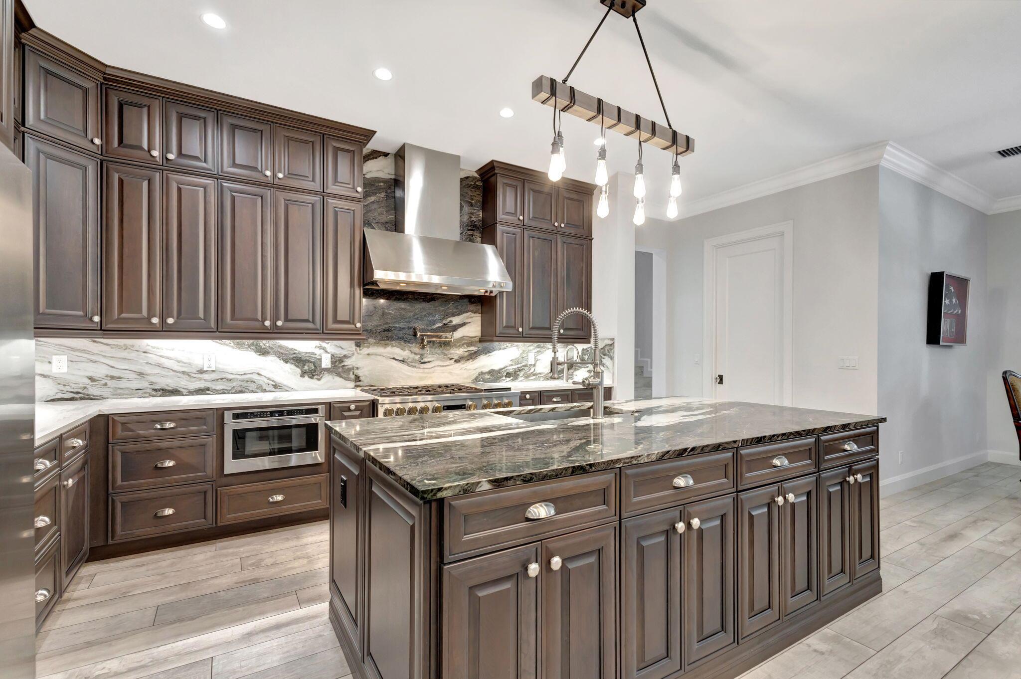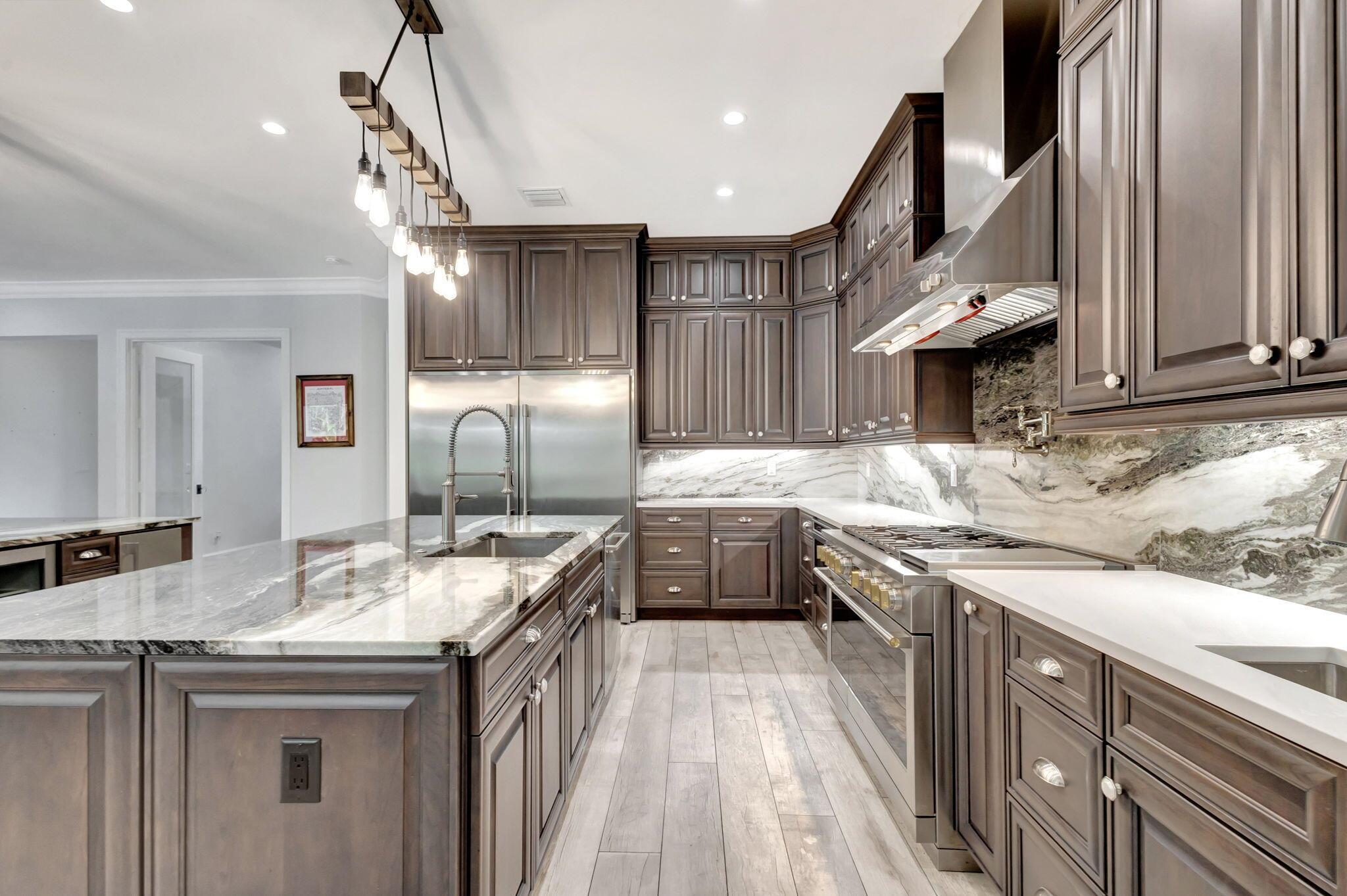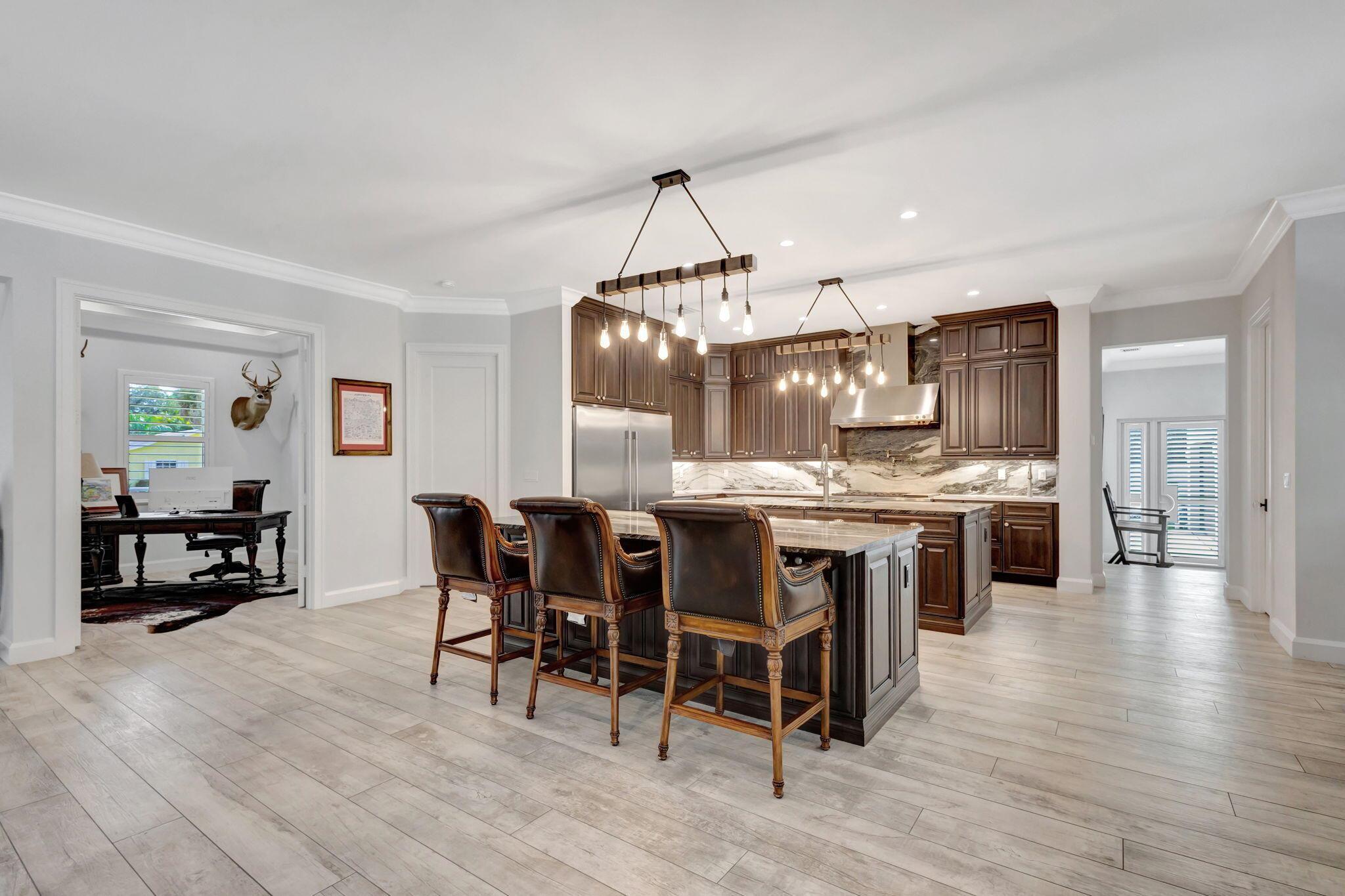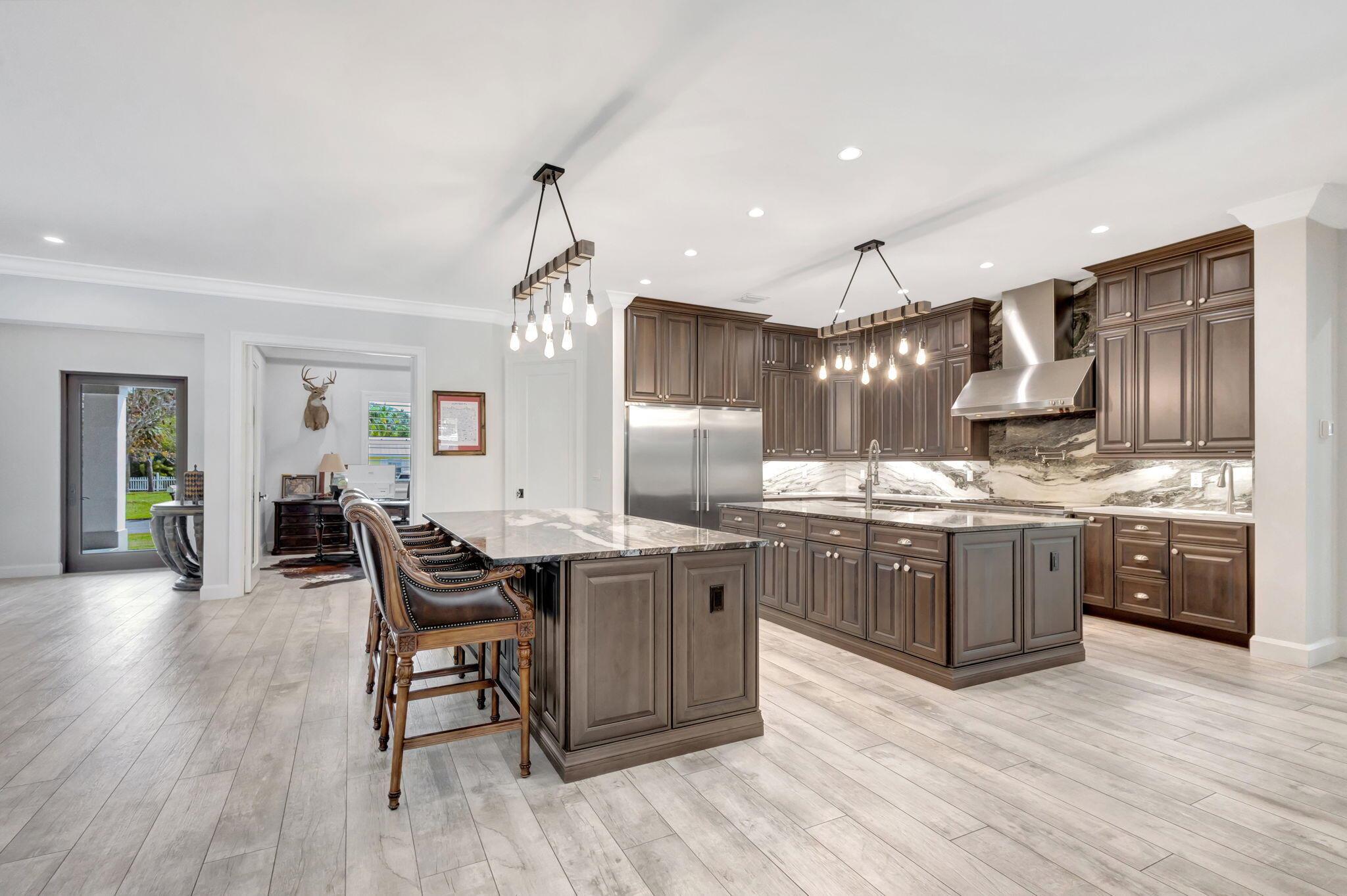 Nestled in the prestigious neighborhood of Pennock Pointe in Jupiter, 5481 Hibiscus Rd is a masterpiece of modern luxury and thoughtful design. Built in 2022, this custom CBS home combines timeless elegance with state of the art features. From the moment you enter you’re greeted by 12 foot ceilings, crown moldings, and plantation shutters throughout. The heart of this home is a chef inspired kitchen, complete with solid wood cabinets, soft close drawers and two oversized islands. Marble and quartz countertops frame a suite of premium Stainless steel GE Monogram appliances, including a six-burner gas range with griddle, pot filler, built-in ice maker, and a wine cooler. The open floorplan flows effortlessly into the dining and living areas, ideal for entertaining. The ground floor primary