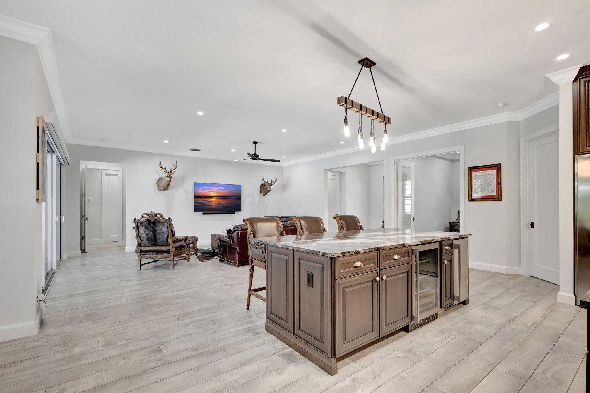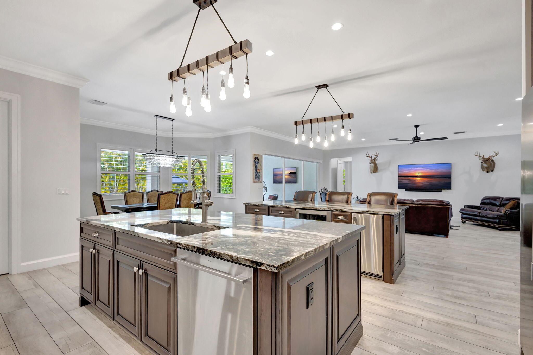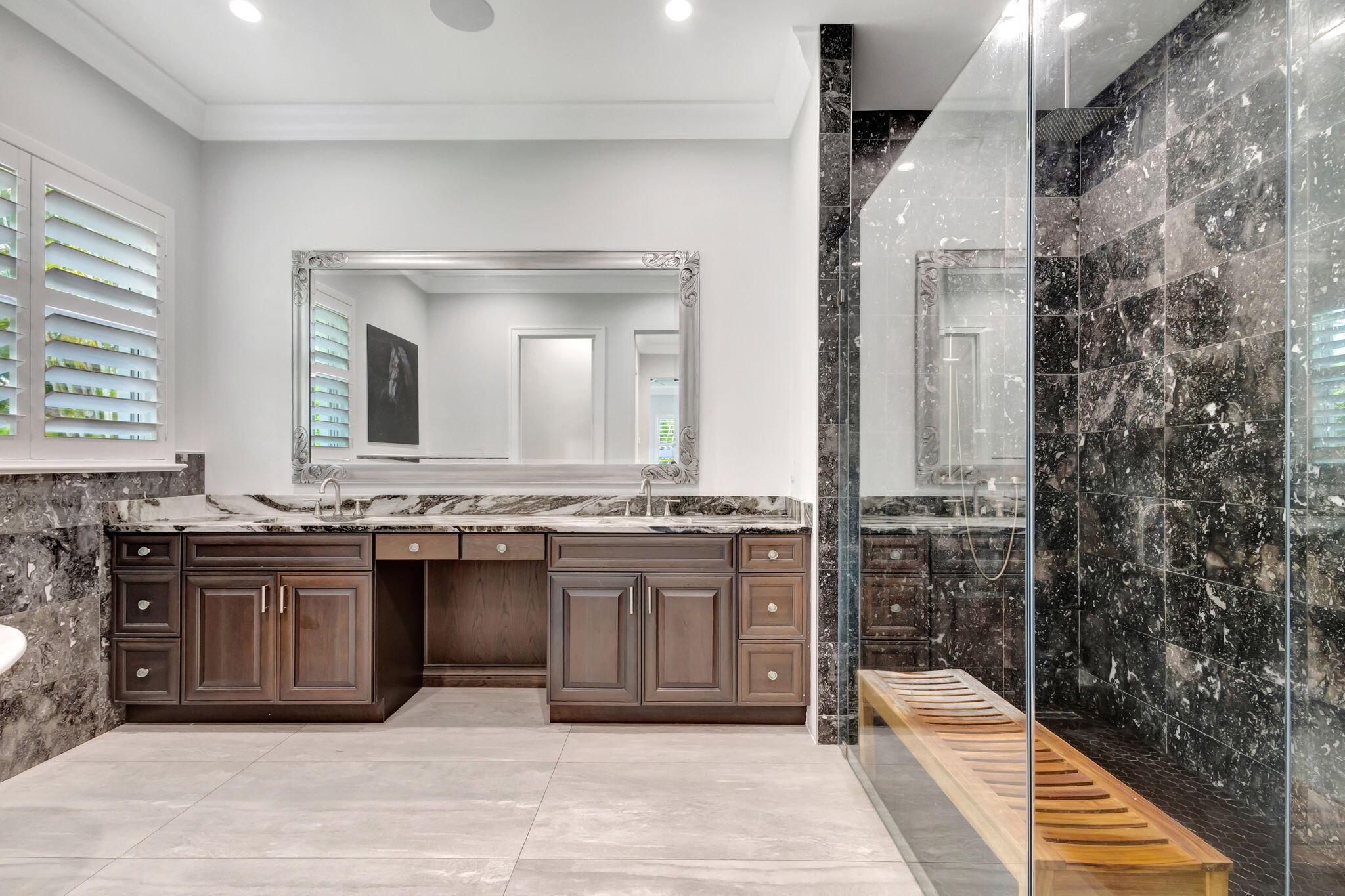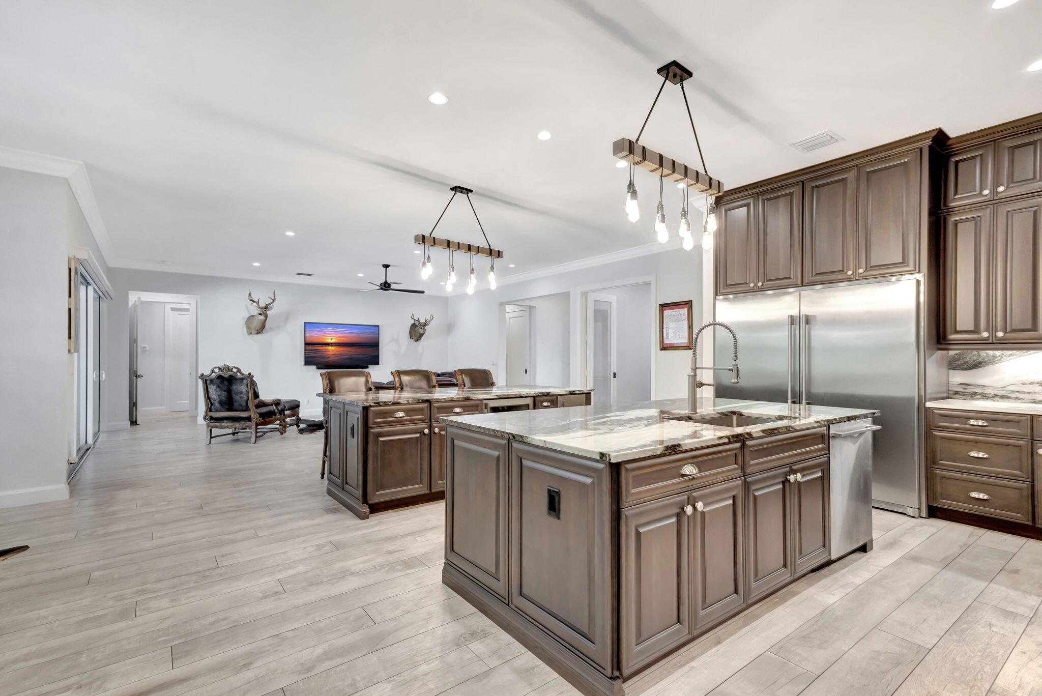 Nestled in the prestigious neighborhood of Pennock Pointe in Jupiter, 5481 Hibiscus Rd is a masterpiece of modern luxury and thoughtful design. Built in 2022, this custom CBS home combines timeless elegance with state of the art features. From the moment you enter you’re greeted by 12 foot ceilings, crown moldings, and plantation shutters throughout. The heart of this home is a chef inspired kitchen, complete with solid wood cabinets, soft close drawers and two oversized islands. Marble and quartz countertops frame a suite of premium Stainless steel GE Monogram appliances, including a six-burner gas range with griddle, pot filler, built-in ice maker, and a wine cooler. The open floorplan flows effortlessly into the dining and living areas, ideal for entertaining. The ground floor primary