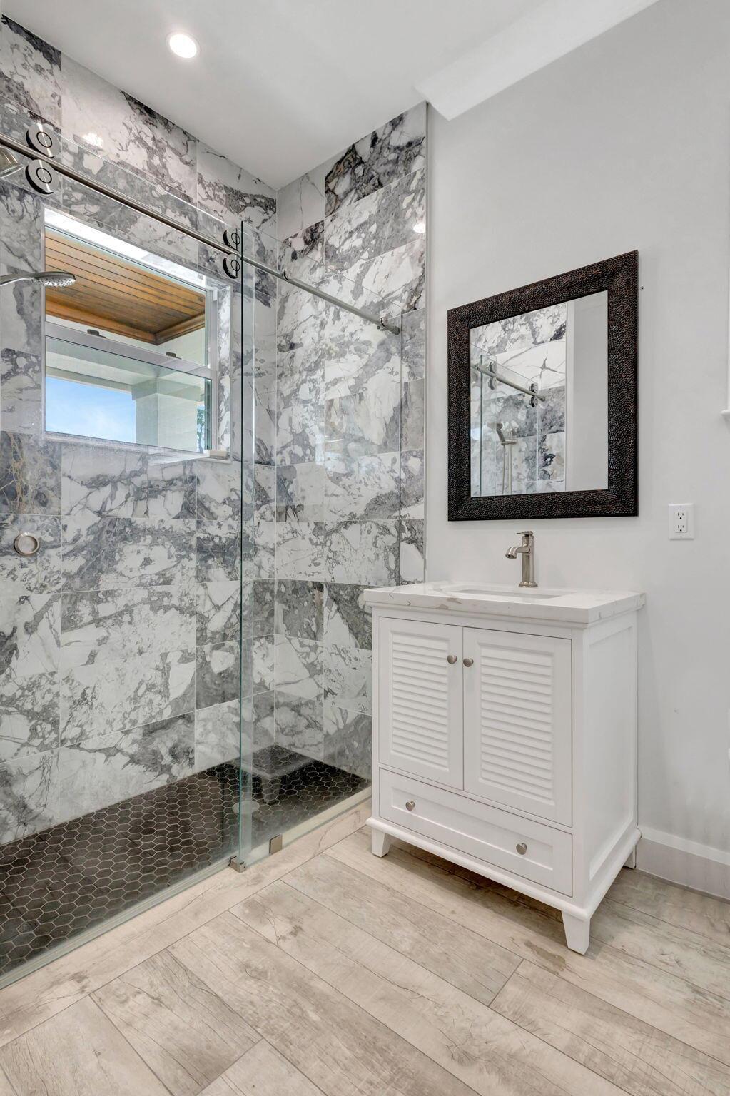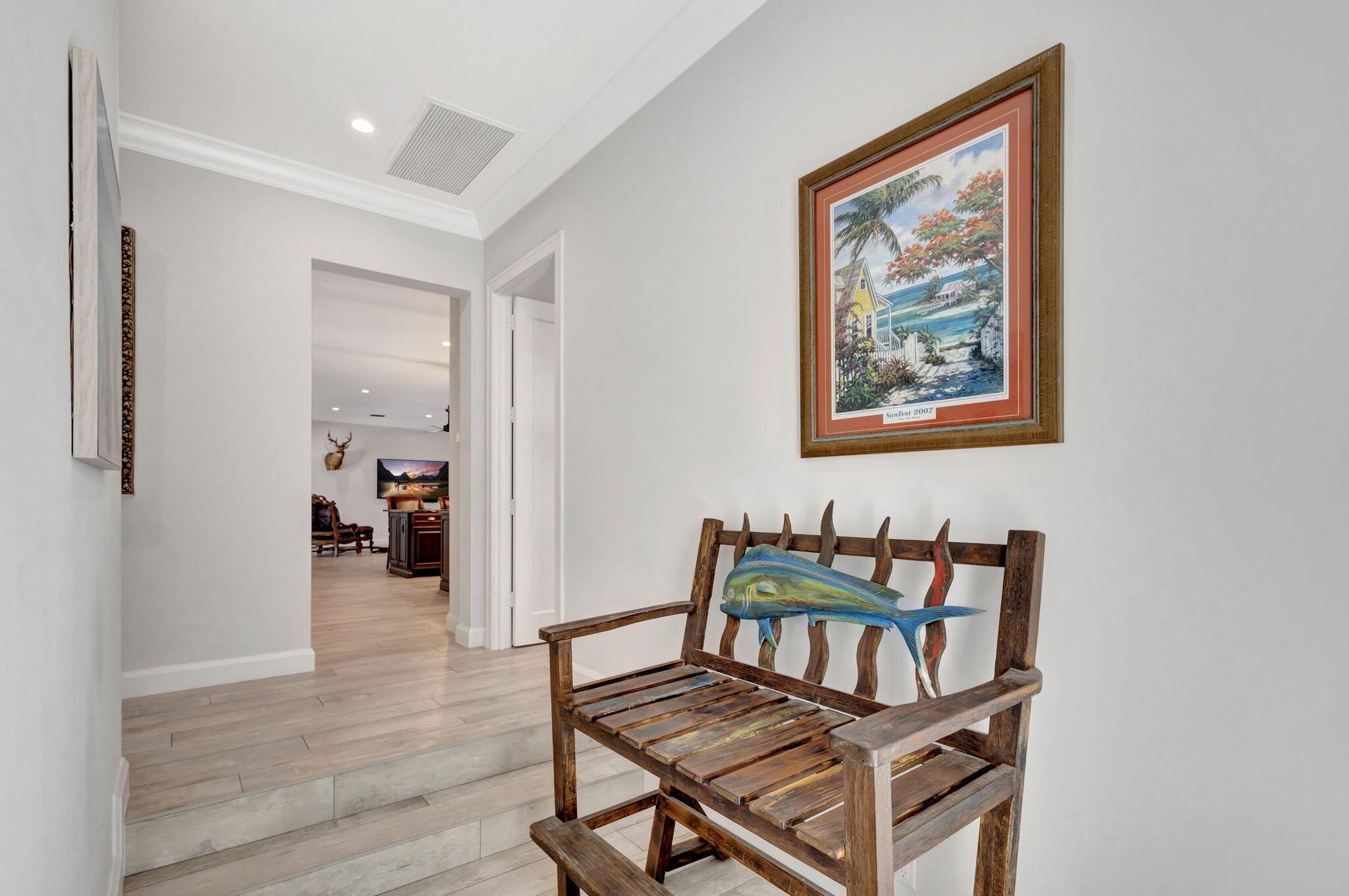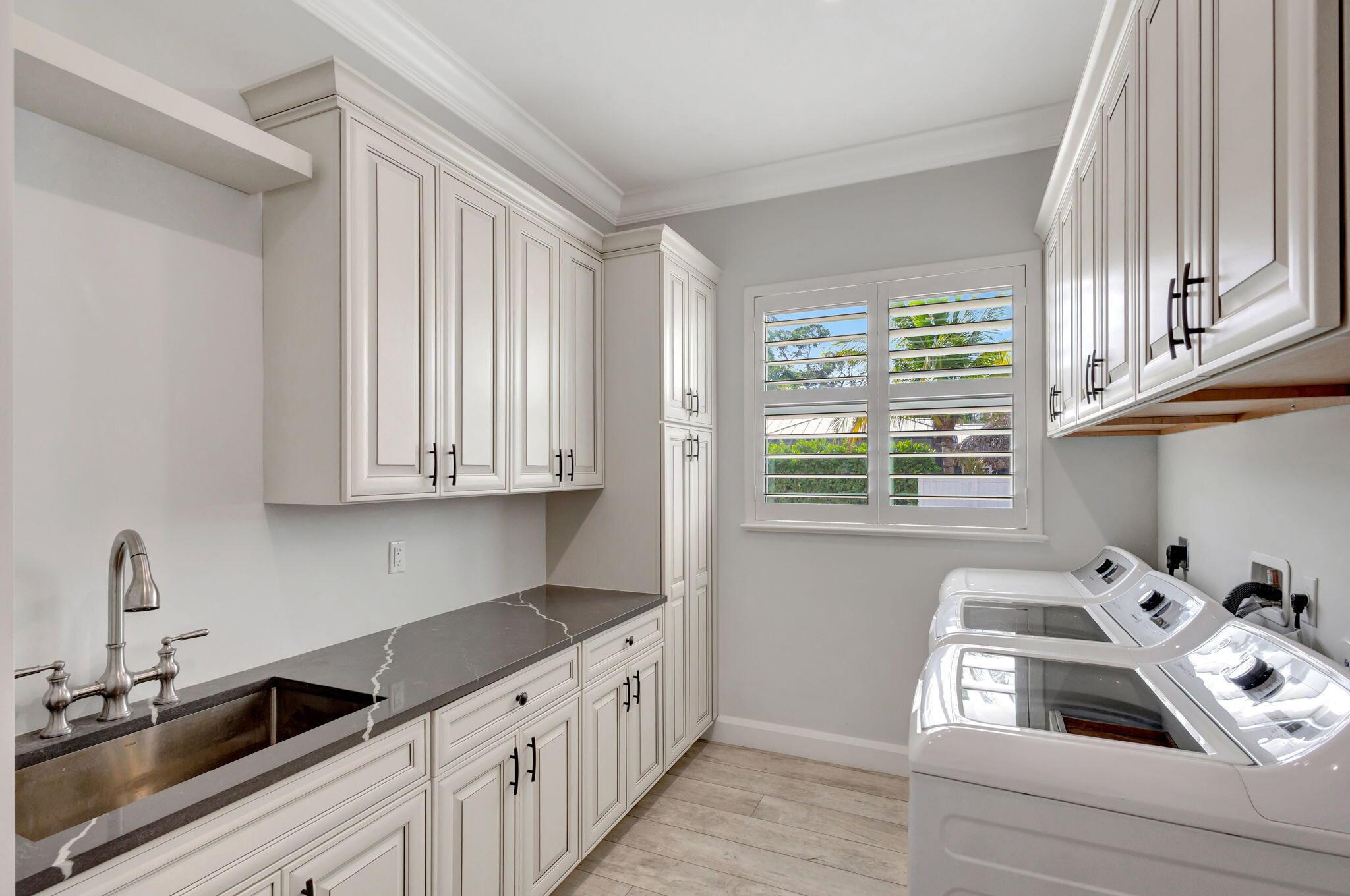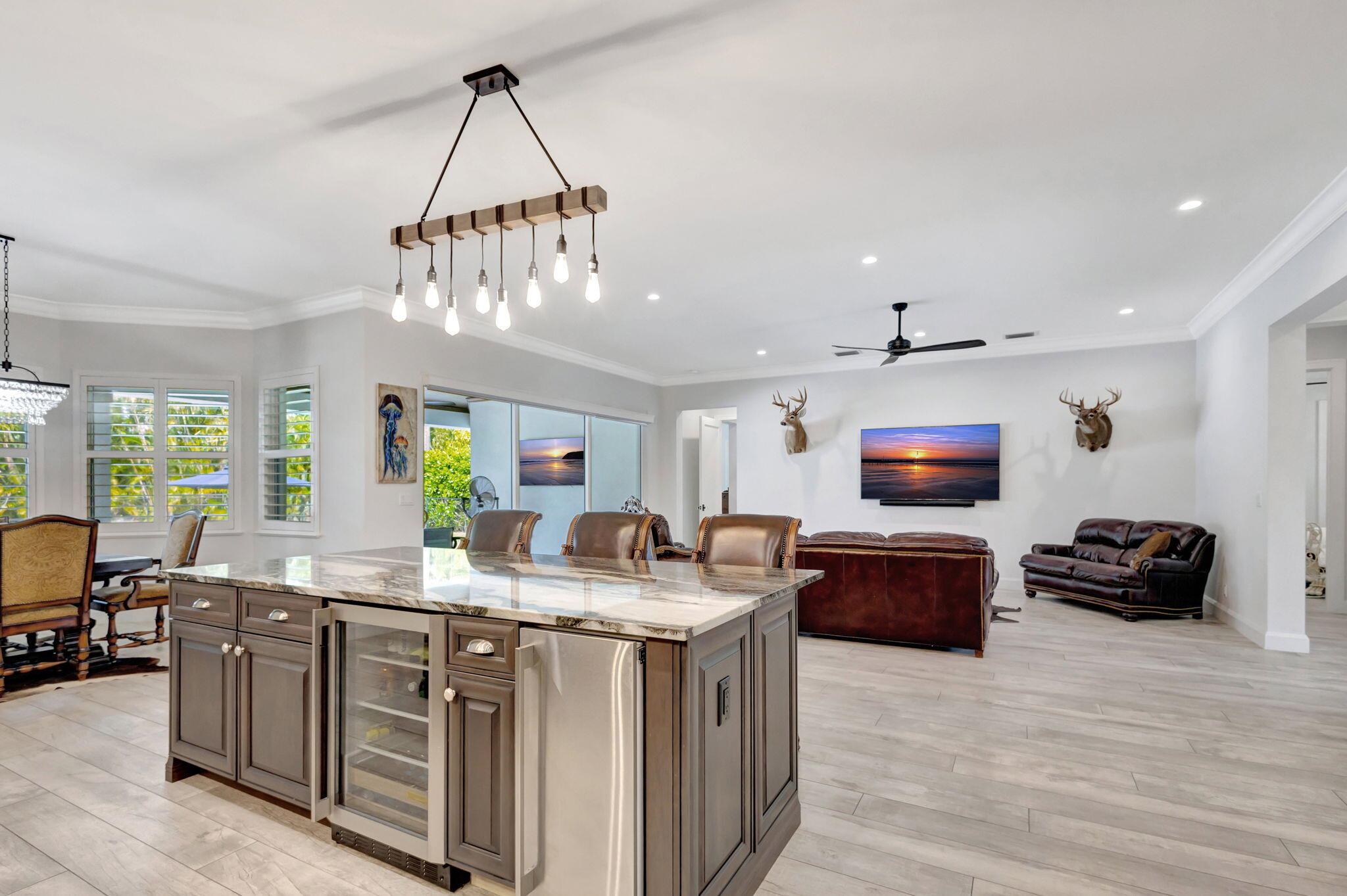 Nestled in the prestigious neighborhood of Pennock Pointe in Jupiter, 5481 Hibiscus Rd is a masterpiece of modern luxury and thoughtful design. Built in 2022, this custom CBS home combines timeless elegance with state of the art features. From the moment you enter you’re greeted by 12 foot ceilings, crown moldings, and plantation shutters throughout. The heart of this home is a chef inspired kitchen, complete with solid wood cabinets, soft close drawers and two oversized islands. Marble and quartz countertops frame a suite of premium Stainless steel GE Monogram appliances, including a six-burner gas range with griddle, pot filler, built-in ice maker, and a wine cooler. The open floorplan flows effortlessly into the dining and living areas, ideal for entertaining. The ground floor primary