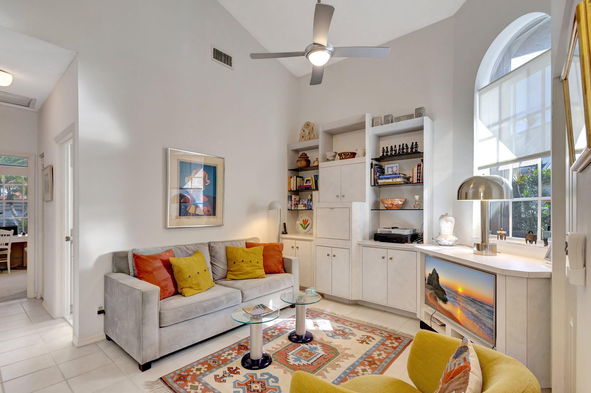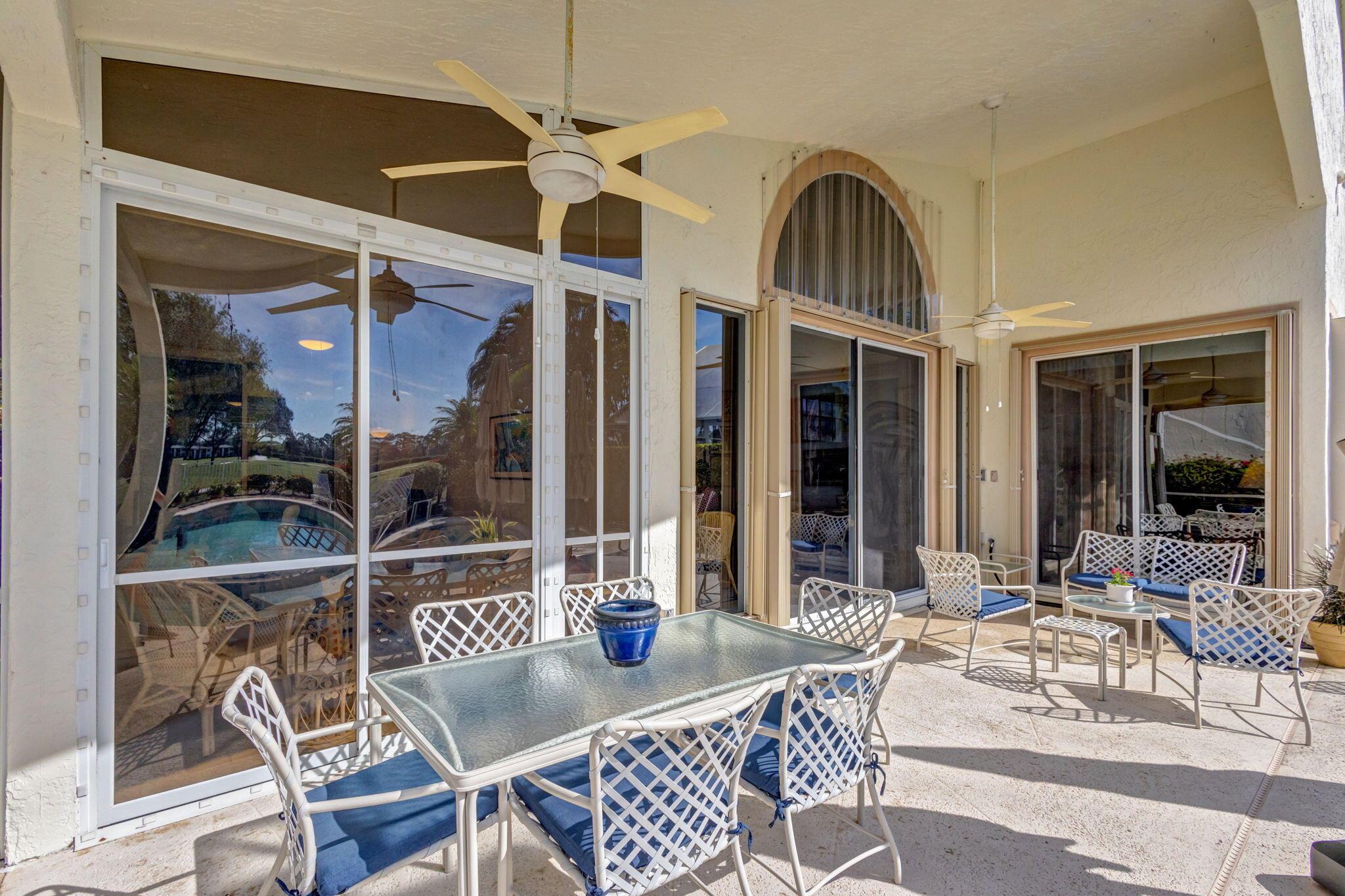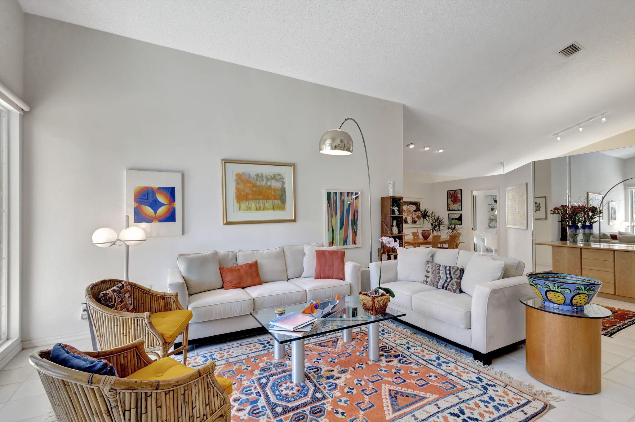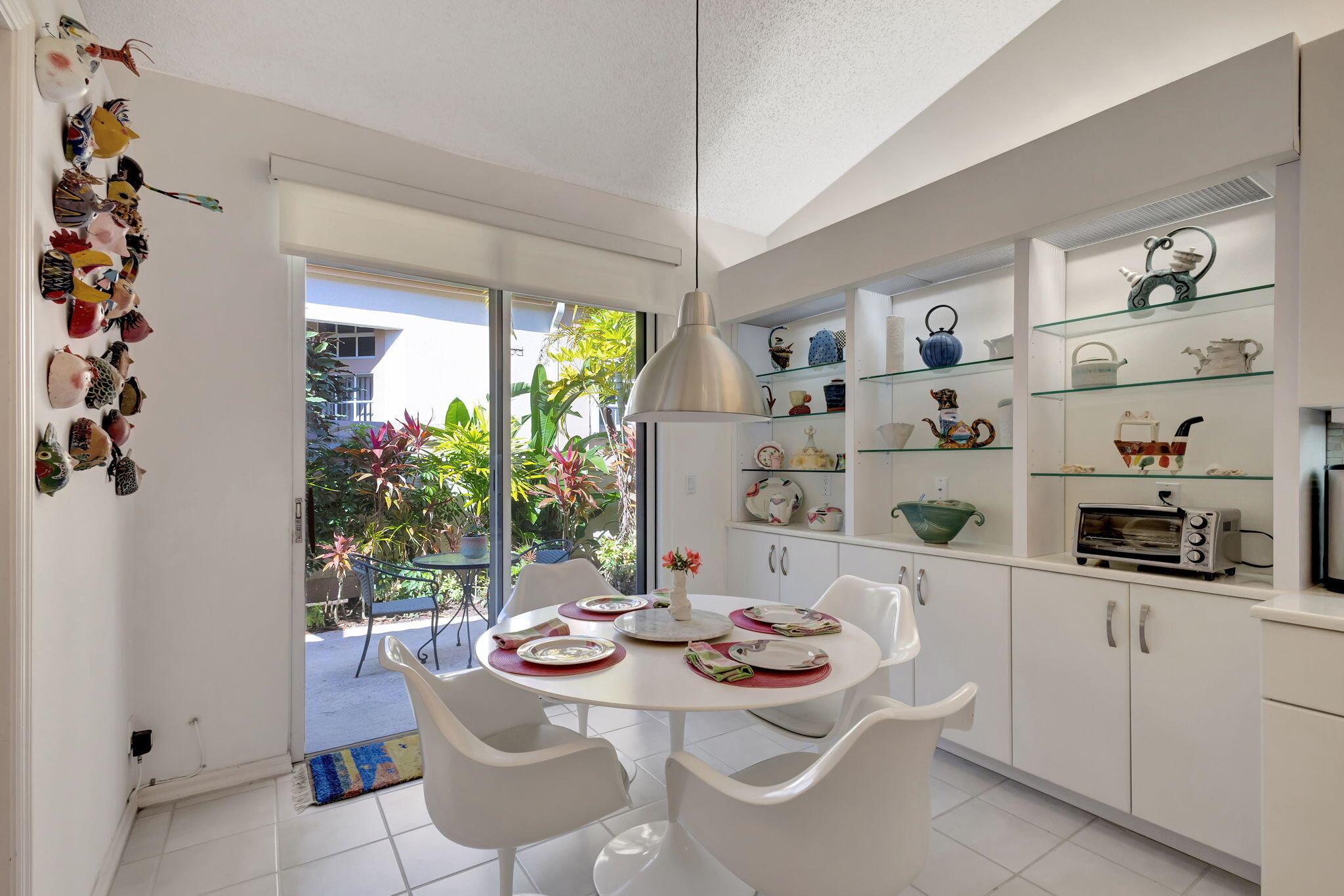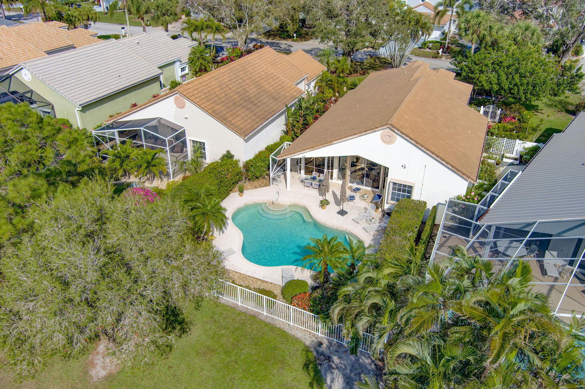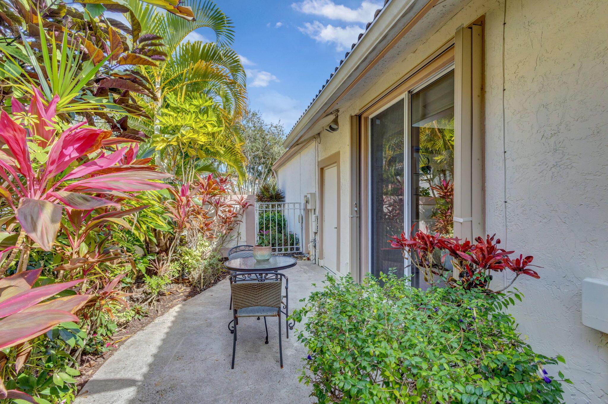 This beautifully designed lush landscaped Pool home serves light and bright with 2-bedrooms, 2-baths and a den that can be easily converted to 3rd bedroom, baths remodeled. Perfectly situated along a double fairway in the prestigious Eastpointe Country Club of Palm Beach Gardens. With western exposure, this home offers breathtaking sunsets over the lush golf course. Step inside to an open-concept floor plan with vaulted ceilings filling the home with natural light, featuring a split-bedroom layout for privacy and comfort. The chef’s kitchen boasts high-end appliances, ample counter space, island for prepping and an eat-in breakfast area, making it perfect for both casual and gourmet dining. Adjacent to the kitchen, a formal dining room provides an elegant setting for entertaining.